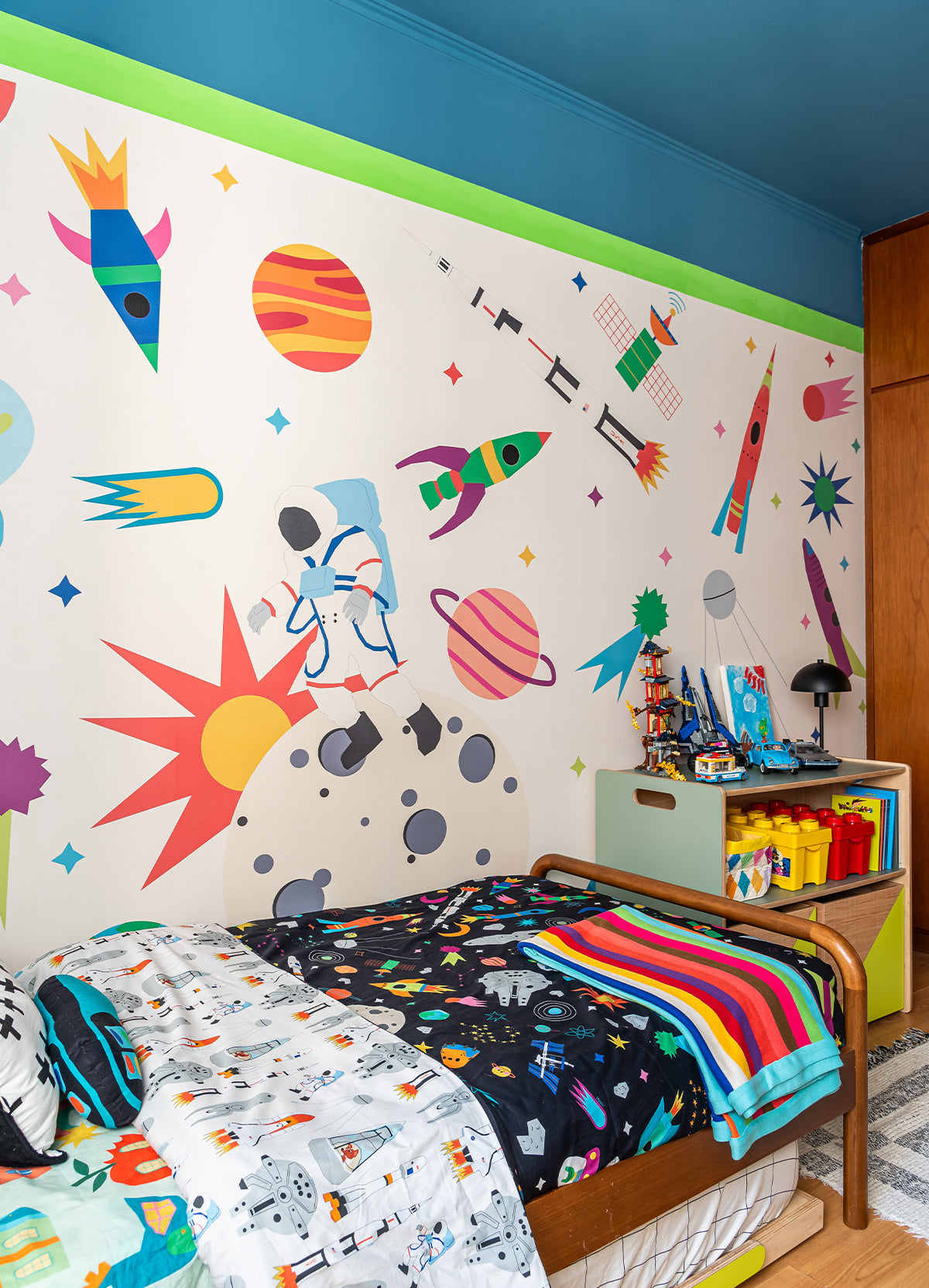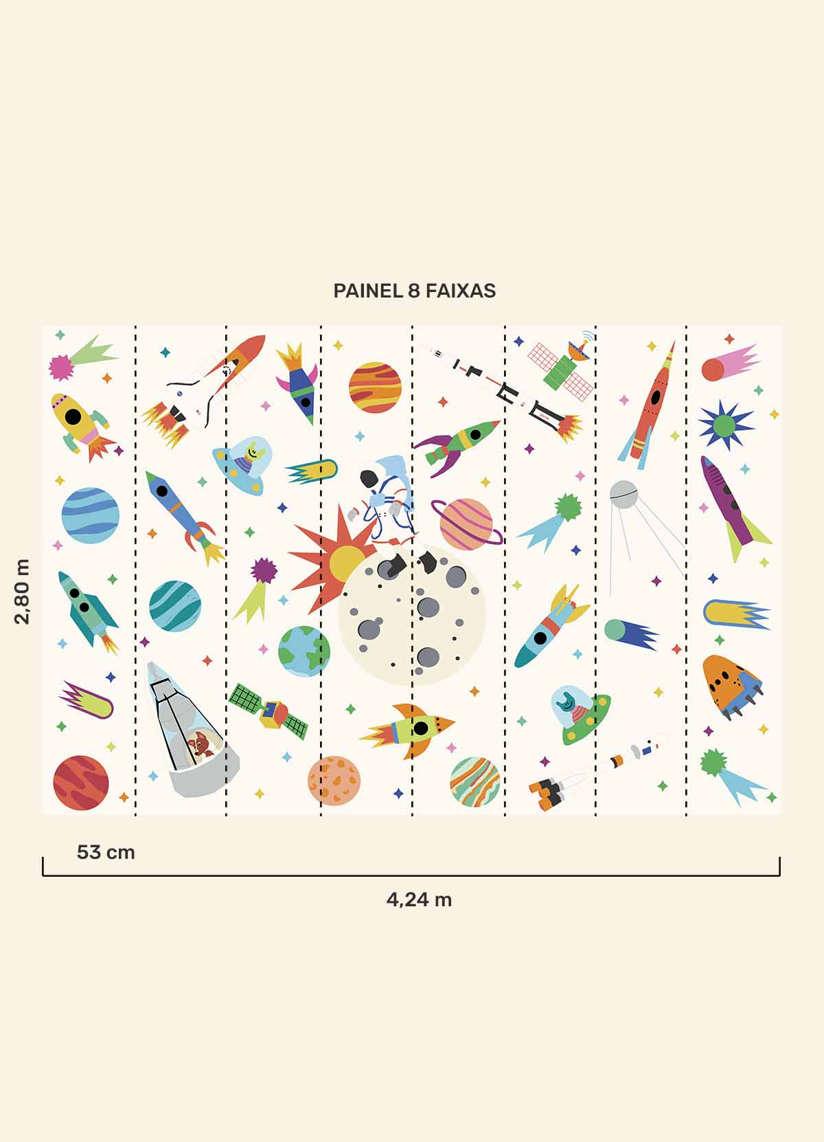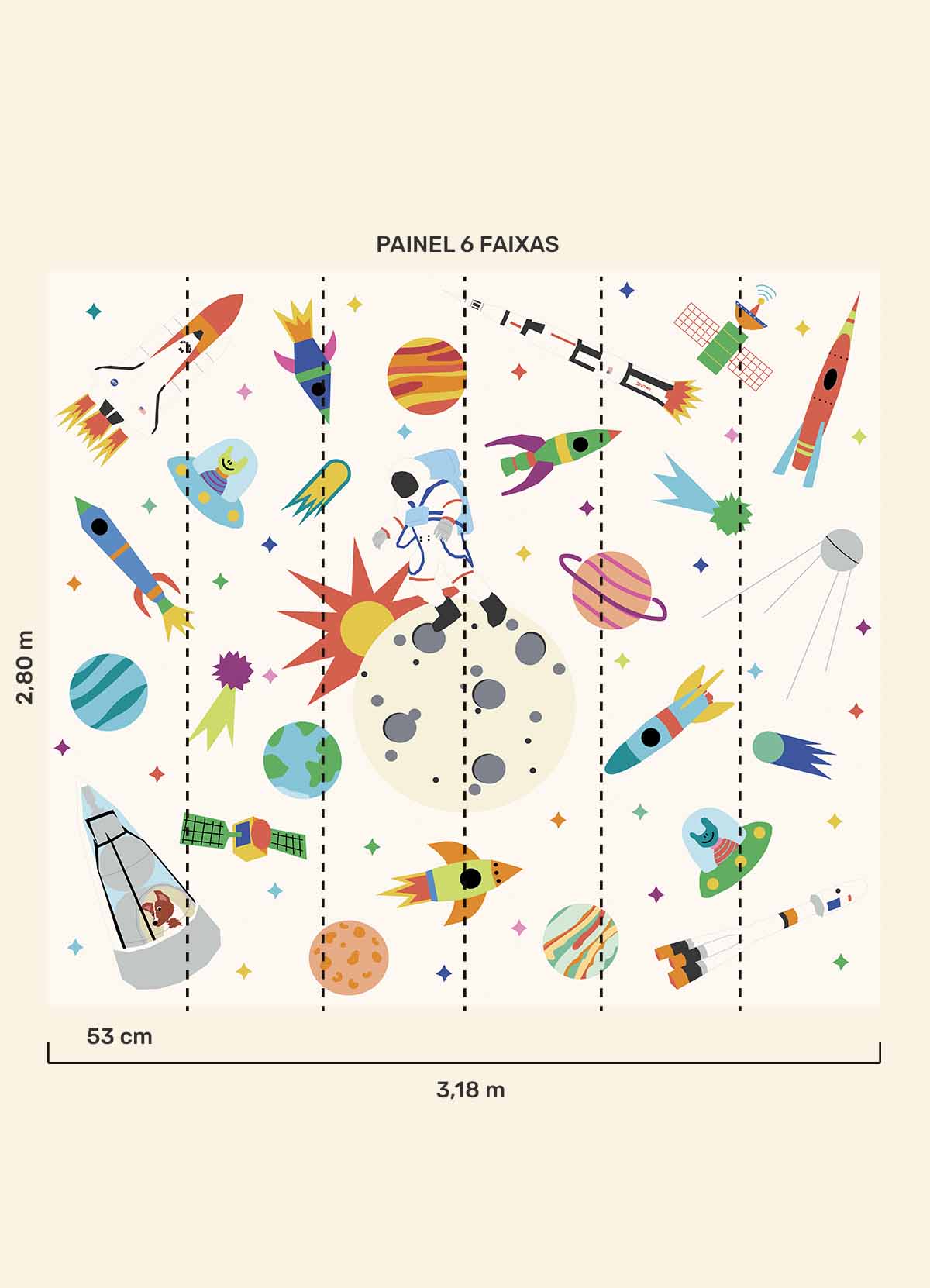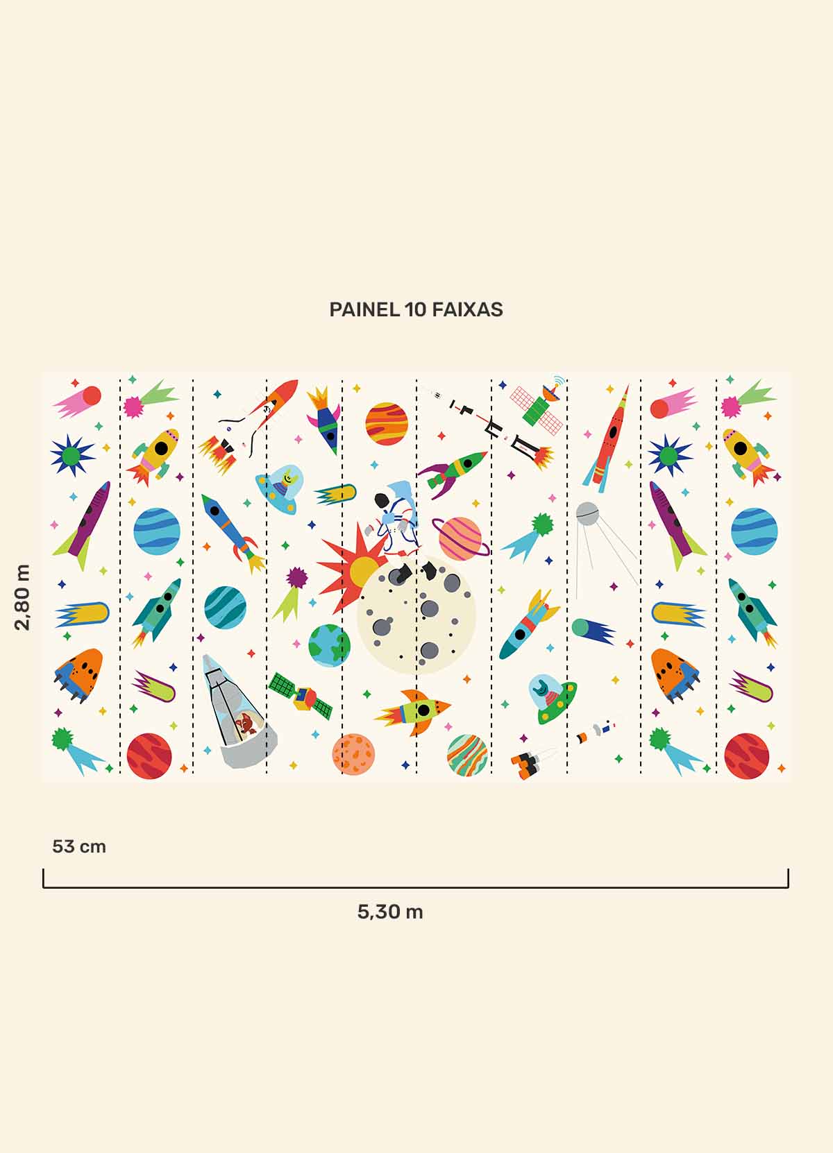 O Papel de Parede Corrida Espacial Off é como um portal da magia: permite que as cores, aventuras e o carinho invadam o quartinho infantil com alegria e encanto. Além de ser um item que transforma a decoração, nosso papel de parede infantil é de base vinílica e impressão de alta definição, para que você tenha um item de muita qualidade para decorar o quarto infantil. O acabamento é fosco e a textura suave, substituindo pinturas com tinta de forma mais prática e durável. E a junção das faixas não é sobreposta, mas alinhada lado a lado. Consulte a disponibilidade de estoque a pronta entrega.