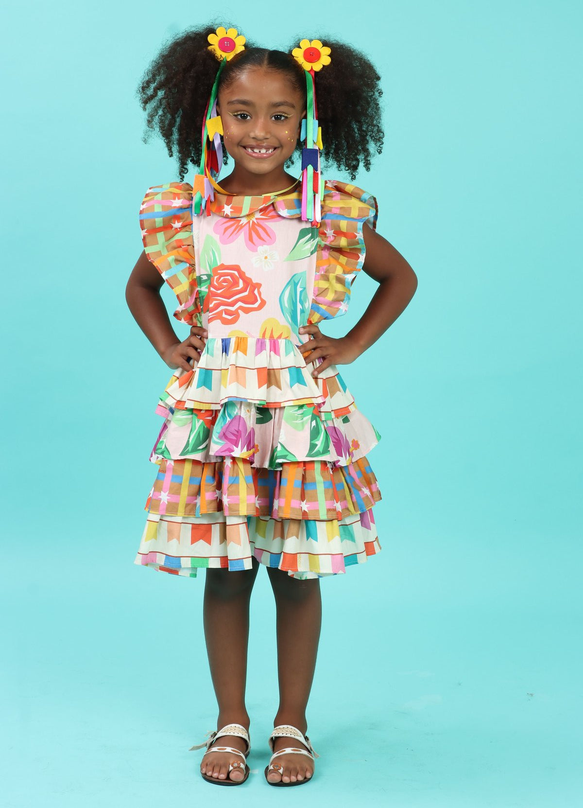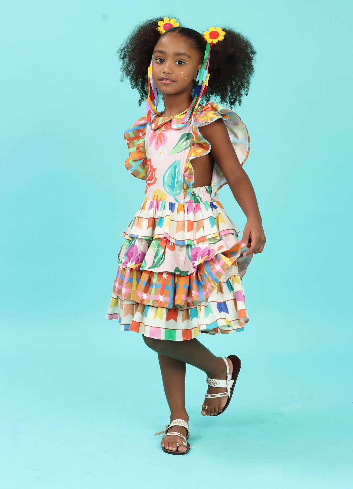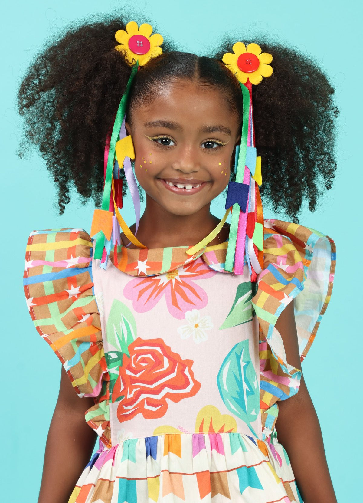 A estampa tem localização variável, deixando cada vestido único. Um look encantador para quem busca vestido caipira infantil ou roupa junina para meninas com qualidade e originalidade.