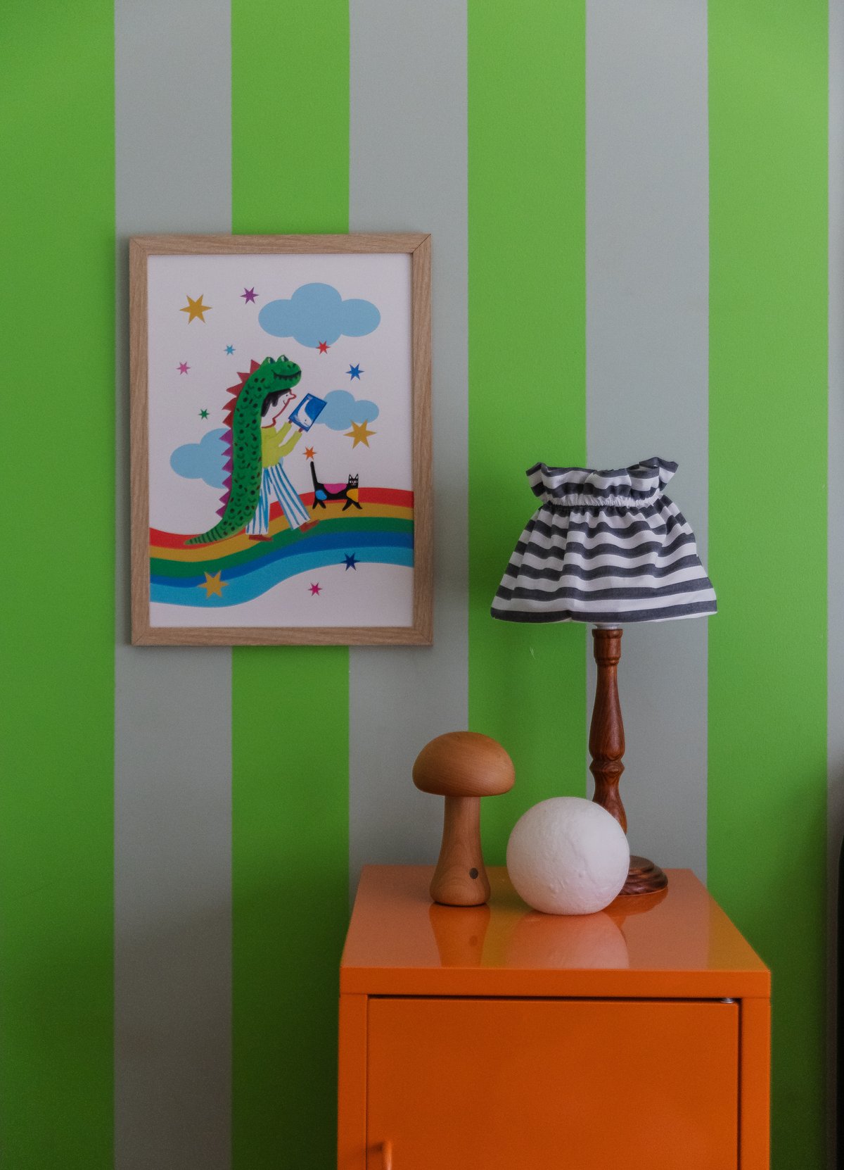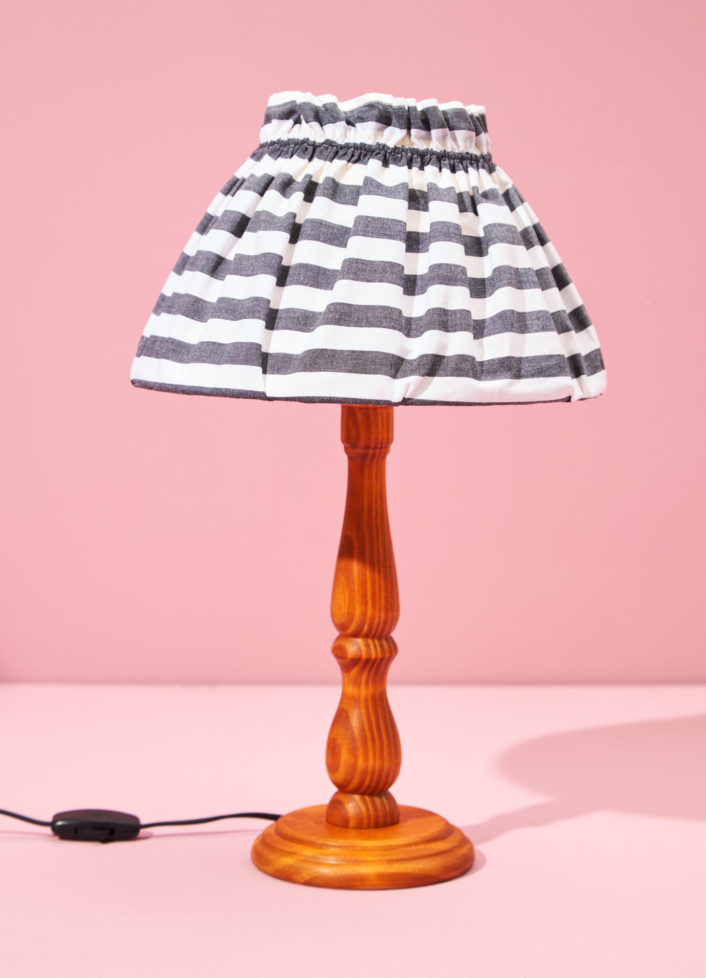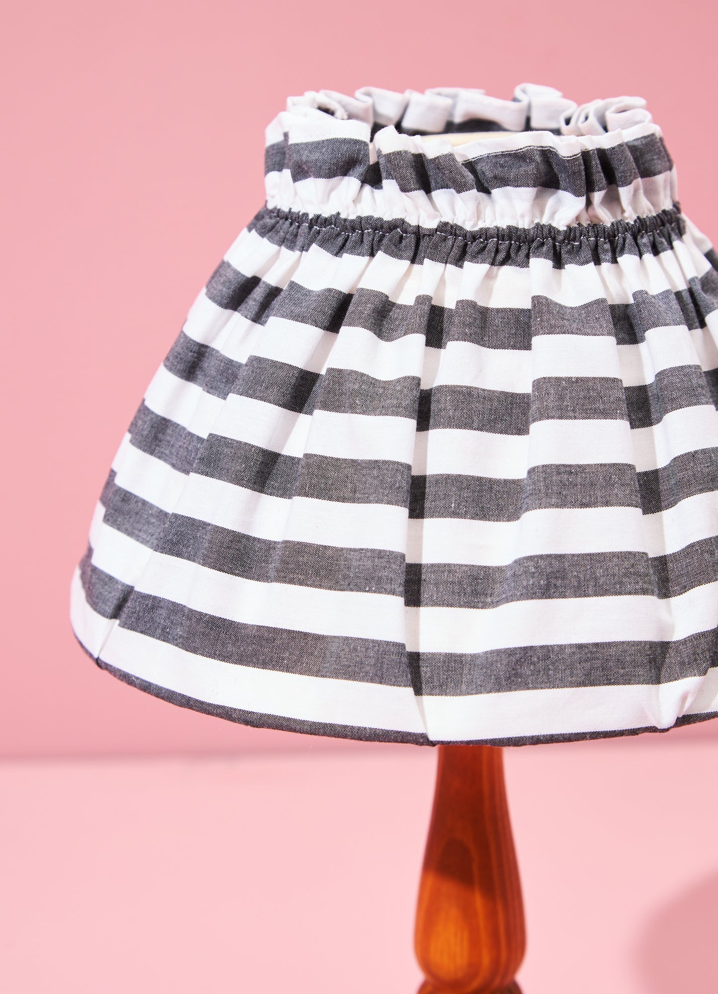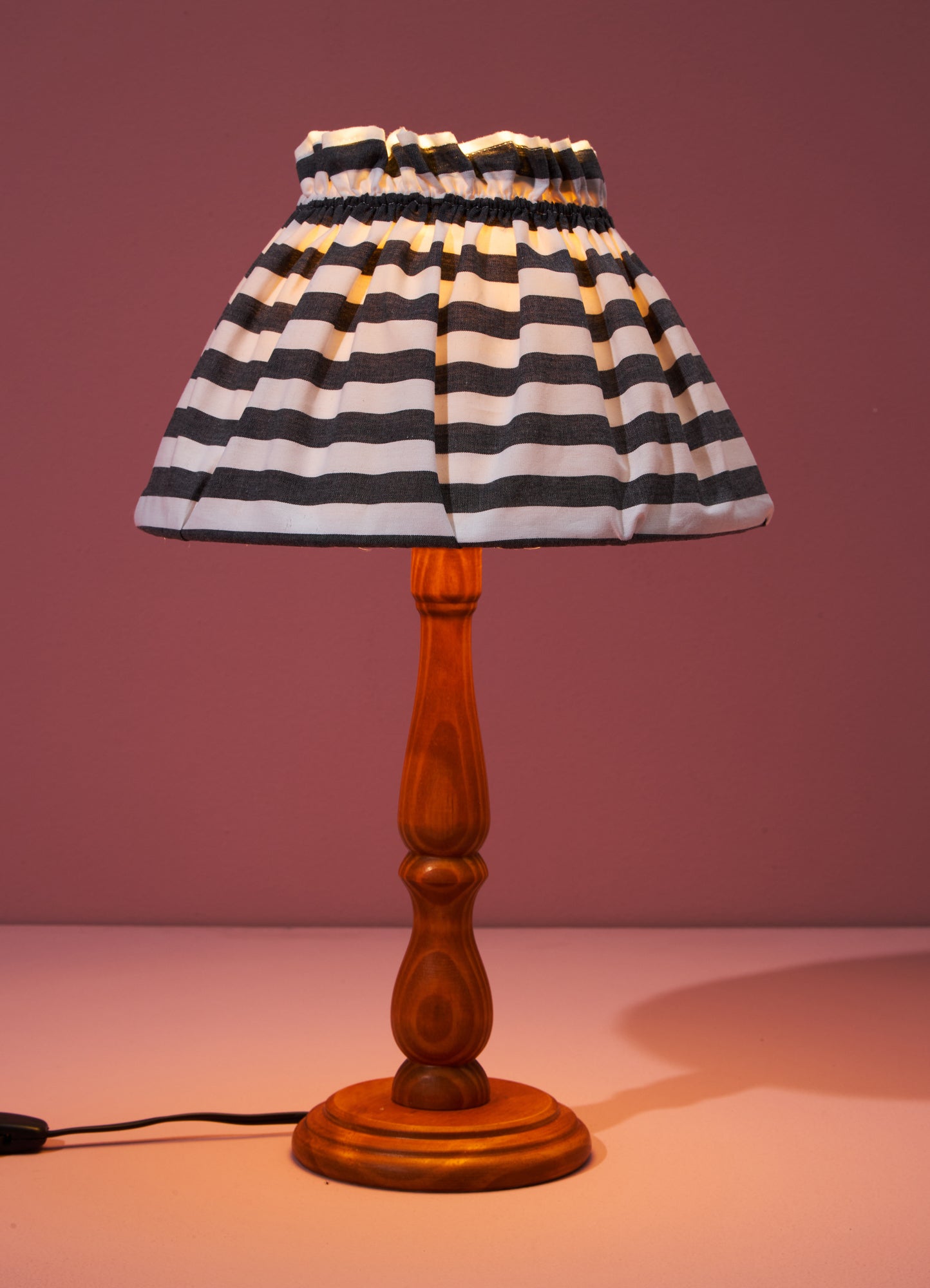 O Abajur de Mesa Listrado Horizontal Onyx é o toque final perfeito para um quarto infantil cheio de personalidade. Com base em madeira natural e cúpula de tecido listrado em preto, ele traz charme atemporal e uma luz suave, ideal para criar um clima acolhedor na hora de dormir, ler ou relaxar.
