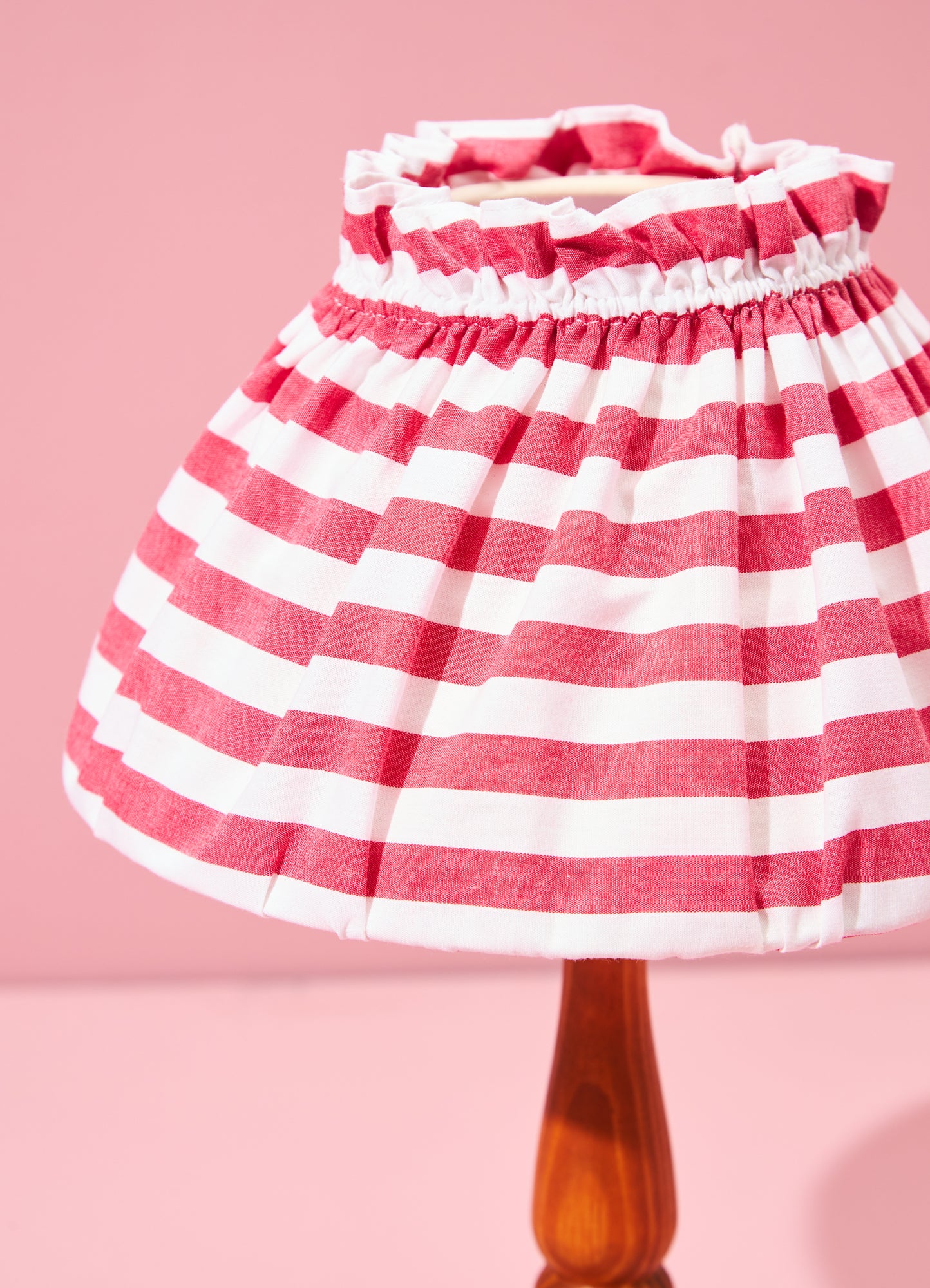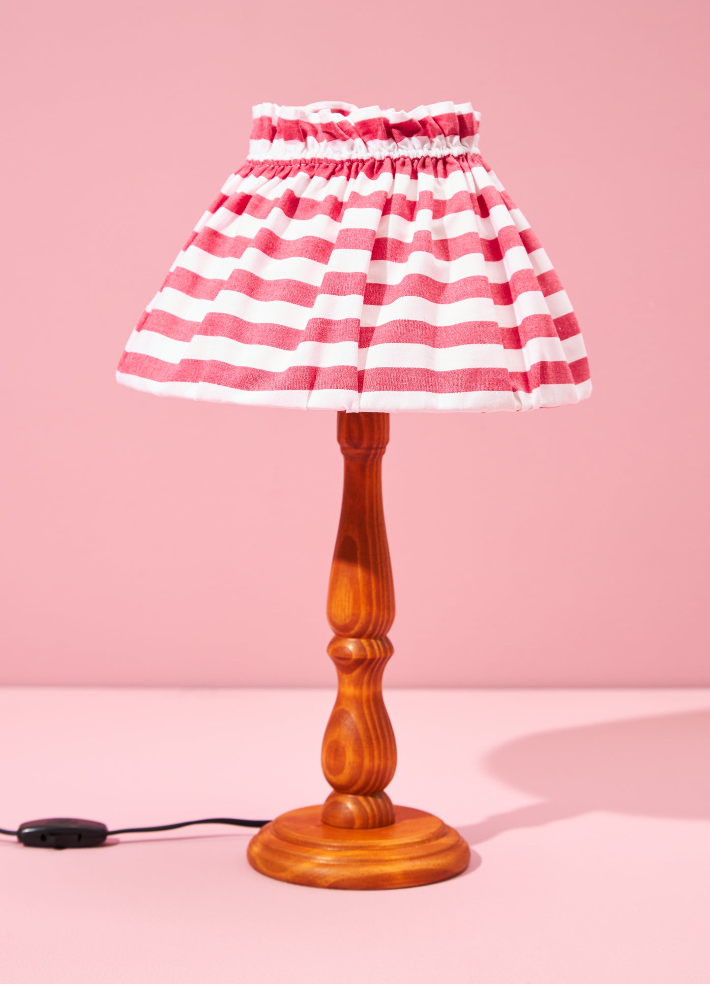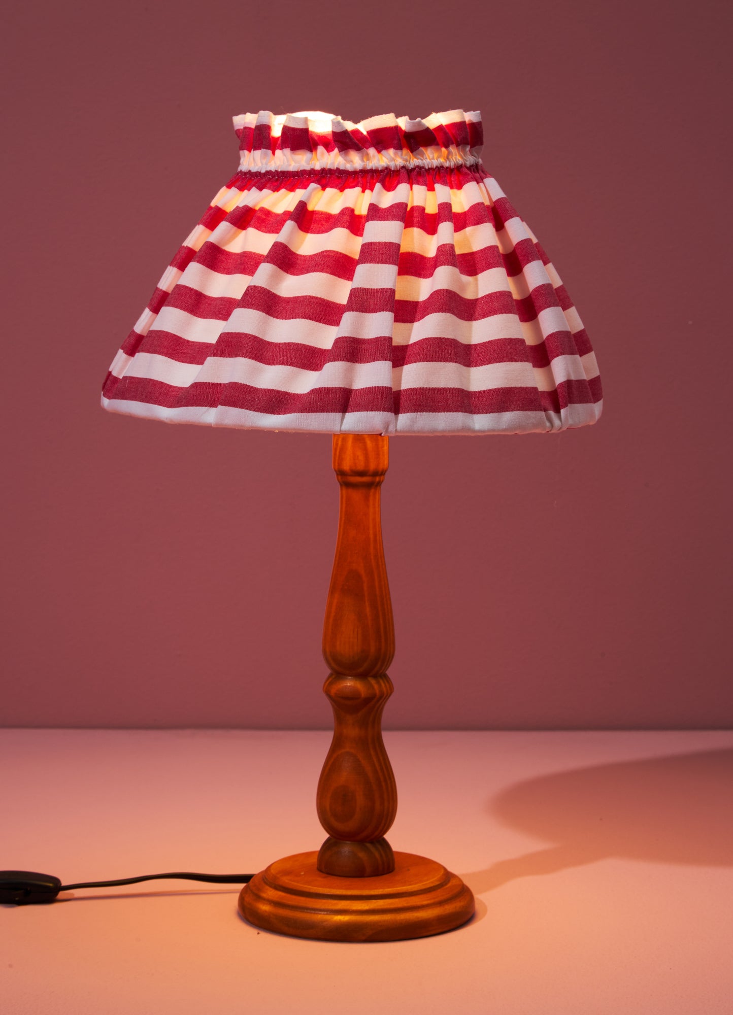 O Abajur de Mesa Listrado Horizontal Vermelho é o toque final perfeito para um quarto infantil cheio de personalidade. Com base em madeira natural e cúpula de tecido listrado em vermelho, ele traz charme atemporal e uma luz suave, ideal para criar um clima acolhedor na hora de dormir, ler ou relaxar.