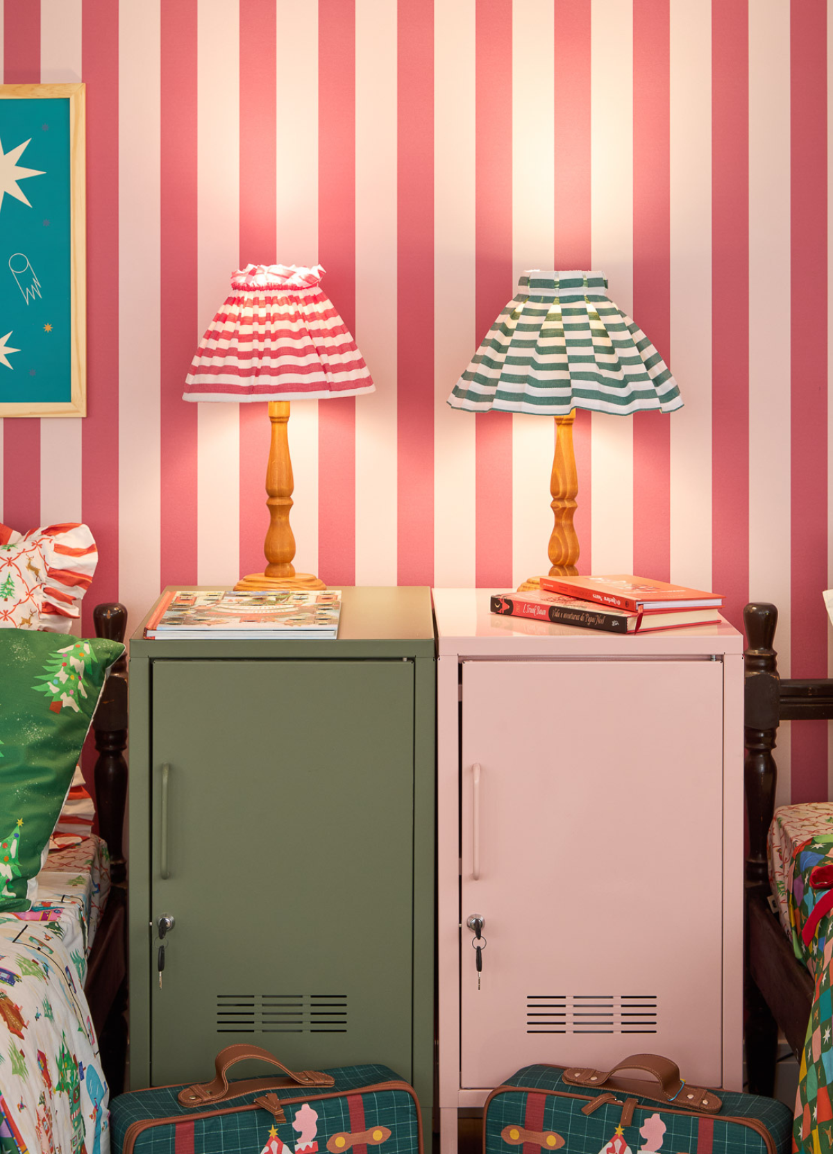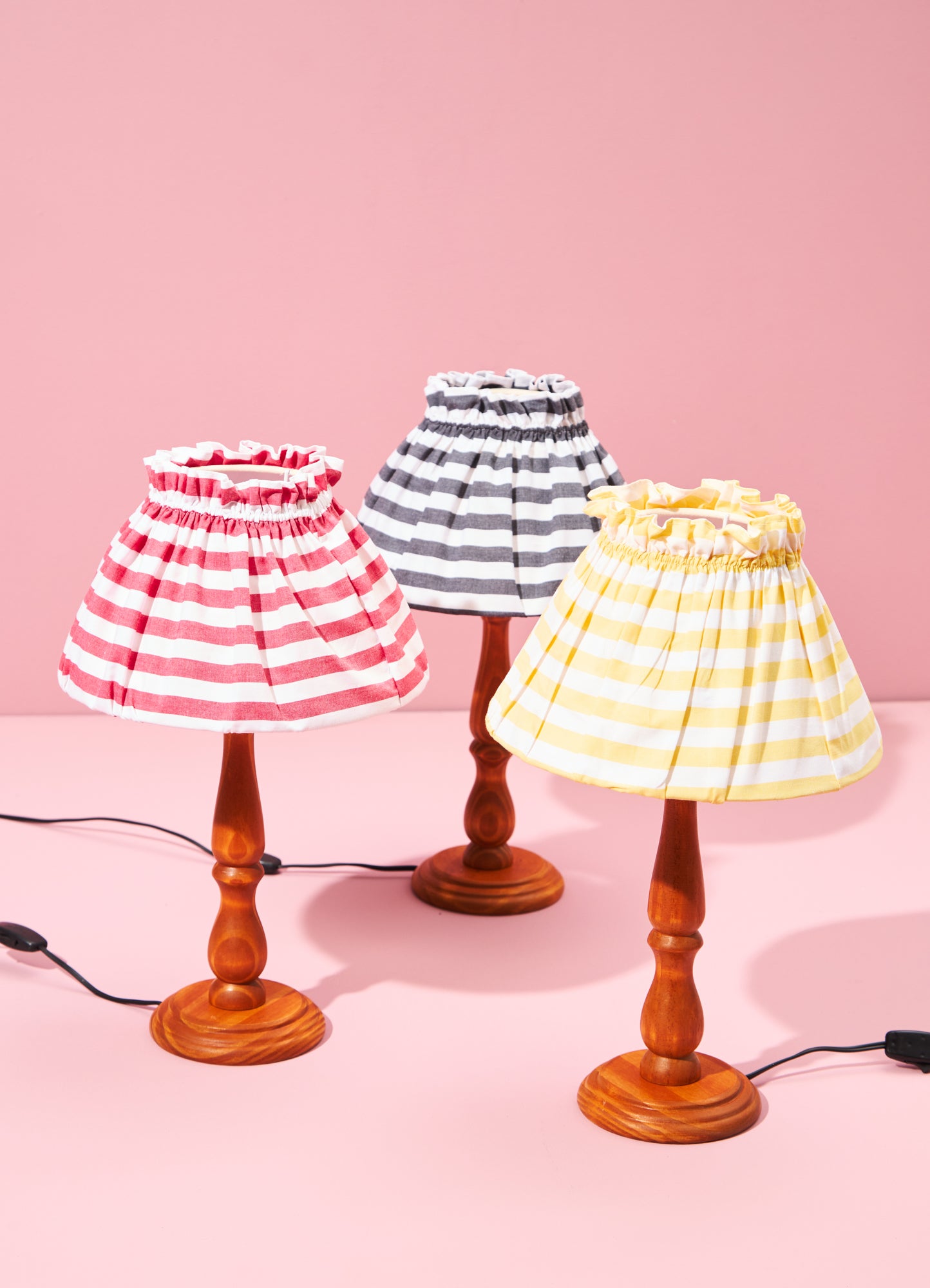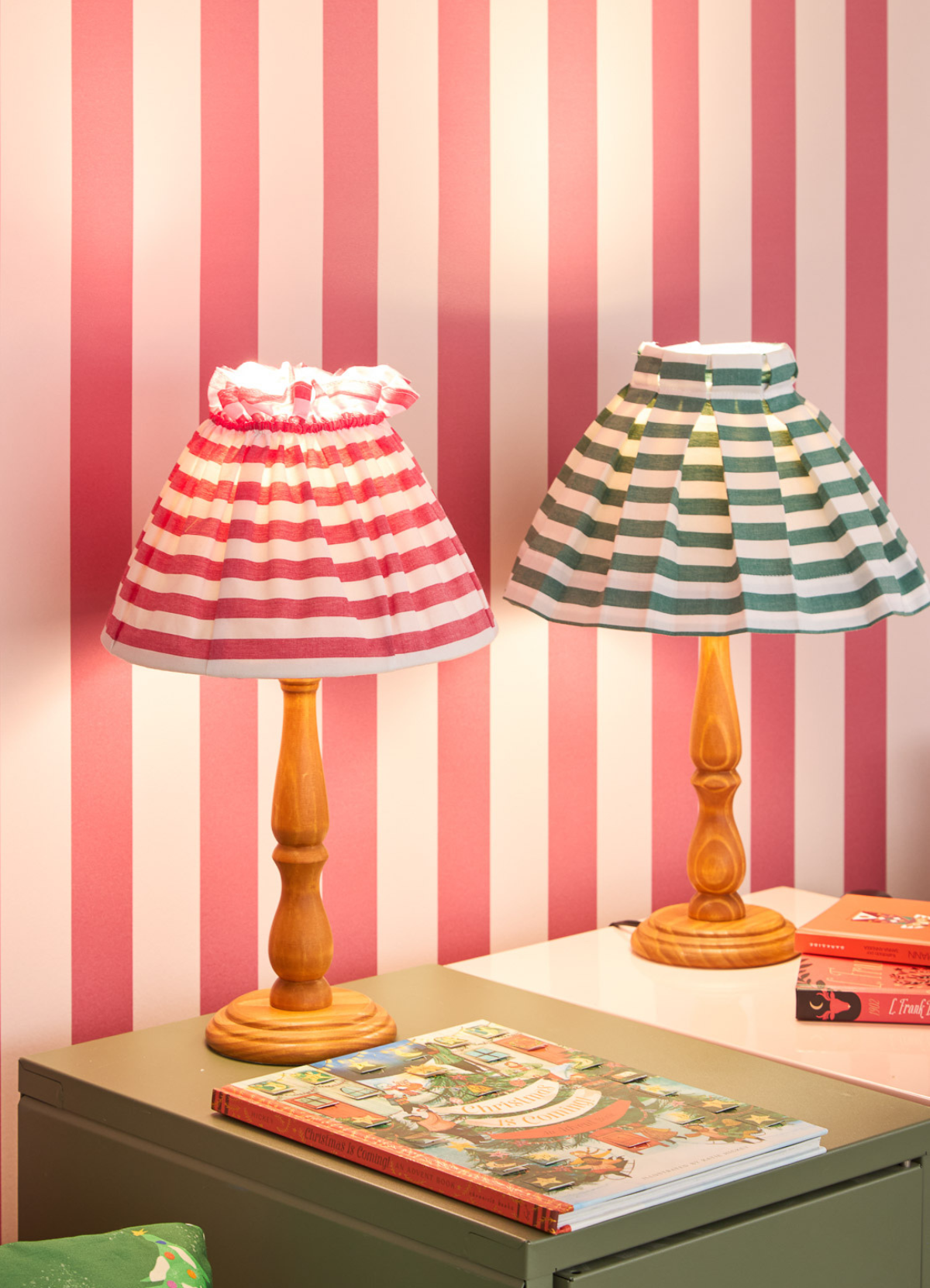 O Abajur de Mesa Listrado Horizontal Vermelho é o toque final perfeito para um quarto infantil cheio de personalidade. Com base em madeira natural e cúpula de tecido listrado em vermelho, ele traz charme atemporal e uma luz suave, ideal para criar um clima acolhedor na hora de dormir, ler ou relaxar.