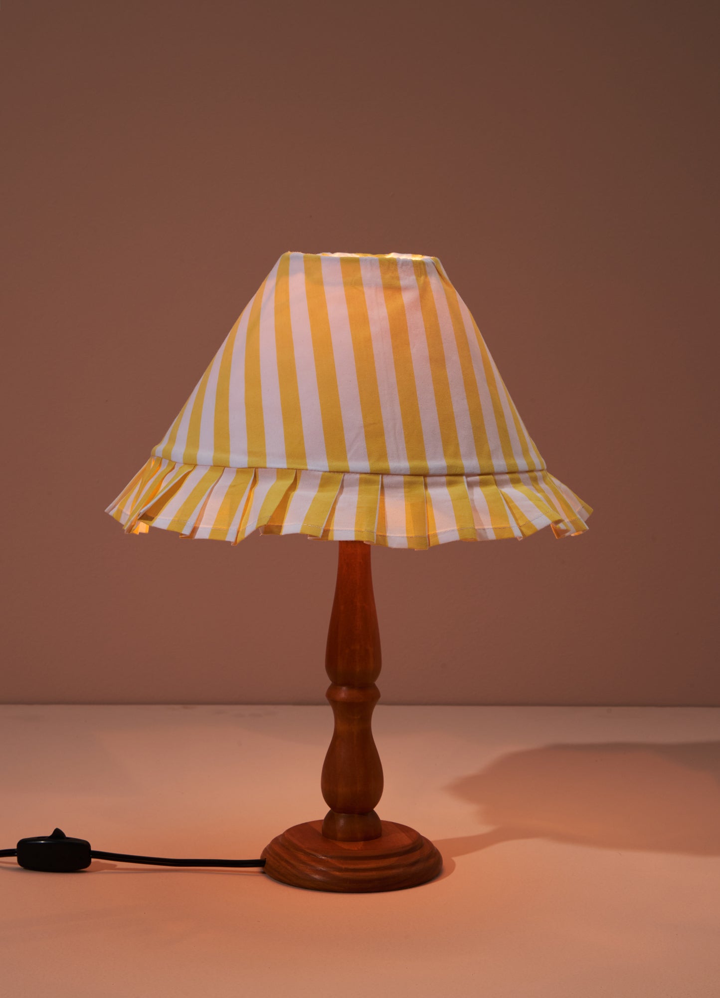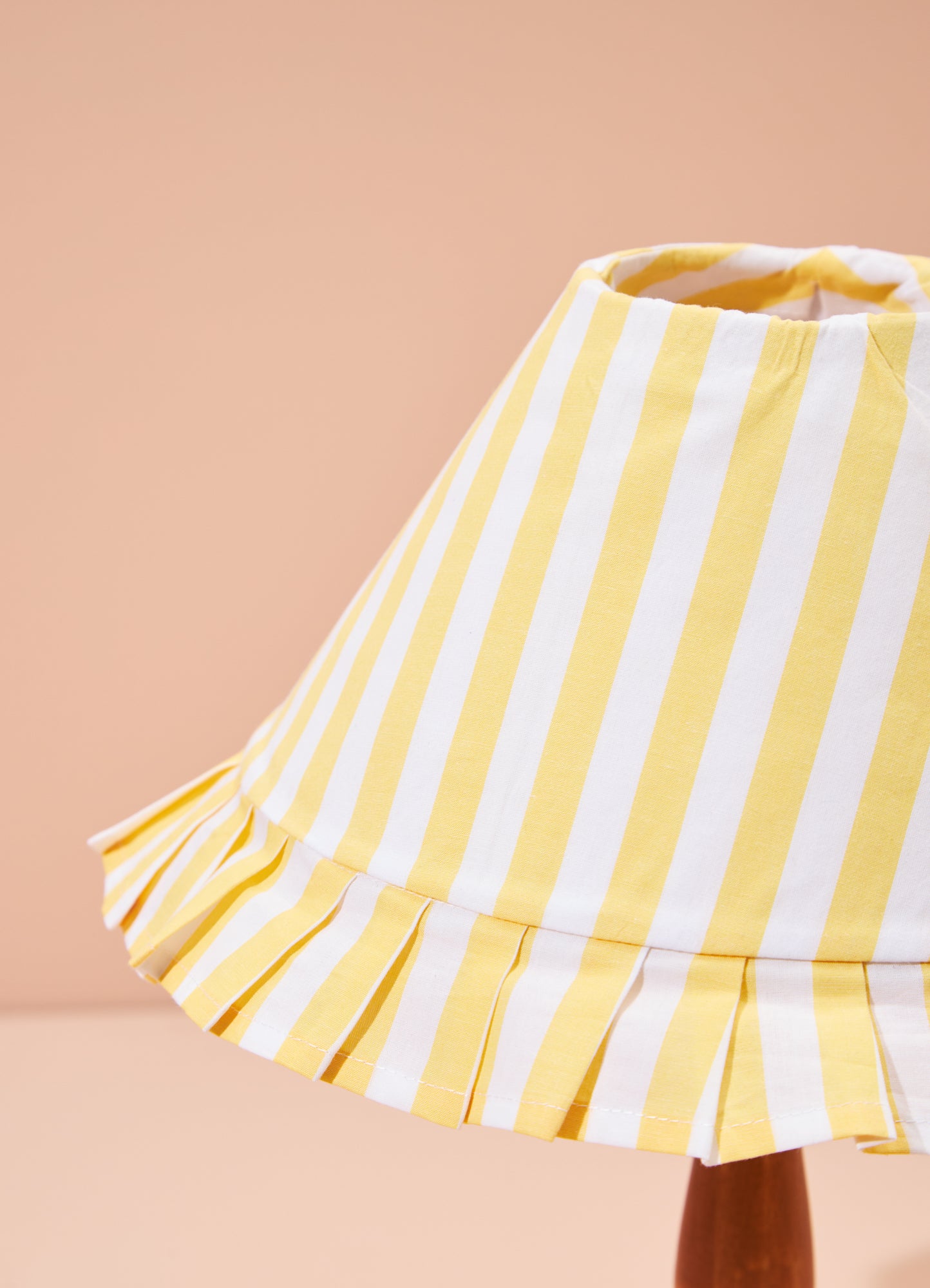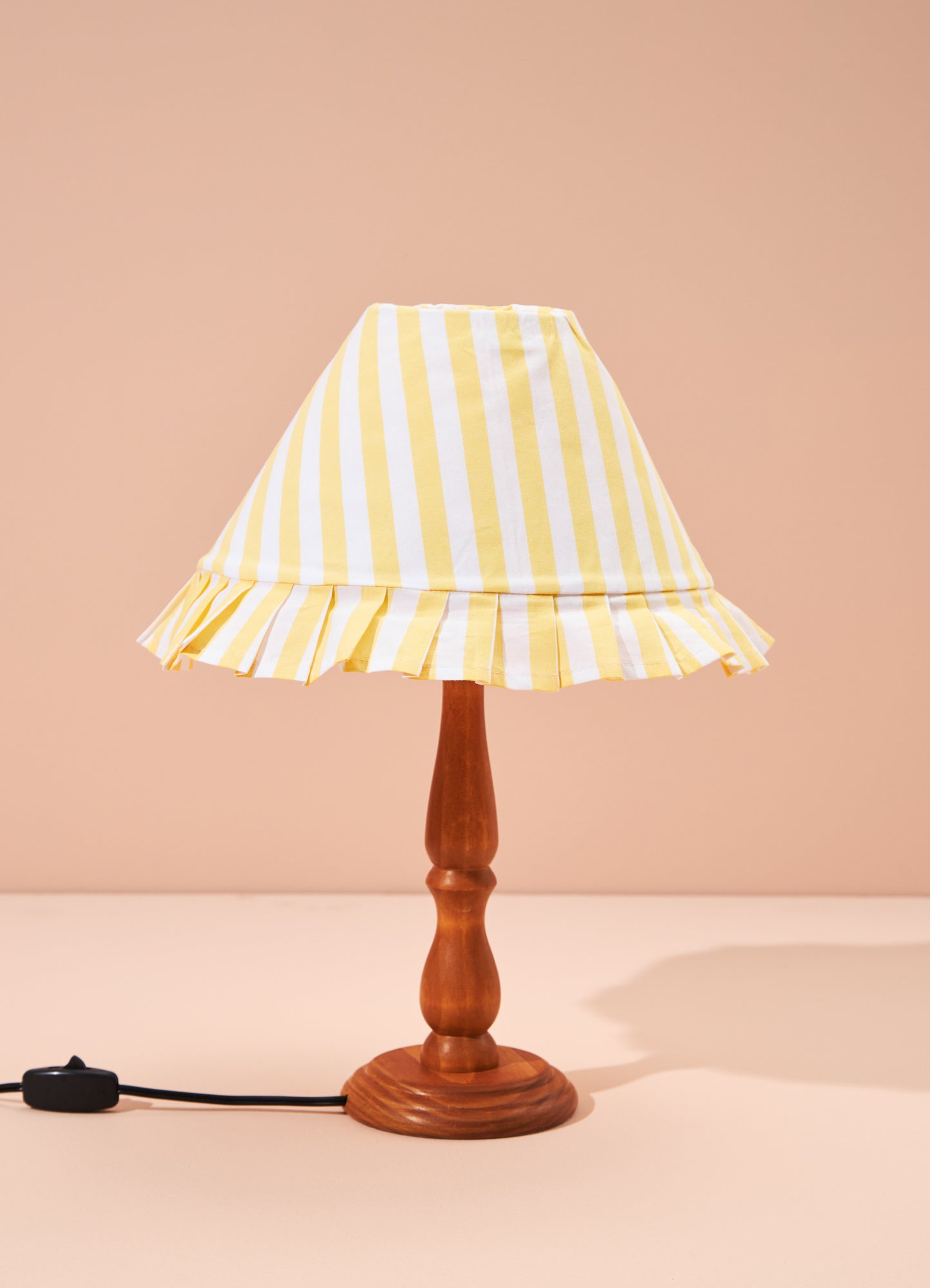 O Abajur de Mesa Listrado Amarelo é o toque final perfeito para um quarto infantil cheio de personalidade. Com base em madeira natural e cúpula de tecido listrado, ele traz charme atemporal e uma luz suave, ideal para criar um clima acolhedor na hora de dormir, ler ou relaxar.