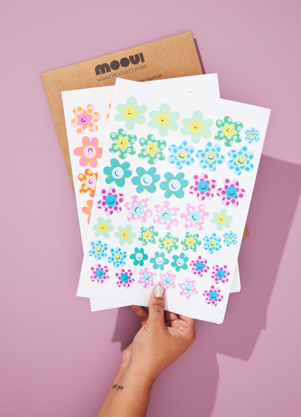 O Adesivo de Parede Happy Flowers é uma opção prática, linda e acessível para transformar qualquer decoração, trazendo formas que encantam e divertem. Este adesivo de parede infantil pode ser aplicado em paredes, assim como em outras superfícies como vidros, geladeiras, móveis e muito mais - o limite é a sua imaginação. A aplicação do adesivo de quarto infantil é fácil e não requer um especialista.