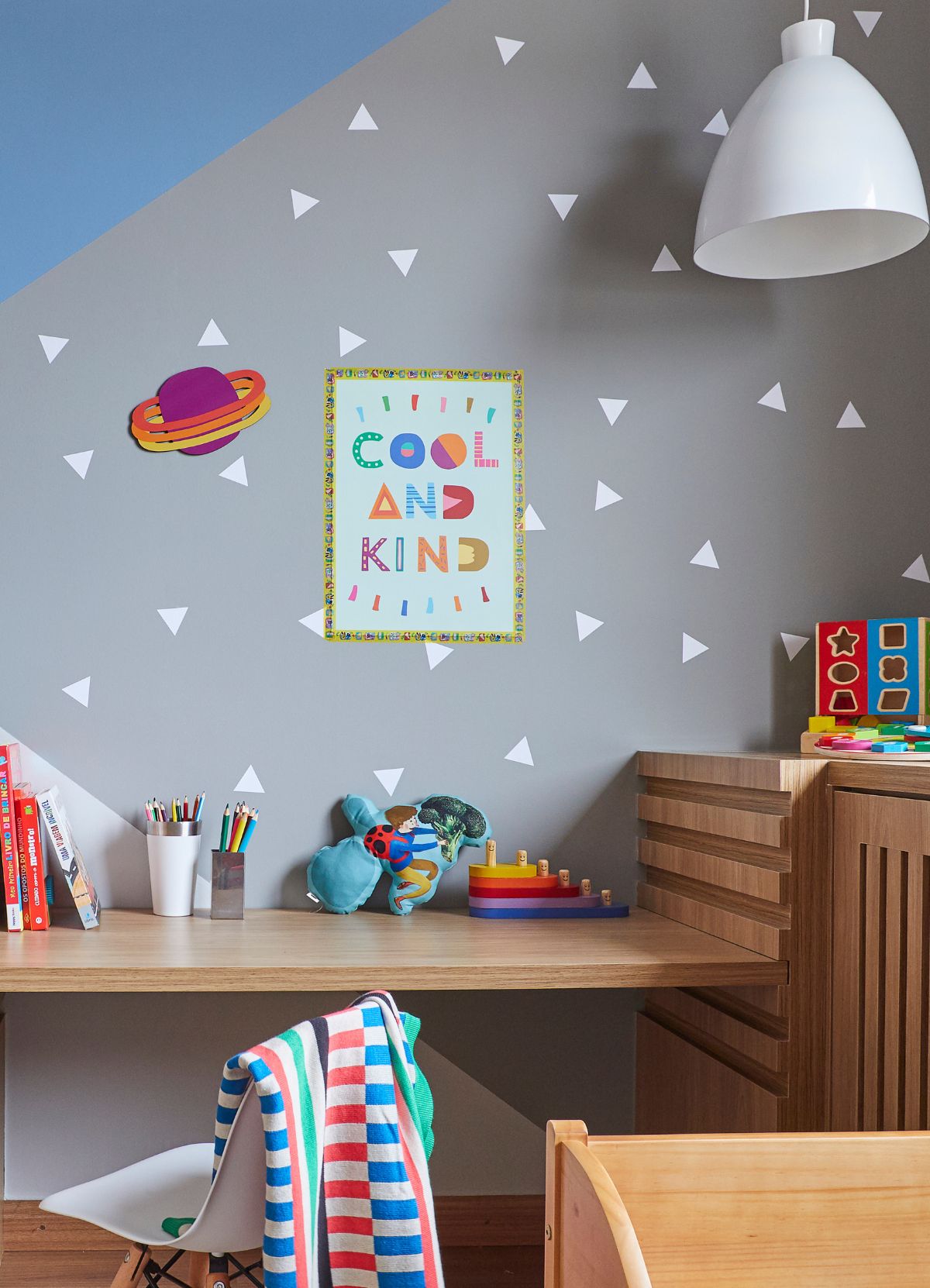 O Adesivo de Parede Triângulos Brancos é uma opção prática, linda e acessível para transformar qualquer decoração, trazendo formas que encantam e divertem. Este adesivo de parede infantil pode ser aplicado em paredes, assim como em outras superfícies como vidros, geladeiras, móveis e muito mais - o limite é a sua imaginação. A aplicação do adesivo de quarto infantil é fácil e não requer um especialista. A durabilidade do adesivo de parede infantil é de 36 meses.
