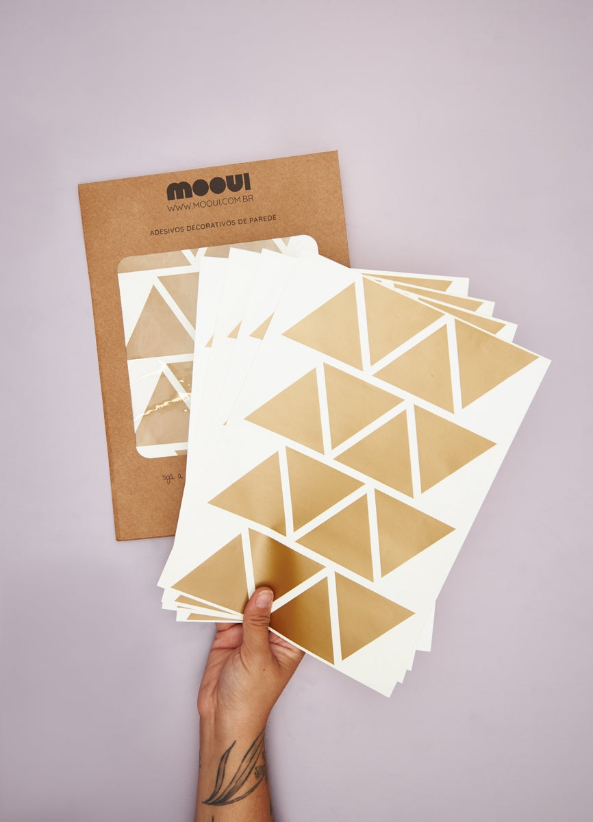 O Adesivo de Parede Triângulos Dourados é uma opção prática, linda e acessível para transformar qualquer decoração, trazendo formas que encantam e divertem. Este adesivo de parede infantil pode ser aplicado em paredes, assim como em outras superfícies como vidros, geladeiras, móveis e muito mais - o limite é a sua imaginação. A aplicação do adesivo de quarto infantil é fácil e não requer um especialista. A durabilidade do adesivo de parede infantil é de 36 meses.