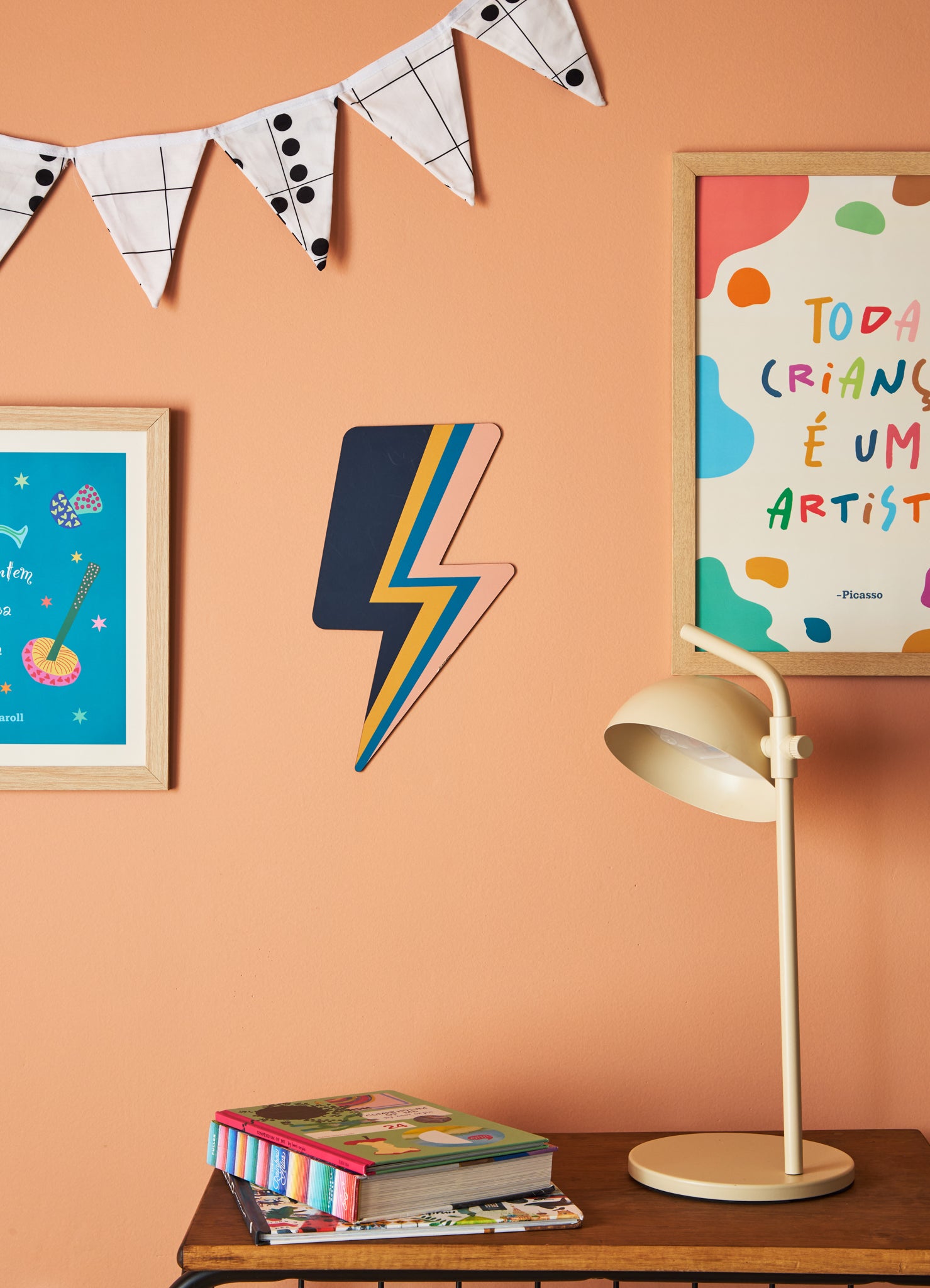 O adorno de parede Raio tem o toque de charme perfeito para enfeitar as paredes dos quartos infantis, porque permite combinações super autênticas com outras estampas de adorno, varais e pôsteres da MOOUI. Esse adorno para decoração de parede é fabricado em MDF e possui o desenho exclusivo MOOUI impresso em alta definição. Para facilitar na hora de fixar na parede, enviamos o adorno com fita dupla face para você.