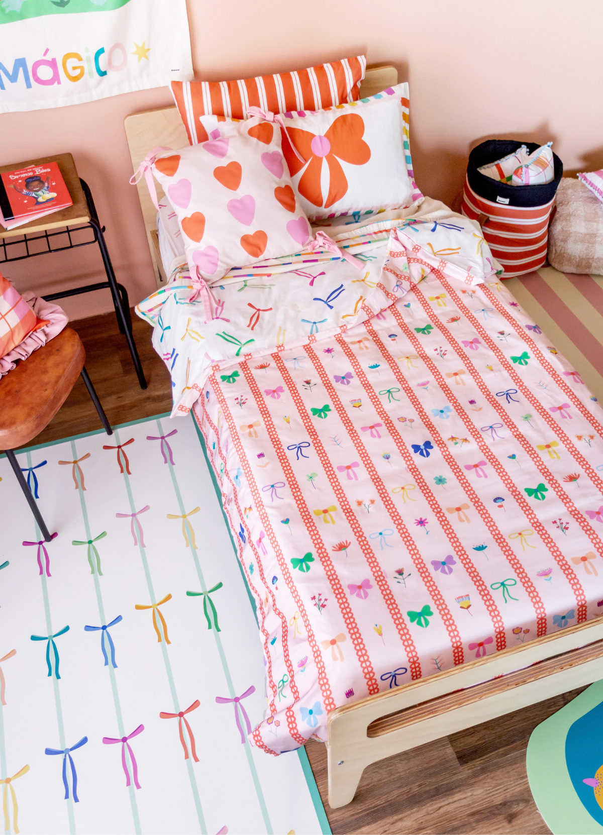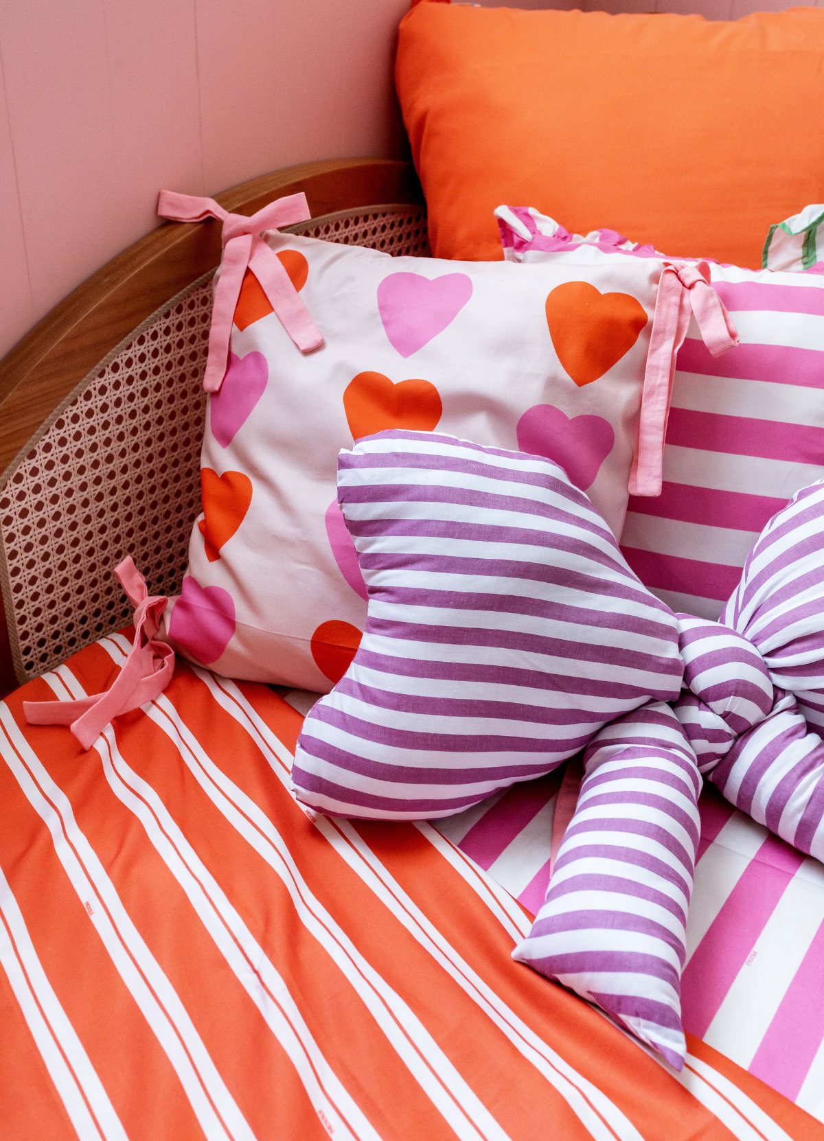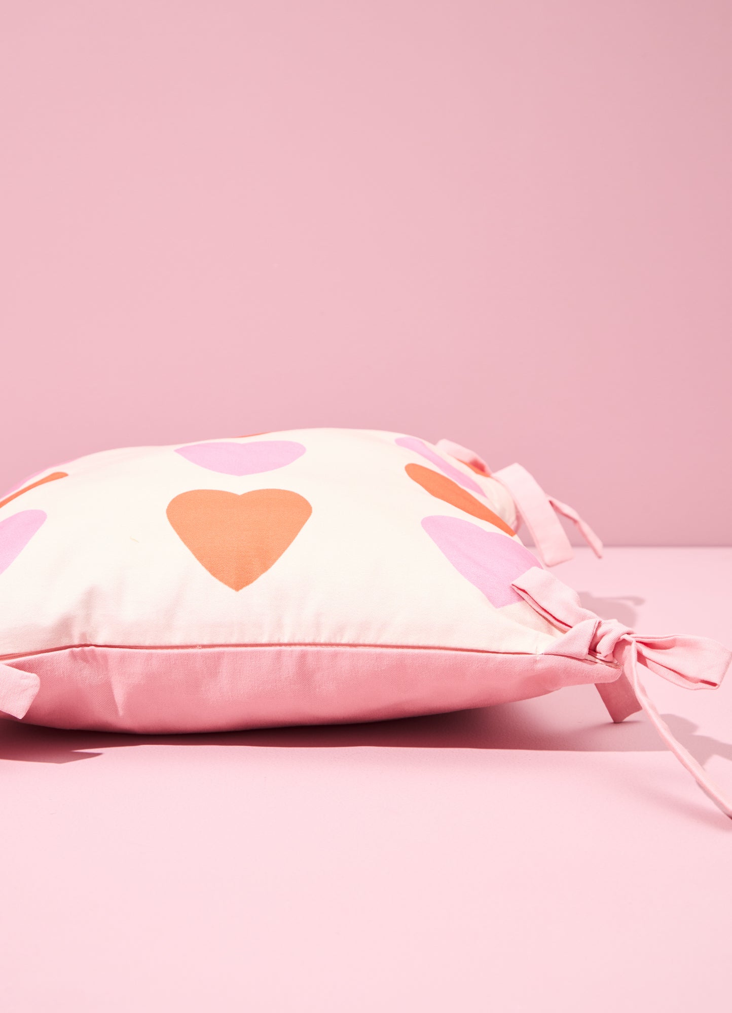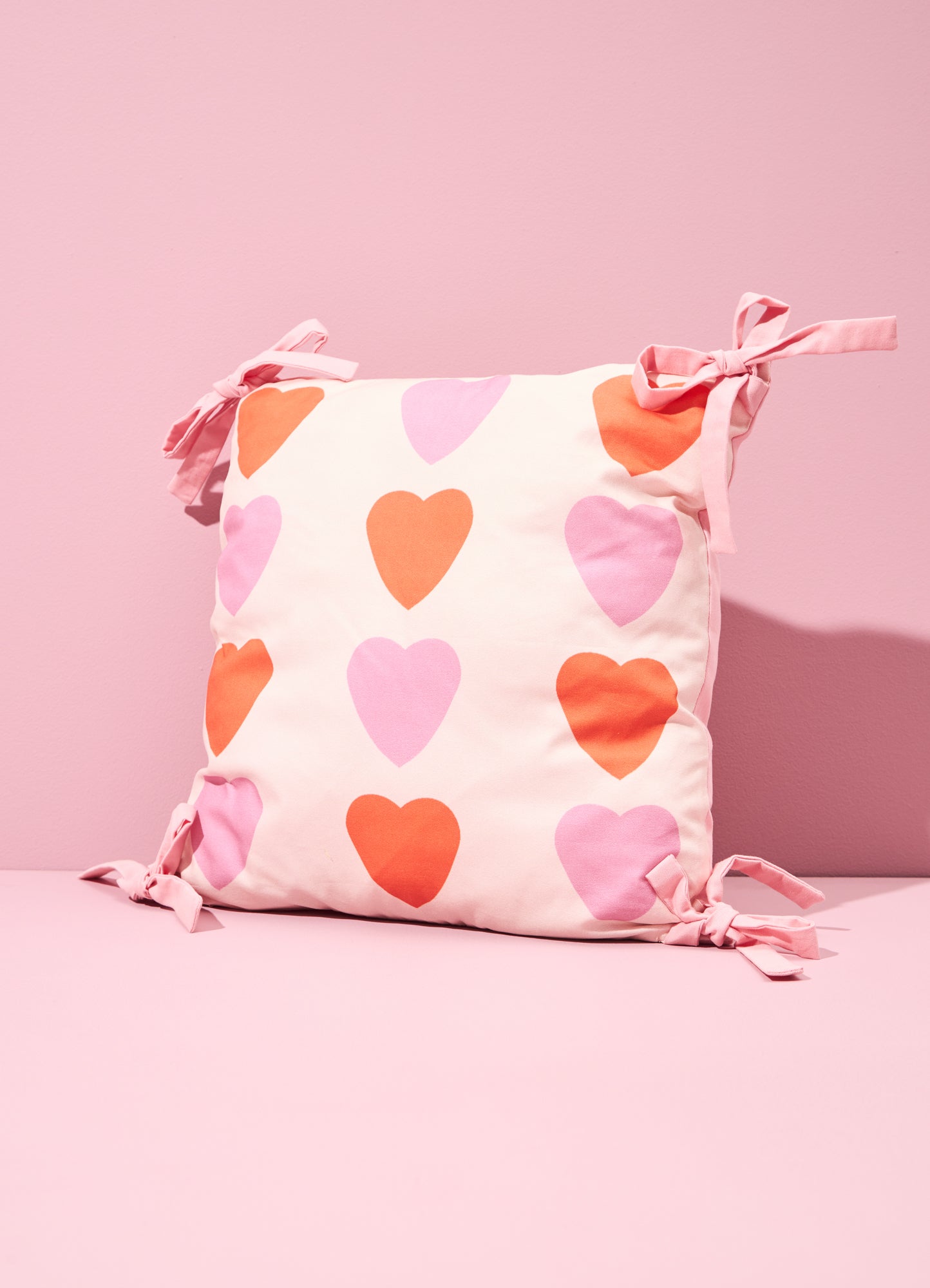 A Almofada Corações é perfeita para compor a decoração com um toque delicado e divertido. Feita em sarja de algodão com laços aplicados nos quatro cantos, ela traz textura e movimento para o ambiente.