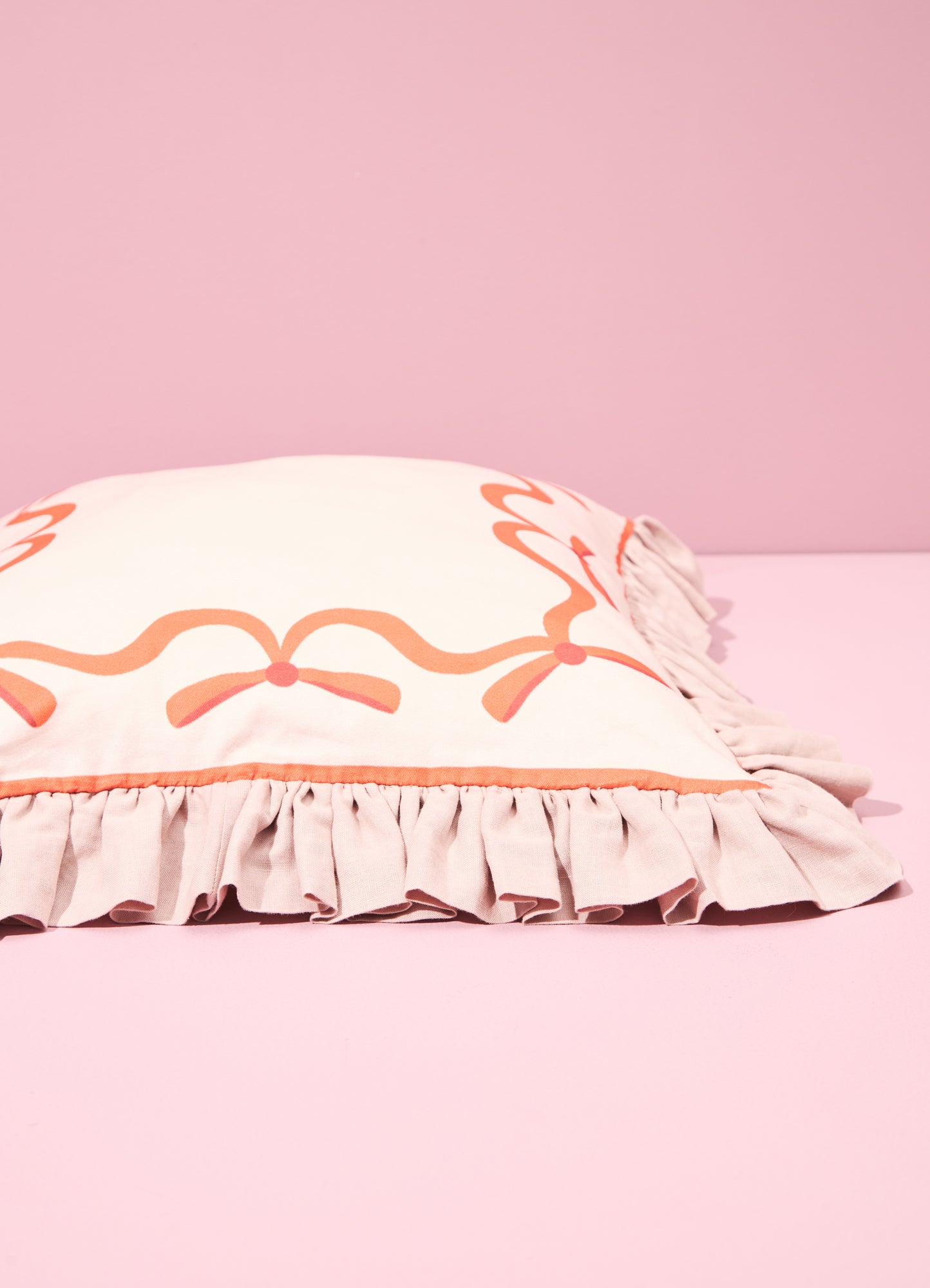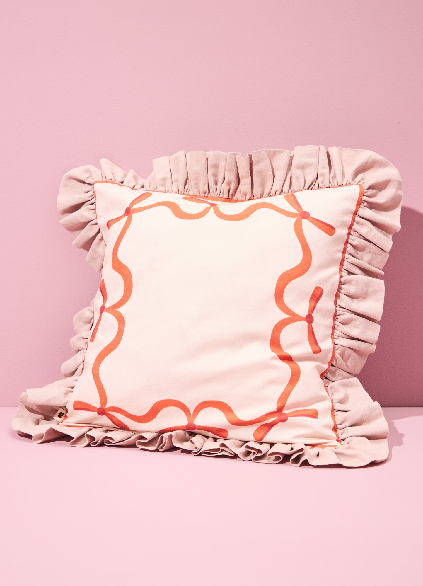 A Almofada Laços Vermelhos é aquele detalhe especial que transforma qualquer ambiente com delicadeza e personalidade. Confeccionada em sarja de algodão com babado de 7 cm em tecido de linho, ela traz elegância e leveza para composições infantis ou de outros cômodos da casa.