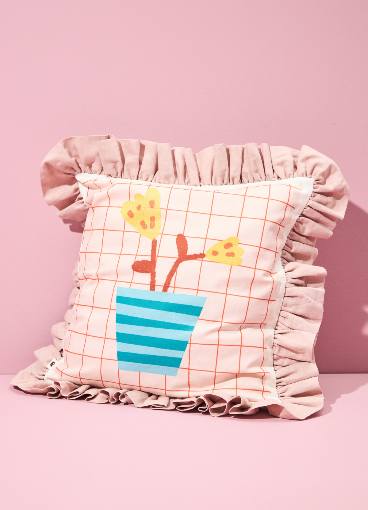 A Almofada Vaso de Flor é aquele detalhe especial que transforma qualquer ambiente com delicadeza e personalidade. Confeccionada em sarja de algodão com babado de 7 cm em tecido de linho, ela traz elegância e leveza para composições infantis ou de outros cômodos da casa.