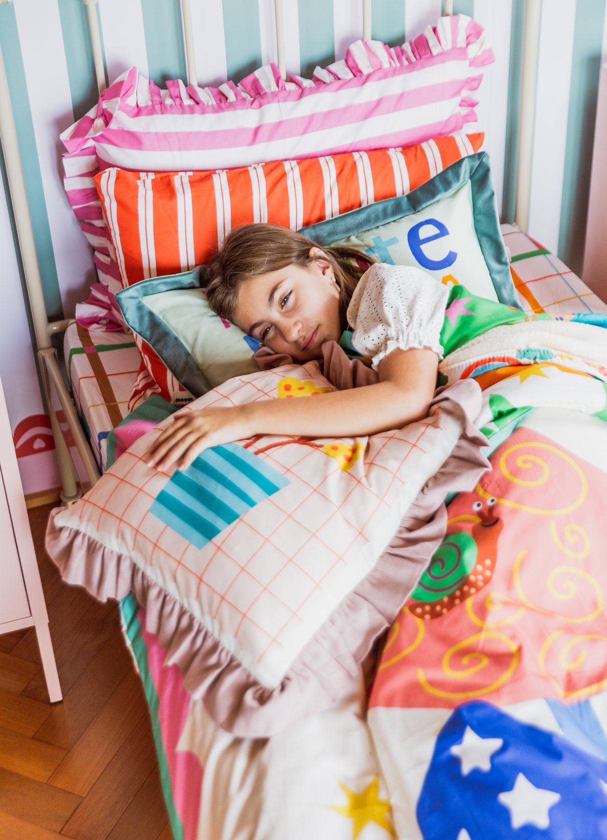Com fechamento em zíper invisível, acabamento impecável e recheio incluso, é prática e pronta para uso. A estampa exclusiva da MOOUI adiciona um toque lúdico e sofisticado, perfeita para combinar com outras capas de almofada, almofadas pompom e as queridas almofadas toy interativas da marca.