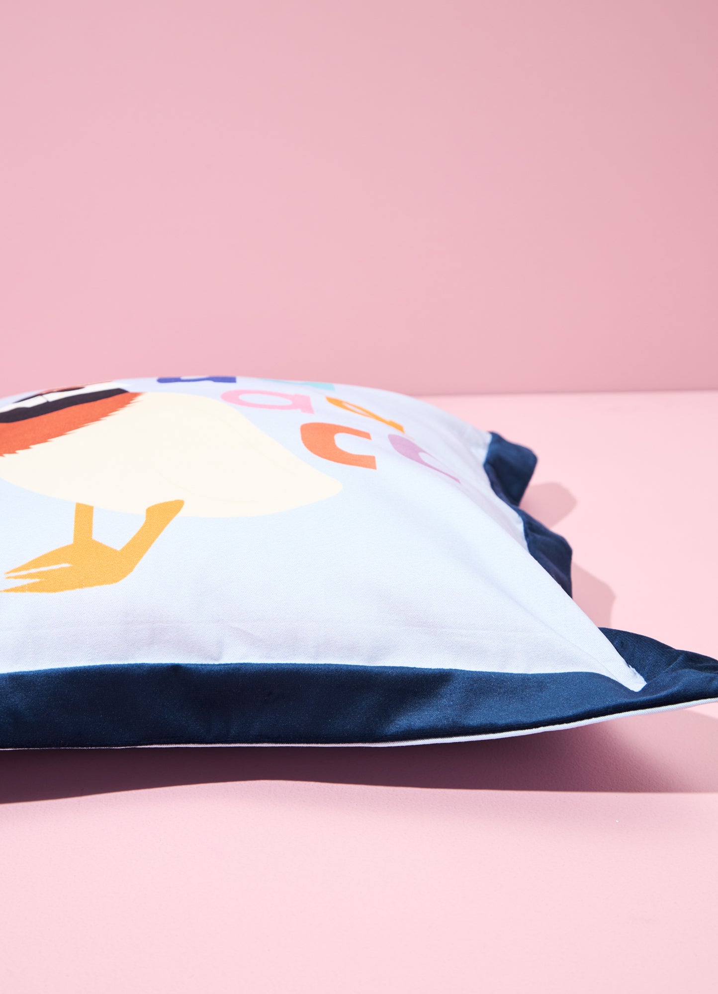 A Almofada Patinho traz cor, textura e um jeitinho especial para compor a decoração. Feita em sarja de algodão com aba de 4 cm em veludo macio, é perfeita para criar combinações cheias de charme e personalidade.