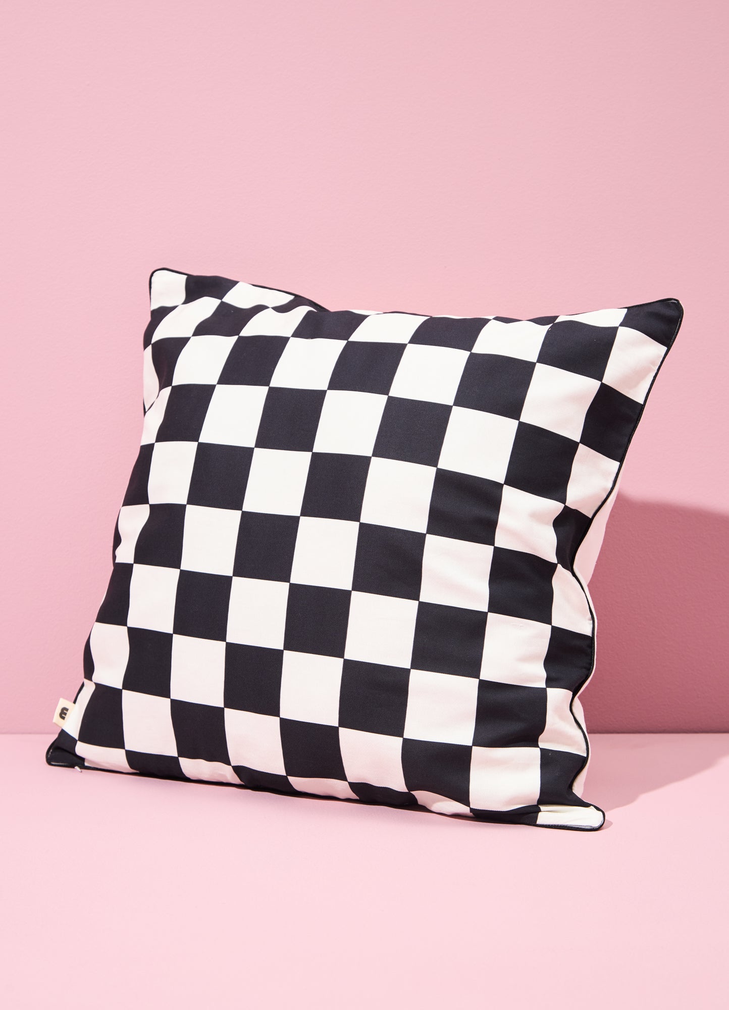 A Almofada Xadrez P&B traz um toque gráfico e moderno para a decoração. Confeccionada em sarja de algodão com vivo relotê, ela é perfeita para compor ambientes com estilo e personalidade.