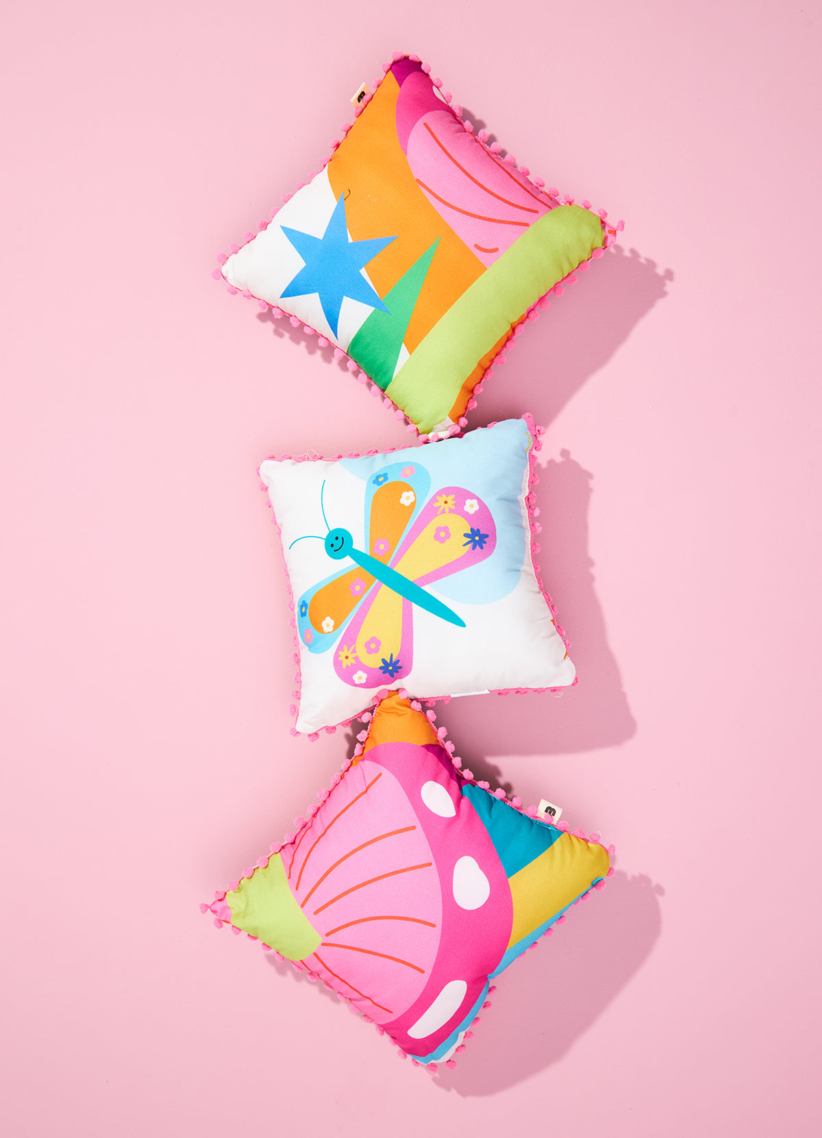 A Almofada Infantil Festa de Cogumelos da MOOUI traz encanto e cor para o quarto de bebê ou criança através de estampas exclusivas. Seu tamanho versátil de 25x25cm adapta-se perfeitamente na decoração de berços, camas ou poltronas, adicionando um toque lúdico ao ambiente.