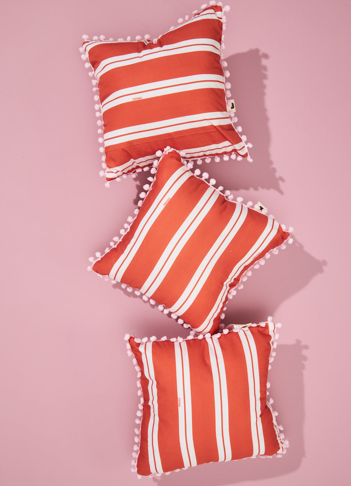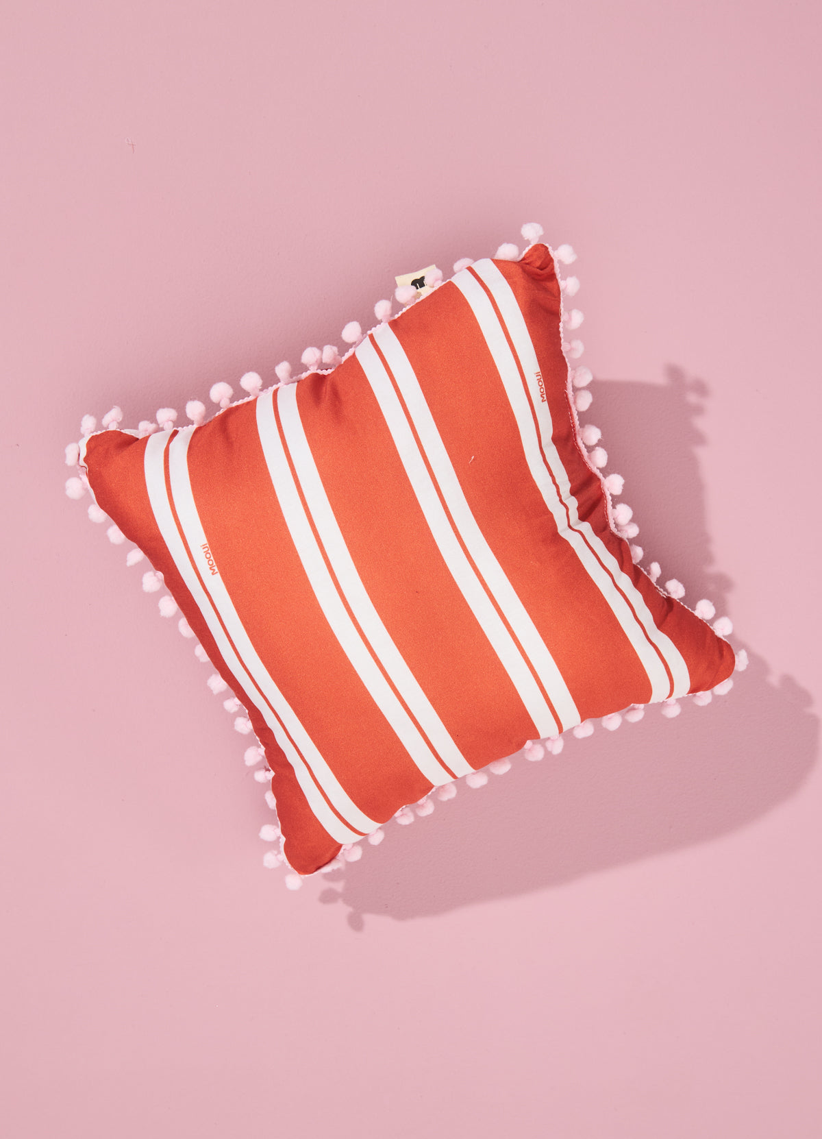 A Almofada Infantil Listrado Carmim da MOOUI traz encanto e cor para o quarto de bebê ou criança através de estampas exclusivas. Seu tamanho versátil de 25x25cm adapta-se perfeitamente na decoração de berços, camas ou poltronas, adicionando um toque lúdico ao ambiente.