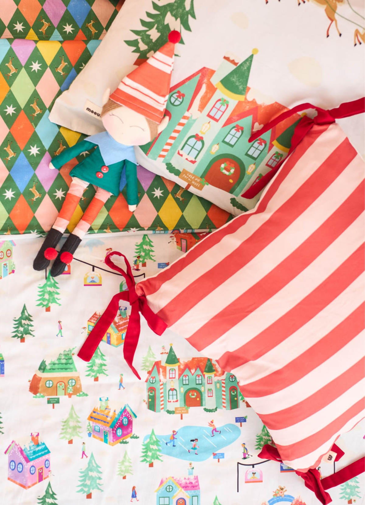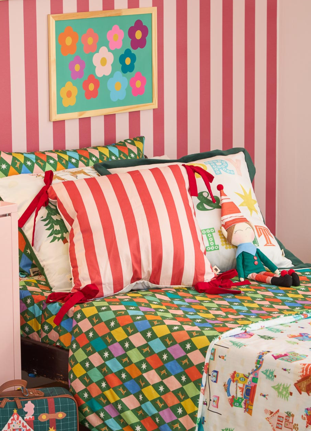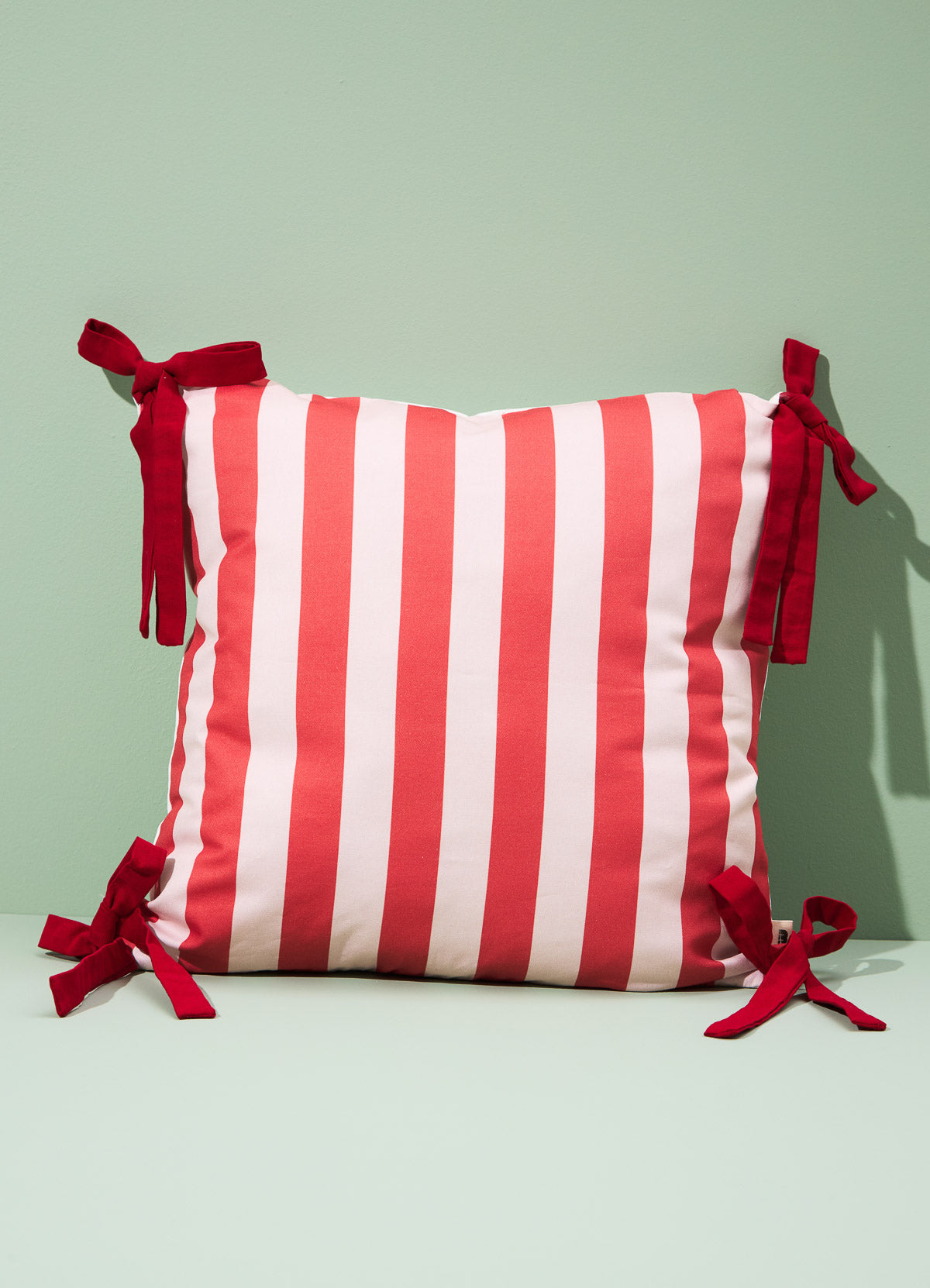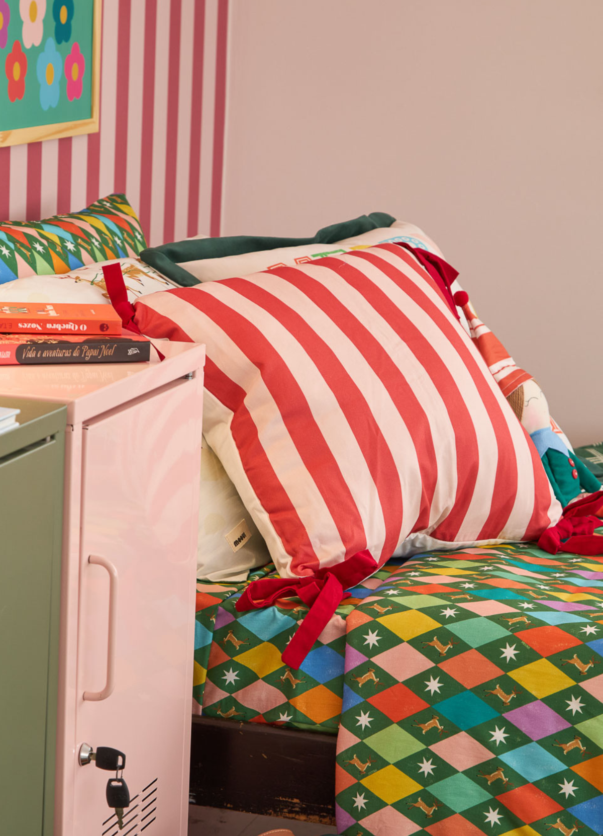 A Almofada 45x45cm Listras de Natal da MOOUI é versátil e transformadora para qualquer ambiente. Confeccionada em sarja de algodão com fechamento em zíper invisível, apresenta estampa exclusiva MOOUI em uma face e cor lisa no verso.