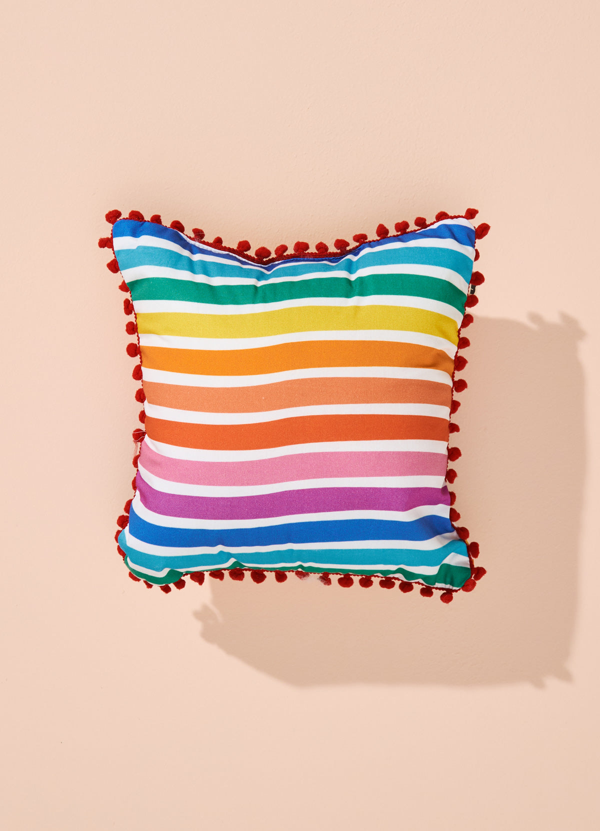 A Almofada Infanti Listrado Rainbow da MOOUI traz encanto e cor para o quarto de bebê ou criança através de estampas exclusivas. Seu tamanho versátil de 25x25cm adapta-se perfeitamente na decoração de berços, camas ou poltronas, adicionando um toque lúdico ao ambiente.