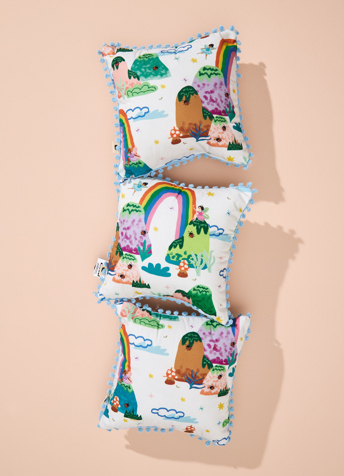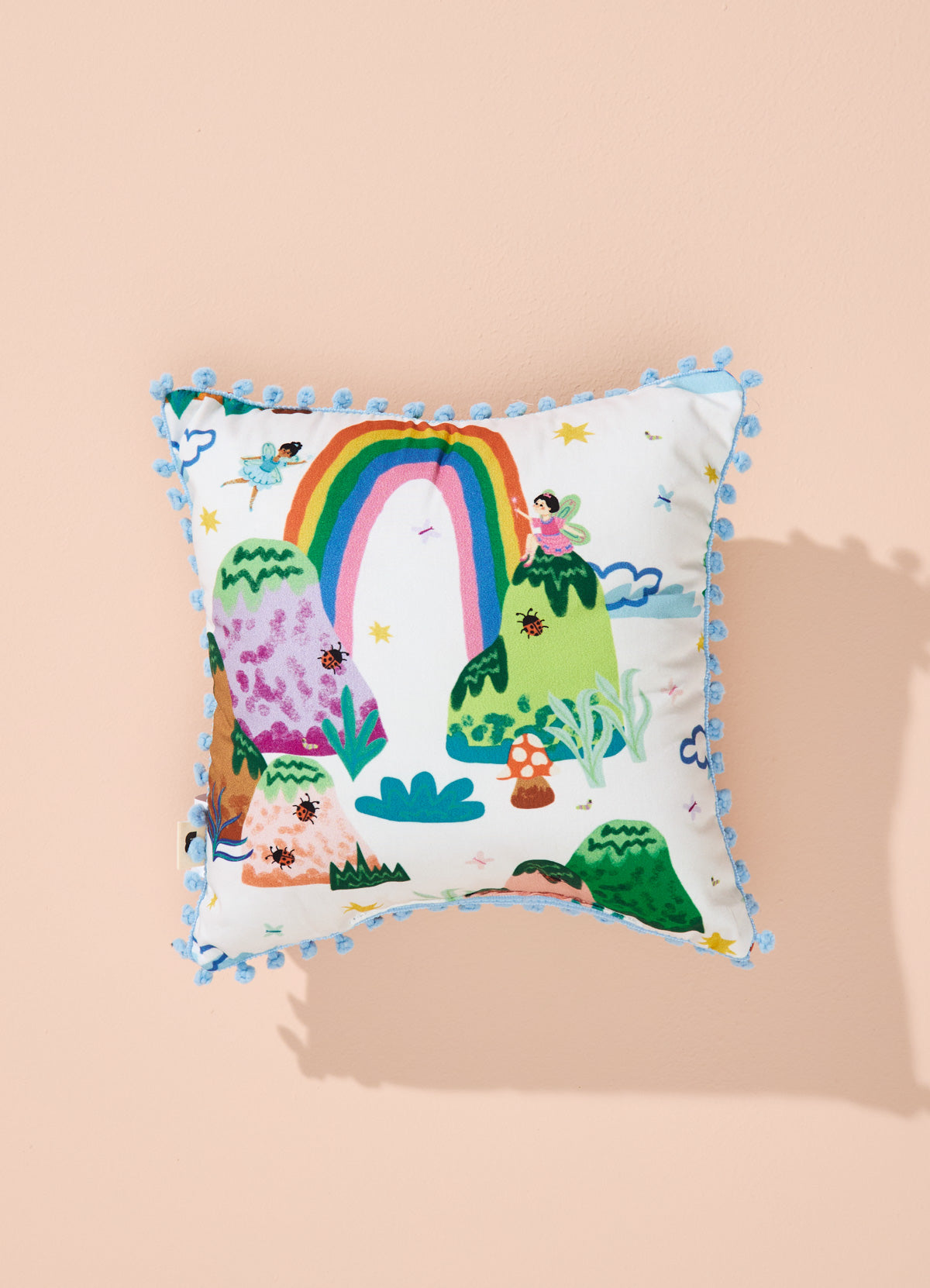 A Almofada Infanti Portal do Arco-íris da MOOUI traz encanto e cor para o quarto de bebê ou criança através de estampas exclusivas. Seu tamanho versátil de 25x25cm adapta-se perfeitamente na decoração de berços, camas ou poltronas, adicionando um toque lúdico ao ambiente.