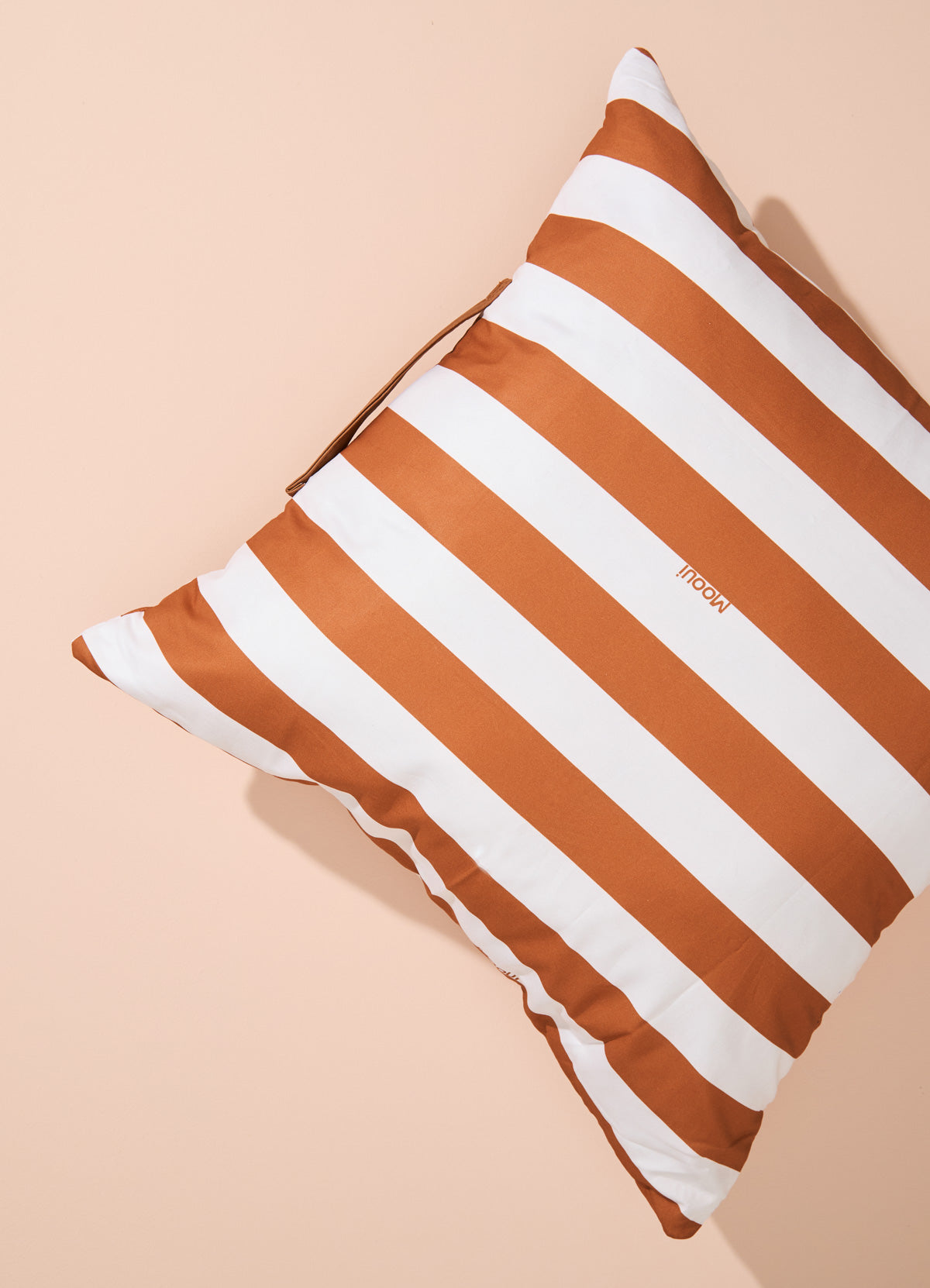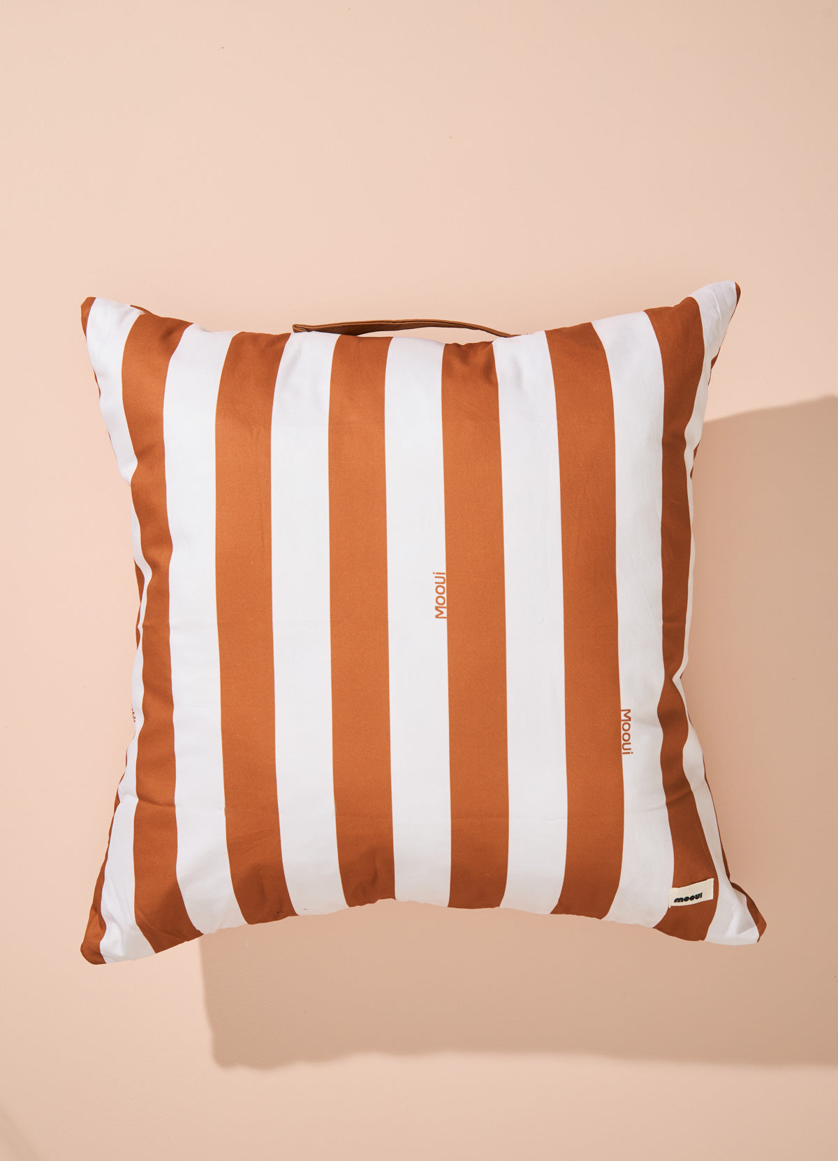 Um almofadão na estampa Listrado Caramelo que a MOOUI criou para ser colocado na hora de sentar no chão para brincar, assistir um filme ou apreciar um momento de leitura com conforto. O almofadão de chão é de sarja dos dois lados e contém zíper na lateral para retirada da capa para higienização. Para facilitar a locomoção para qualquer cômodo da casa, ele ainda possui alça em couro sintético.