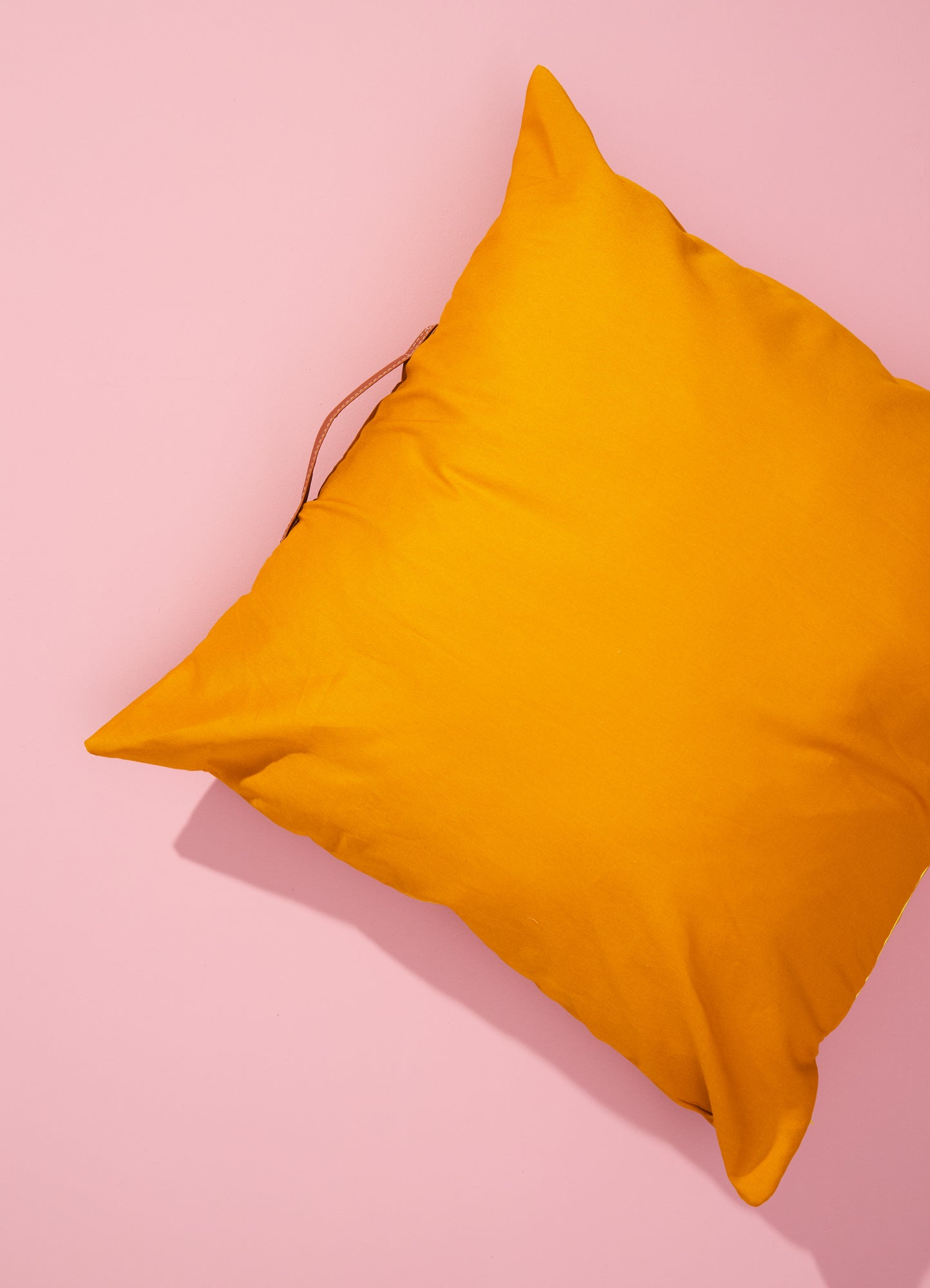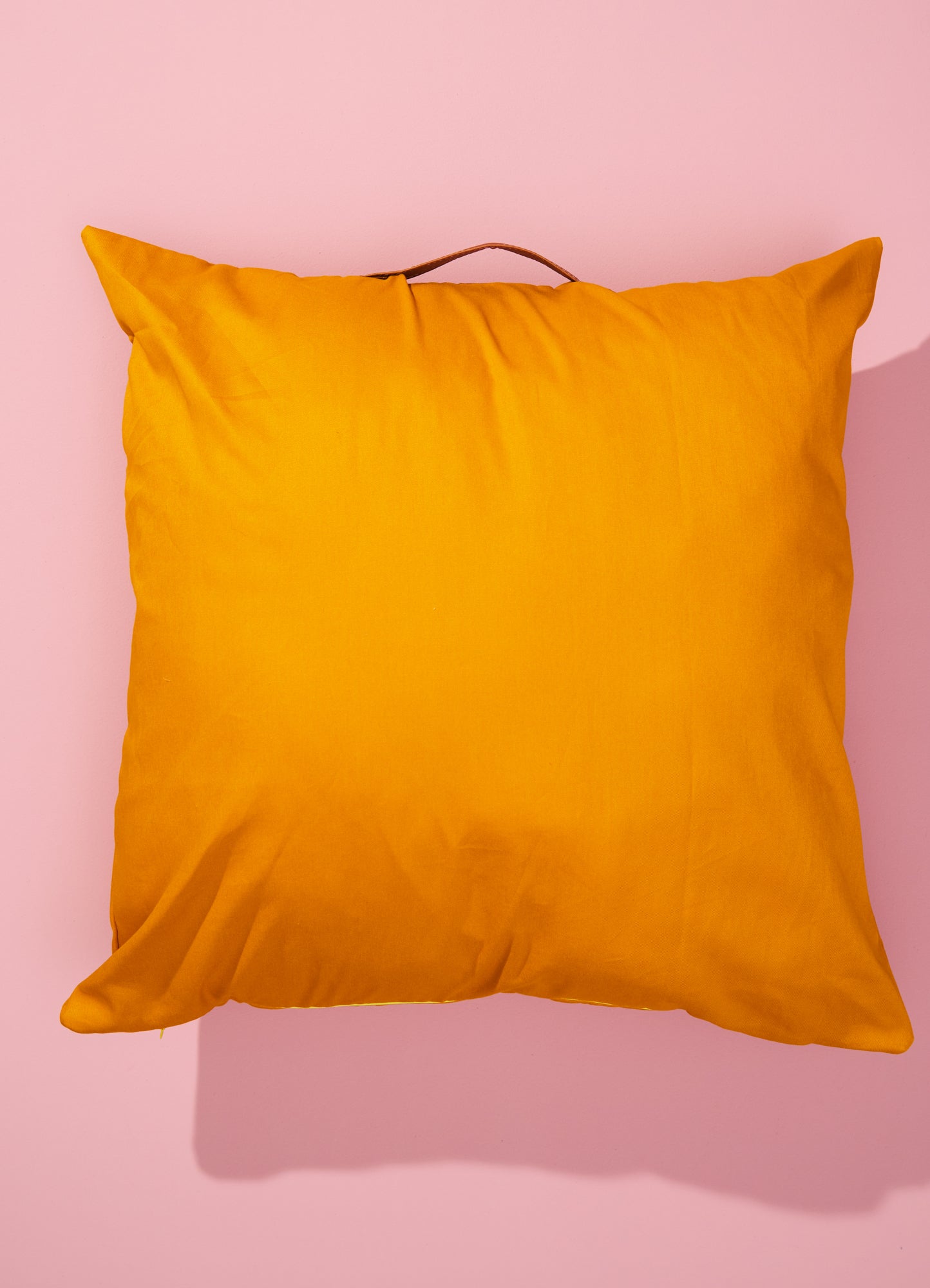Uma almofada gigante Mostarda que a MOOUI criou para ser colocado na hora de sentar no chão para brincar, assistir um filme ou apreciar um momento de leitura com conforto. O almofadão de chão é de sarja dos dois lados e contém zíper na lateral para retirada da capa para higienização. Para facilitar a locomoção para qualquer cômodo da casa, ele ainda possui alça em couro sintético.