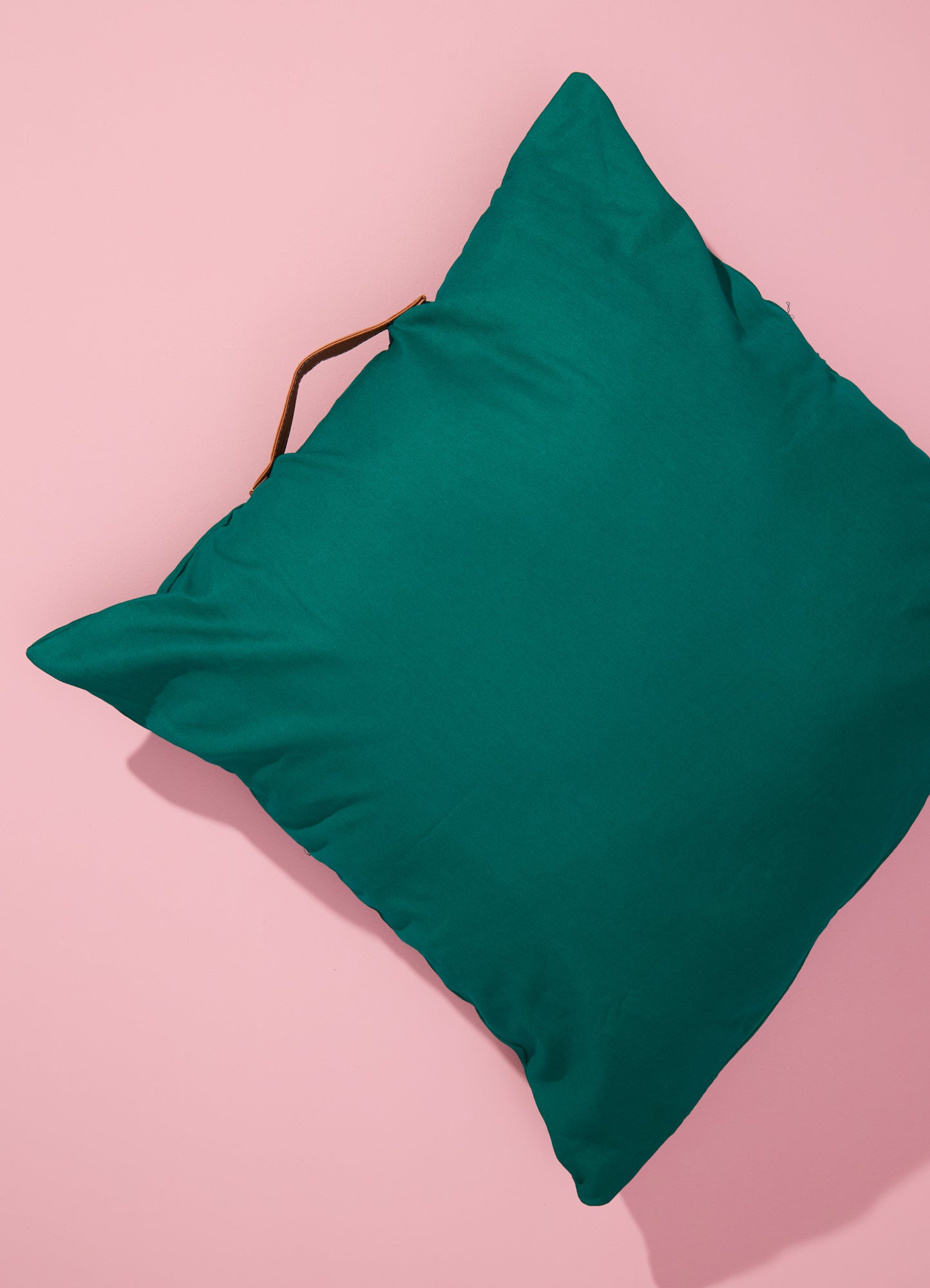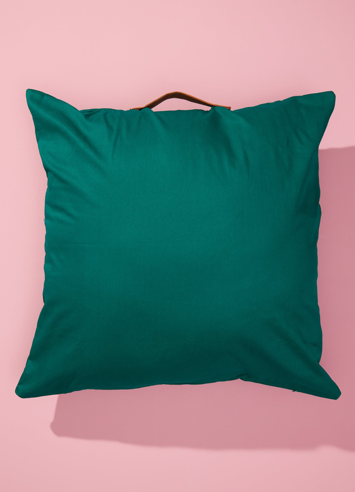 Uma almofada gigante Petróleo que a MOOUI criou para ser colocado na hora de sentar no chão para brincar, assistir um filme ou apreciar um momento de leitura com conforto. O almofadão de chão é de sarja dos dois lados e contém zíper na lateral para retirada da capa para higienização. Para facilitar a locomoção para qualquer cômodo da casa, ele ainda possui alça em couro sintético.
