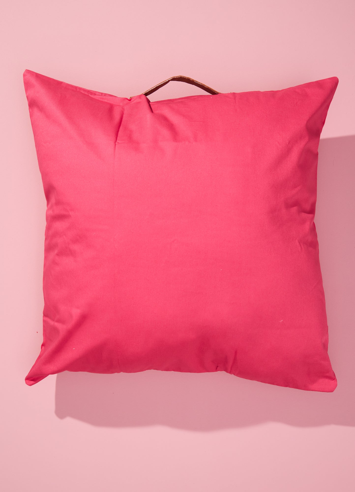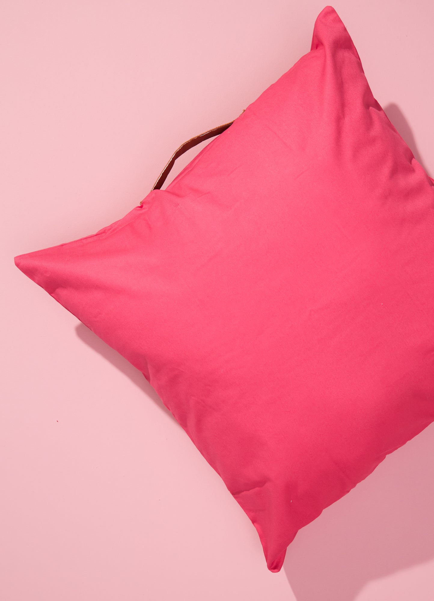 Uma almofada gigante Rosa intenso que a MOOUI criou para ser colocado na hora de sentar no chão para brincar, assistir um filme ou apreciar um momento de leitura com conforto. O almofadão de chão é de sarja dos dois lados e contém zíper na lateral para retirada da capa para higienização. Para facilitar a locomoção para qualquer cômodo da casa, ele ainda possui alça em couro sintético.