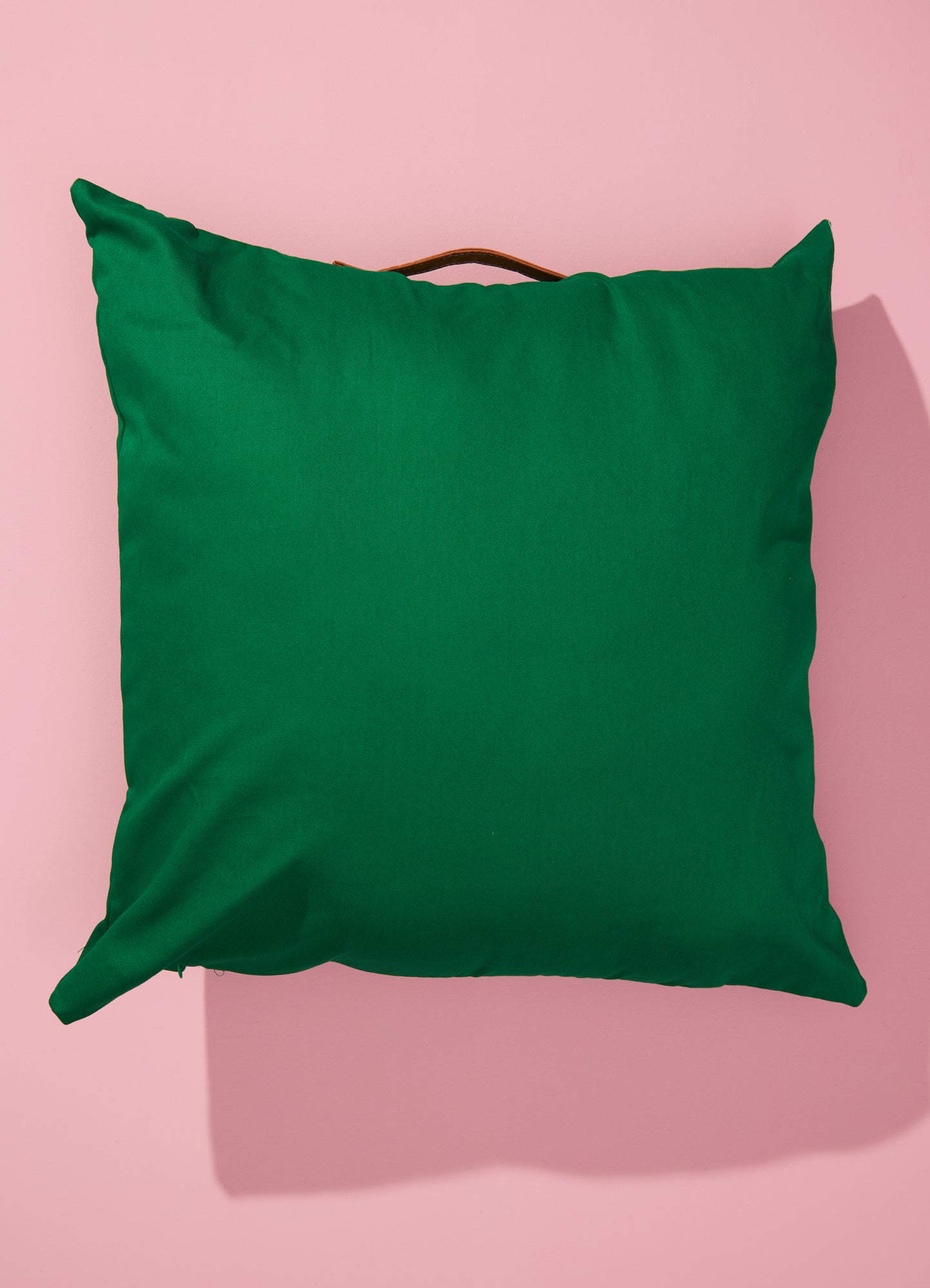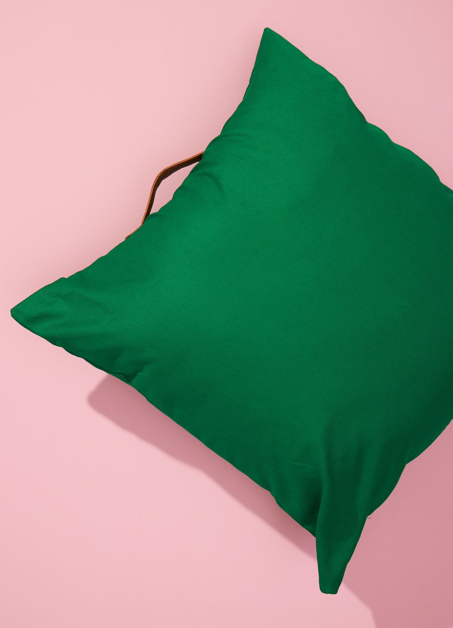 Uma almofada gigante Verde Folha que a MOOUI criou para ser colocado na hora de sentar no chão para brincar, assistir um filme ou apreciar um momento de leitura com conforto. O almofadão de chão é de sarja dos dois lados e contém zíper na lateral para retirada da capa para higienização. Para facilitar a locomoção para qualquer cômodo da casa, ele ainda possui alça em couro sintético.