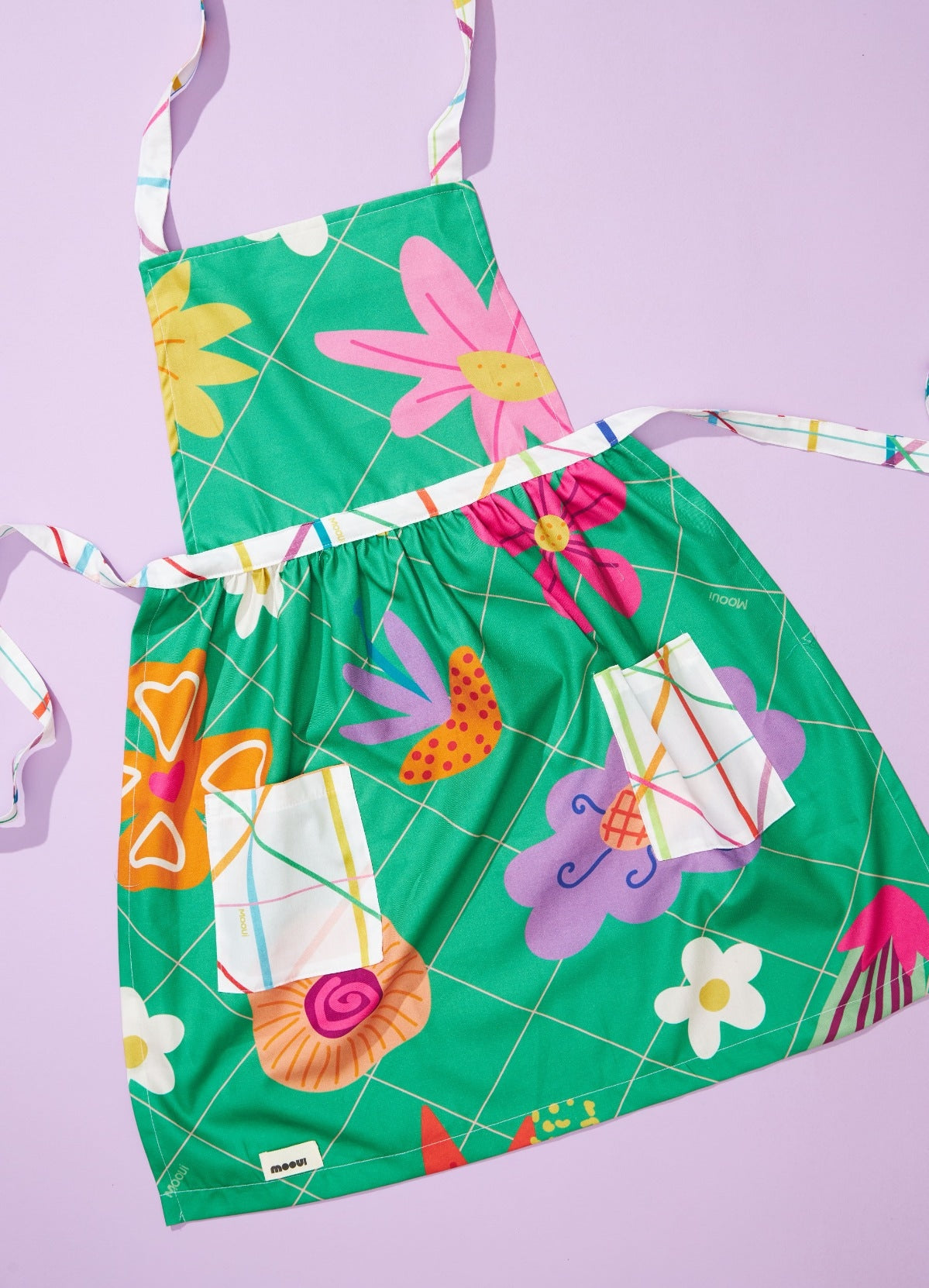 O Avental Franzido Jardim da Vovó Verde é uma peça indispensável para quem ama se aventurar na cozinha. Ele é perfeito para proteger a roupa de sujeira ou manchas e agrega muito estilo e diversão em seu uso. A estampa exclusiva da MOOUI deixa o avental de cozinha original e charmoso. Com a modelagem reta, ele é unissex é perfeito para qualquer pessoa e ainda possui alças para amarração atrás do pescoço e na cintura.