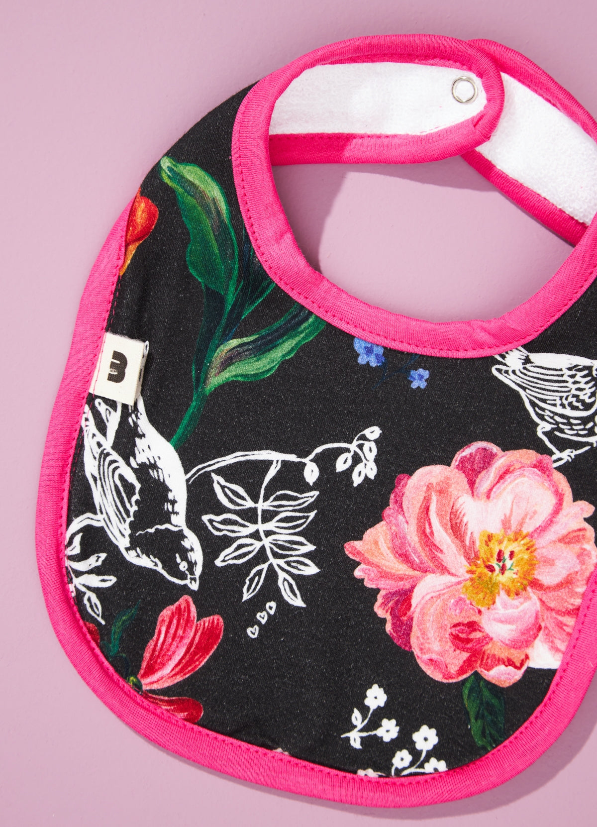 O Babador de Bebê Floral Noite Nathalie Lété é um acessório indispensável no enxoval de qualquer bebê. Prático e versátil, nosso babador infantil tem fechamento por um botão de pressão, pensado para facilitar o uso e evitar que o bebê remova-o sozinho. Ele ainda protege a roupa nos momentos de alimentação e também impede que a baba molhe a roupinha. O lado externo do babador é agraciado com a linda estampa exclusiva MOOUI e o outro lado é feito com um tecido atoalhado liso de algodão.