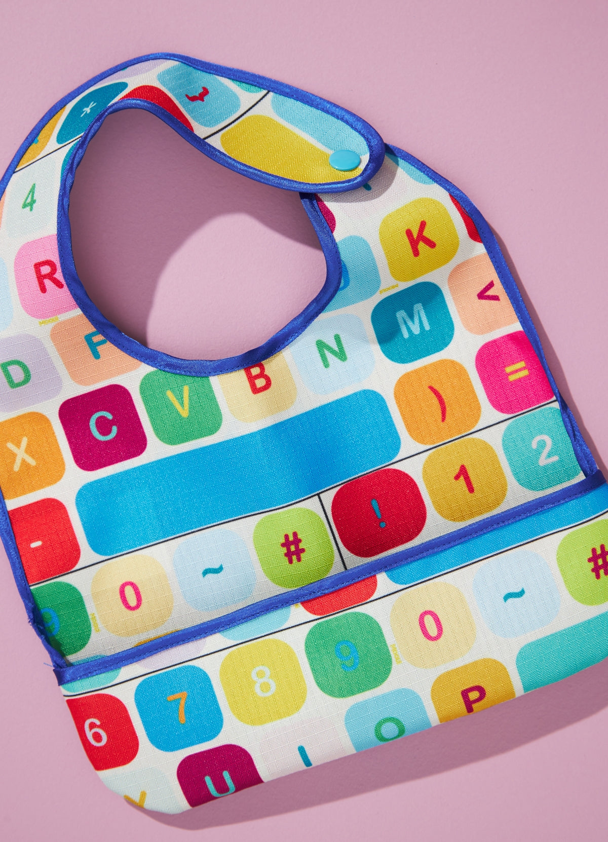 O Babador Impermeável Maquina de Escrever de bebê é indispensável para um enxoval de bebê prático, útil e charmoso. Perfeito para ser utilizado na hora das refeições, ele possui um pequeno bolso para conter as comidas que caem e por ser impermeável, impede que a roupa do bebê suje ou molhe. Além da proteção, a estampa exclusiva MOOUI ainda confere um charme todo especial à peça. O fechamento do babador é feito com um botão de pressão, pensado especialmente para facilitar seu uso, mas também para evitar que o bebê consiga removê-lo sozinho durante o uso.
