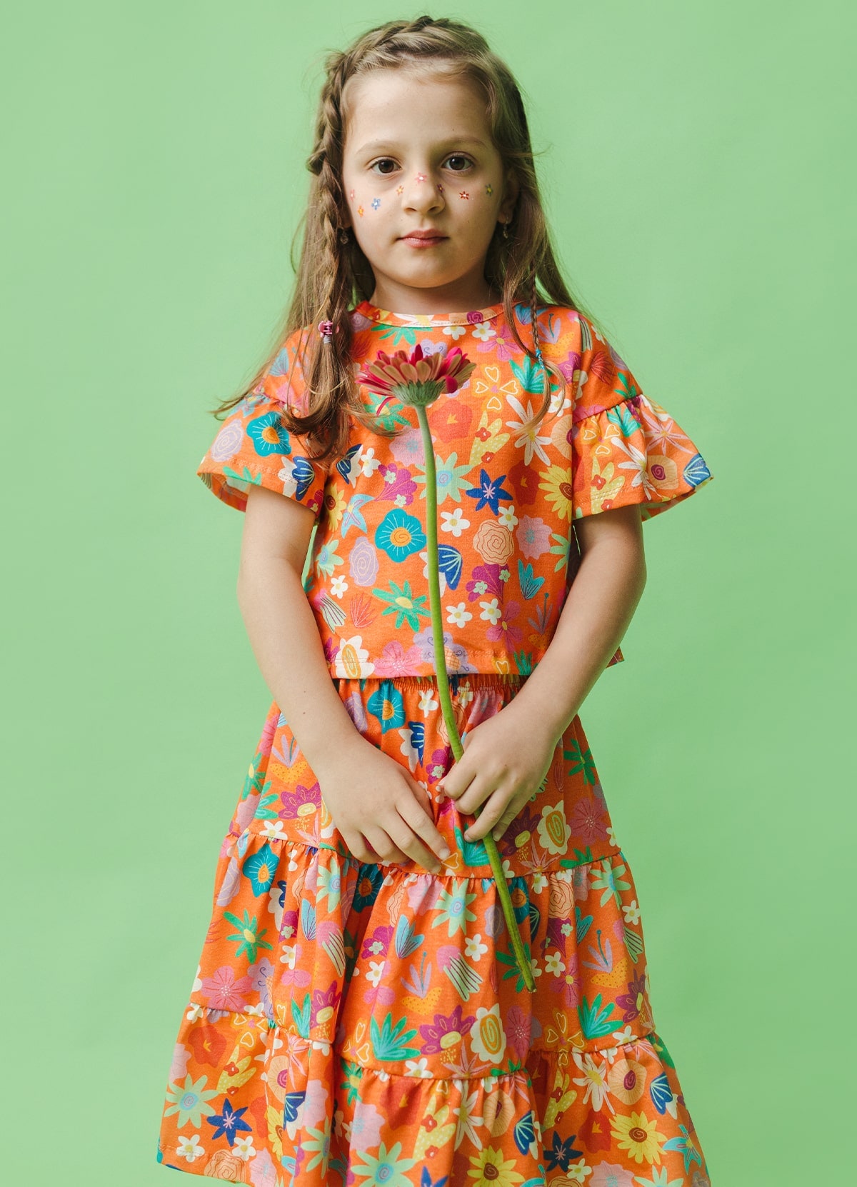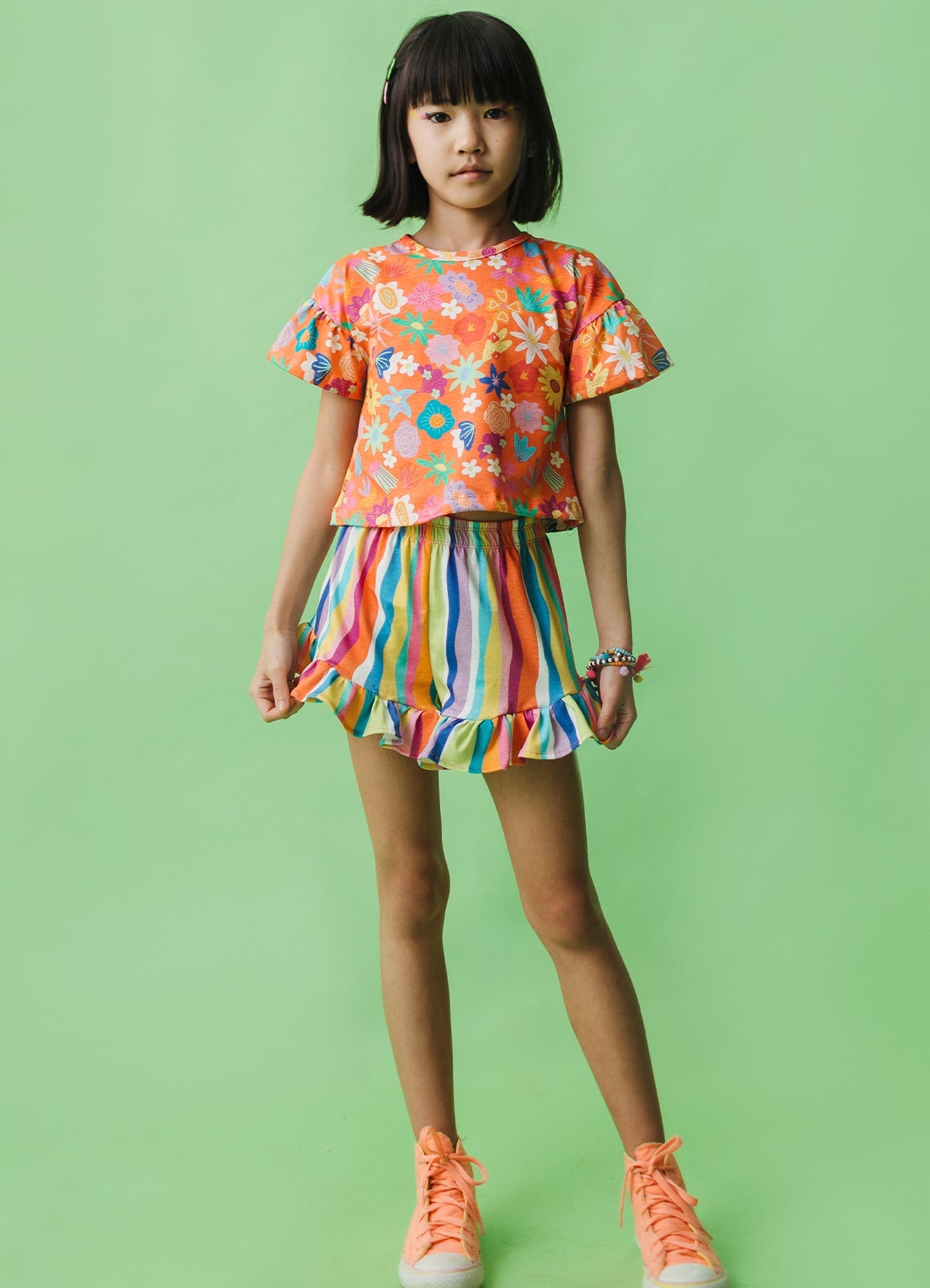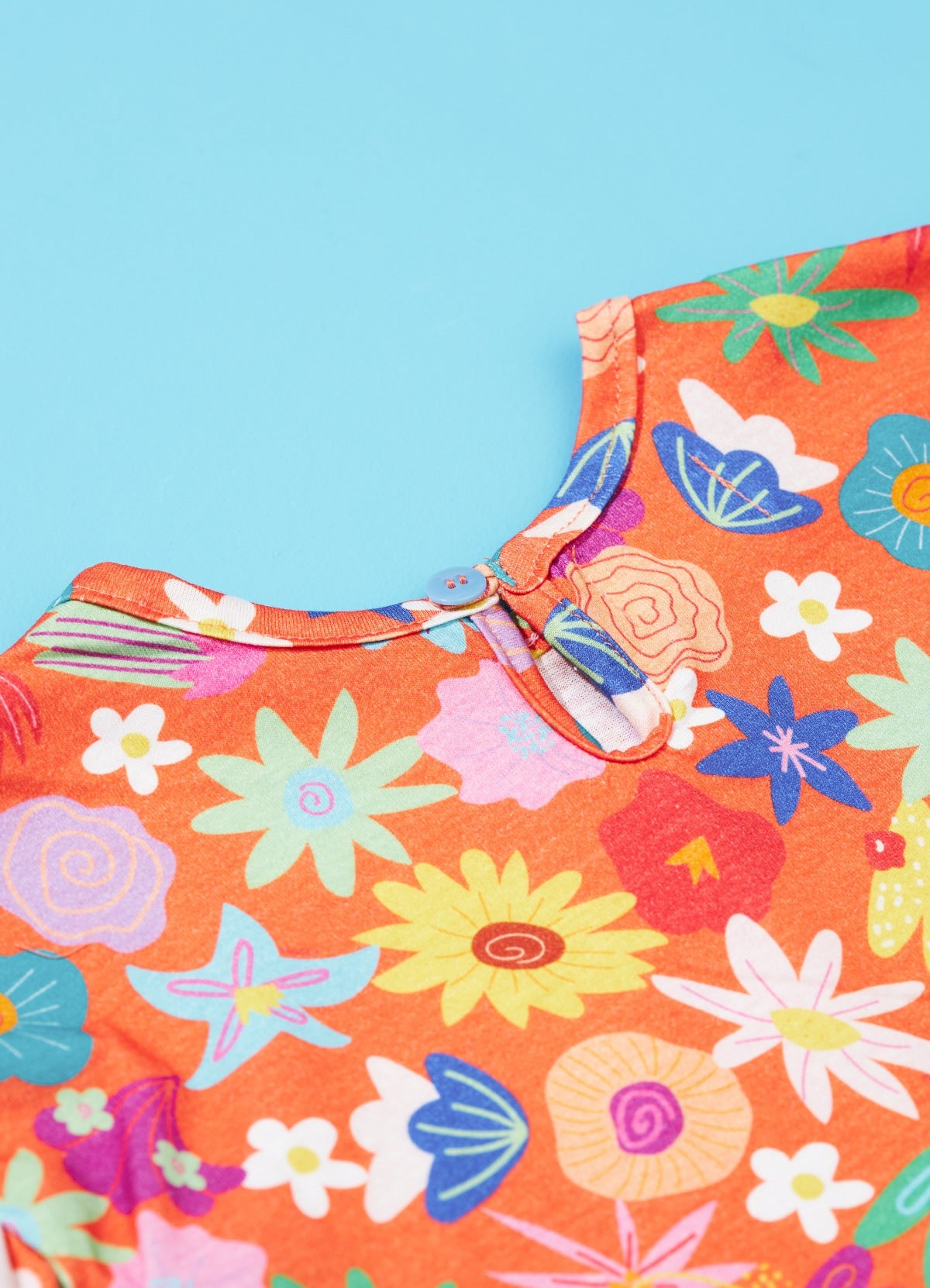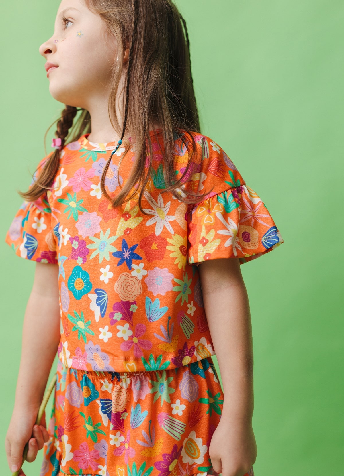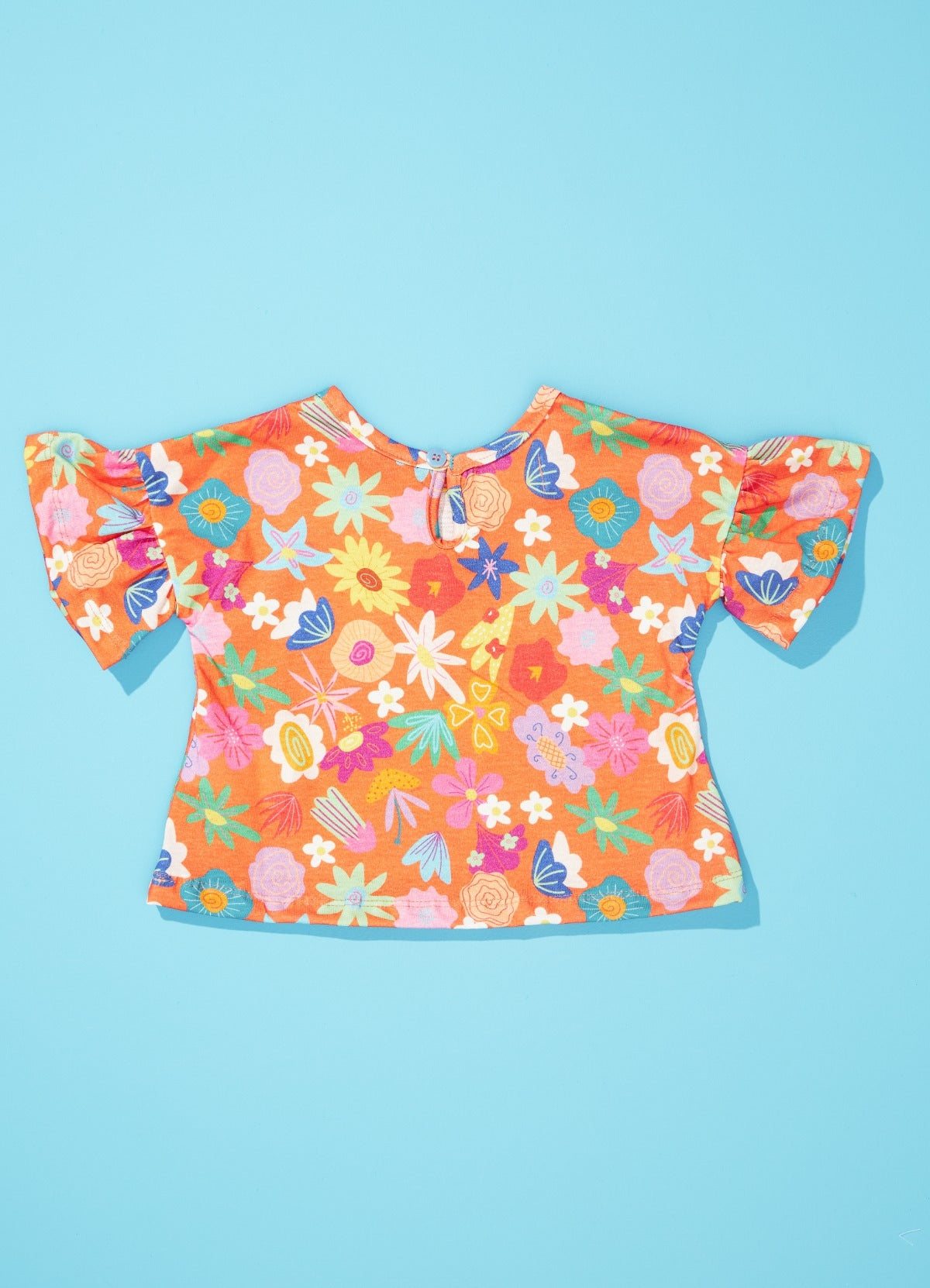 A Blusa Flores do Mar é uma peça leve e cheia de charme para o guarda-roupa infantil. Com comprimento curto e manga curta, ela traz um toque moderno e delicado. O detalhe de babado nas mangas adiciona movimento e elegância, tornando a peça ideal para looks casuais com um toque especial. A estampa floral vibrante complementa o design, trazendo cores e frescor. Feita em tecido macio e confortável, essa blusa é perfeita para dias ensolarados e ocasiões descontraídas.