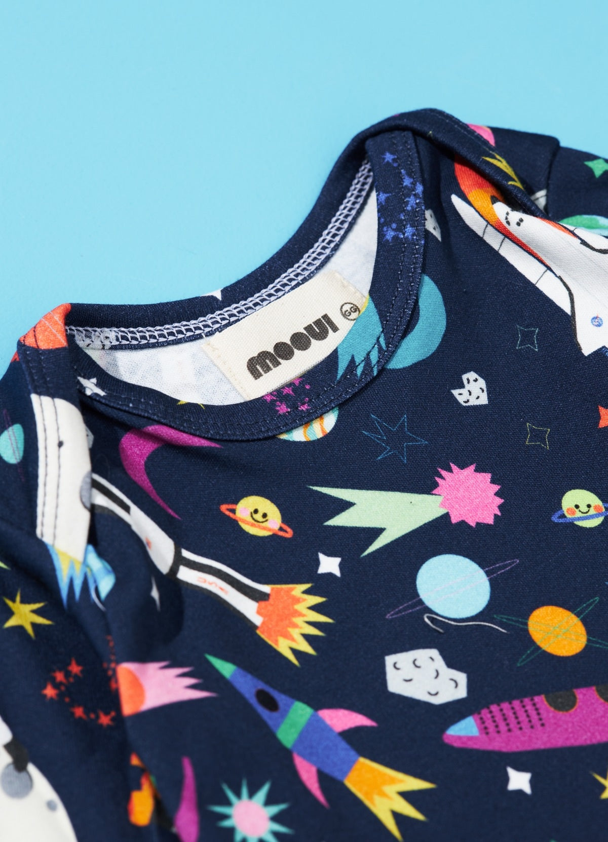 O Body Manga Longa Bebê Corrida Espacial é confeccionado em malha de algodão, é super macio e confortável como o body para bebê deve ser. Esse body permite que a criança tenha amplitude nos movimentos para explorar e fazer suas primeiras descobertas. Nosso Body Manga Longa tem o charme da estampa exclusiva MOOUI e permite que nossos designs tragam alegria também na hora de vestir, com peças feitas de carinho e conforto.