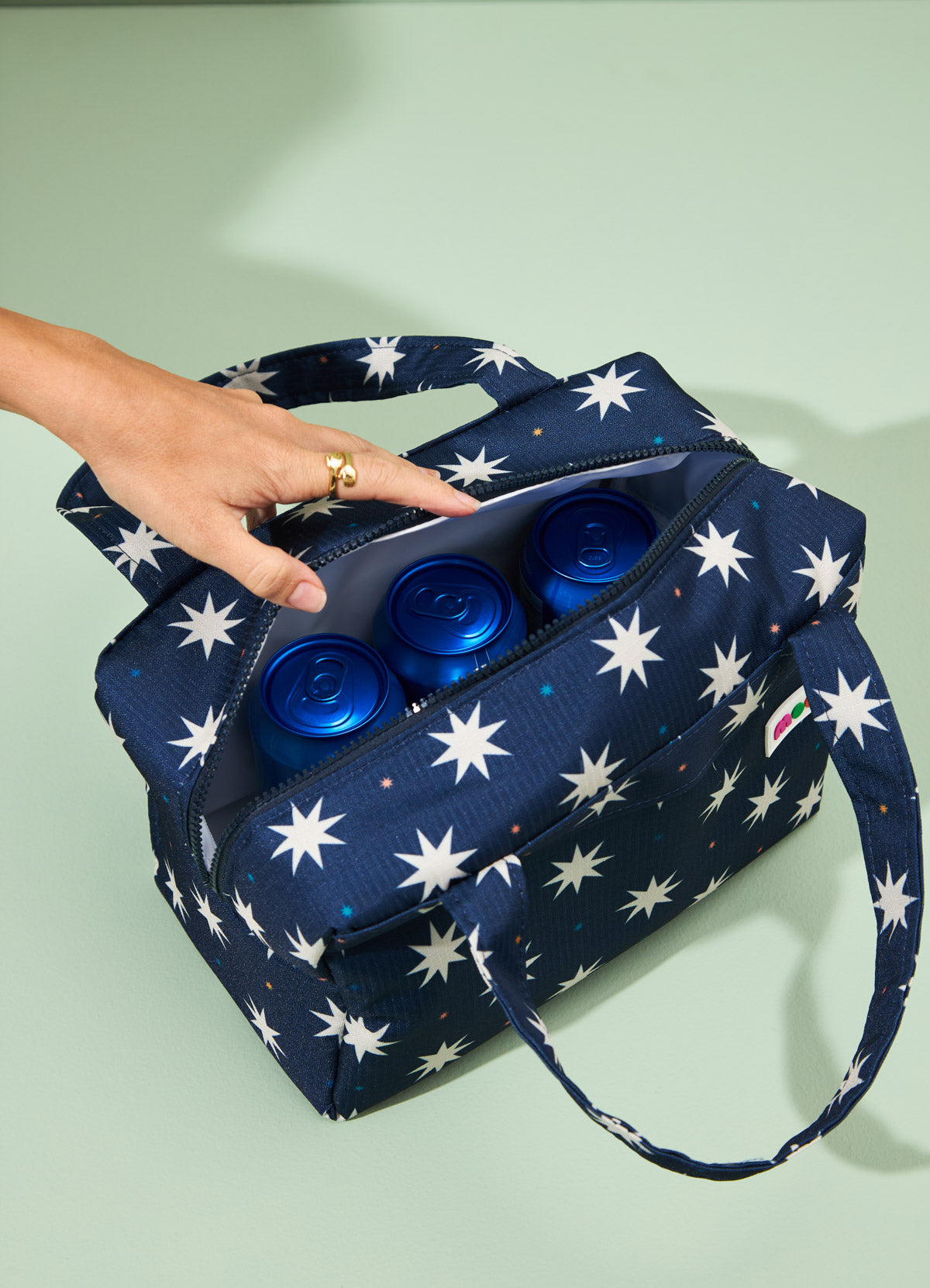 A Bolsa Térmica Noite de Luar combina praticidade e estilo. Confeccionada em material têxtil impermeável, é ideal para manter a temperatura dos alimentos e bebidas. Com tamanho médio e um compartimento interno espaçoso revestido com forro térmico, com uma exclusiva estampa Mooui, que traz um toque de delicadeza e encanto. Possui alça de mão na parte superior, base reta para estabilidade e fechamento superior por zíper, garantindo segurança no transporte.