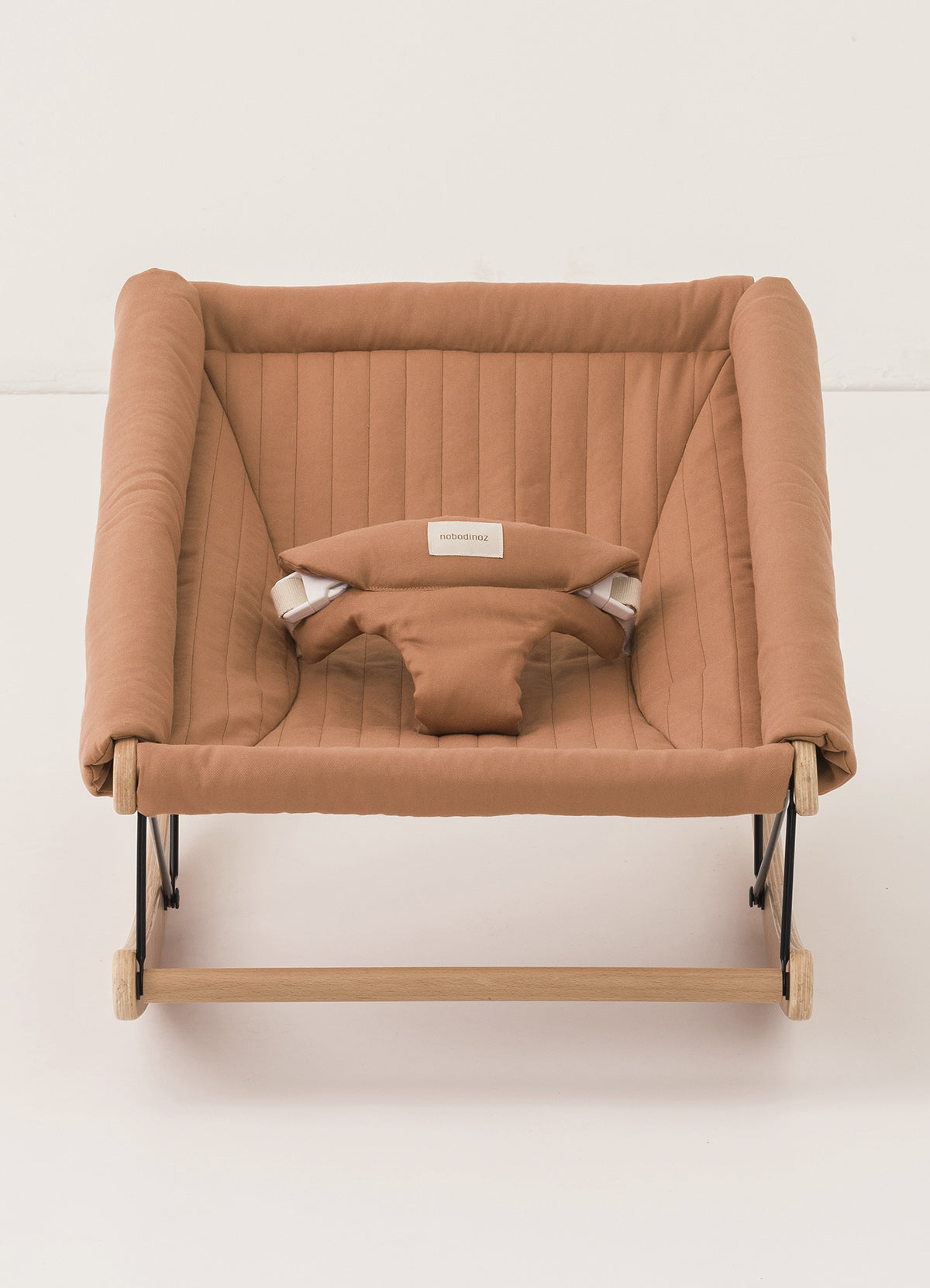 A Cadeira de Descanso Nobodinoz Sienna Brown oferece ao seu bebê um balanço suave e relaxante, perfeito para os primeiros meses de vida — ideal para acolher o bebê com conforto até 9kg. Seu design combina uma estrutura resistente em madeira de faia e aço inoxidável com um assento macio, ergonômico e acolchoado em sarja de algodão orgânico, criando um verdadeiro ninho de aconchego e segurança.