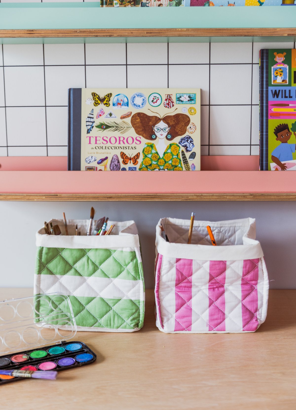 A Caixa Organizadora Média Listrado Azaleia da MOOUI é a solução perfeita para organizar com charme o quarto infantil. Com tamanho ideal para organizar pequenos itens, brinquedos ou acessórios, traz alegria e cor ao ambiente com suas estampas exclusivas.