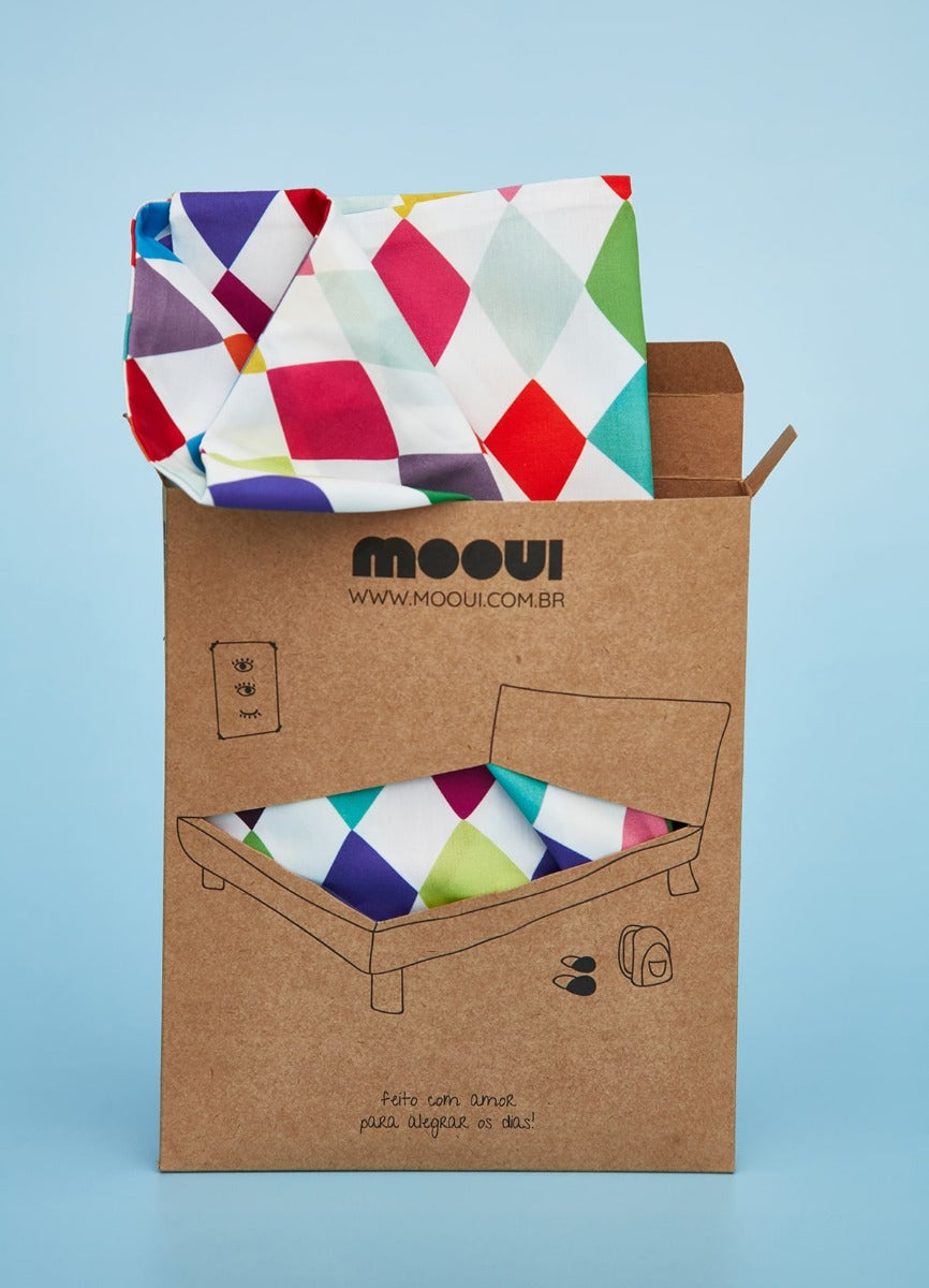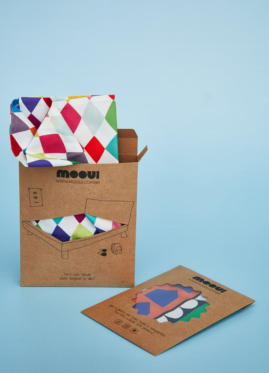 Embalagem em papel com pedaço em acetato que permite visualizar a estampa do produto que vai dentro. Ideal para presentear os itens descritos na indicação.