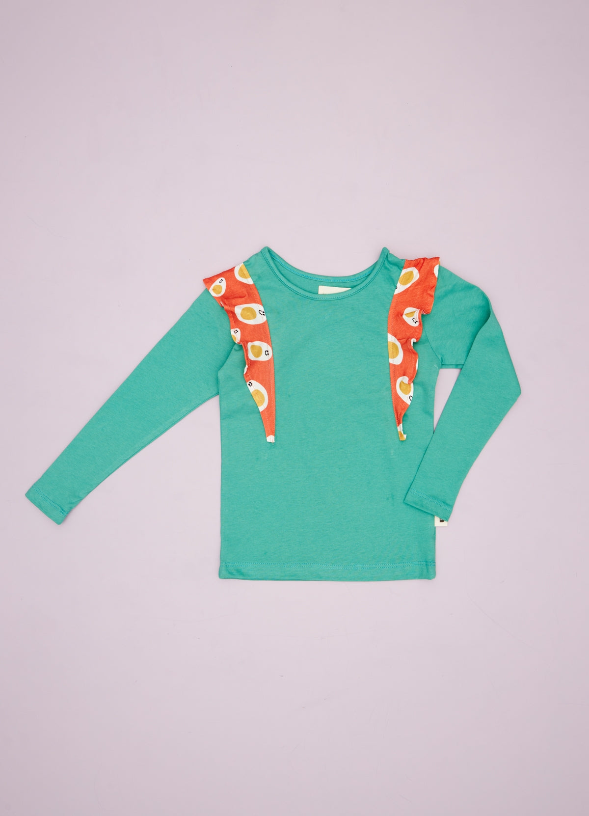 A Camiseta Infantil Manga Longa Babado Ovo Feliz tem o charme da estampa exclusiva MOOUI, aliado ao conforto do malha de algodão. Essa combinação certeira resultou em uma camiseta macia, confortável e estilosa, com modelagem adequada para ser usada nas brincadeiras, permitindo liberdade nos movimentos para que ele possa brincar, explorar e se divertir com proteção