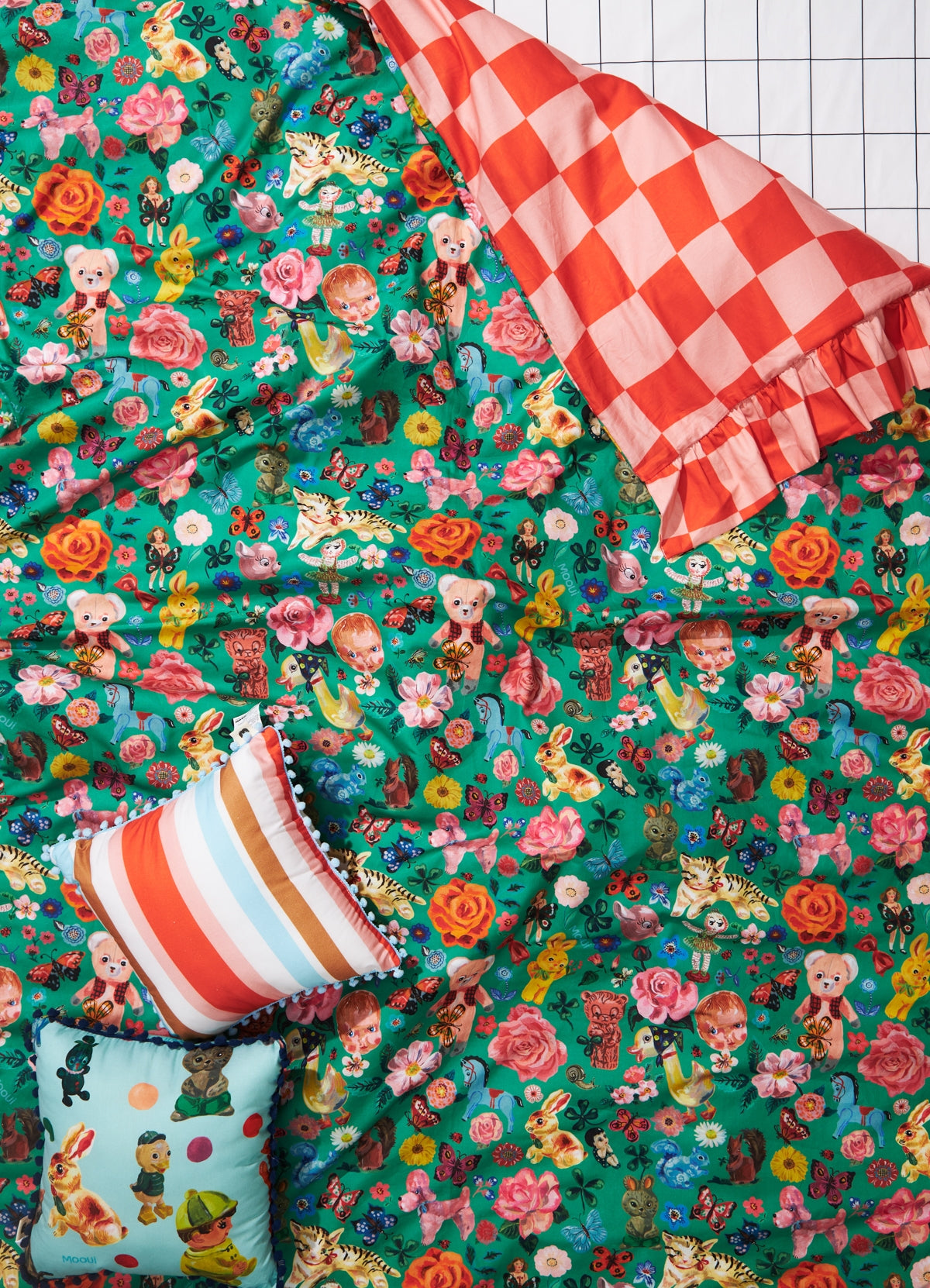 Essa estampa foi desenvolvida pela artista francesa Nathalie Lété. Renomada e irreverente, ela já ilustrou para marcas como Gucci, H&M e Anthropologie, e agora, chegou a vez de termos Nathalie no Brasil pela primeira vez!