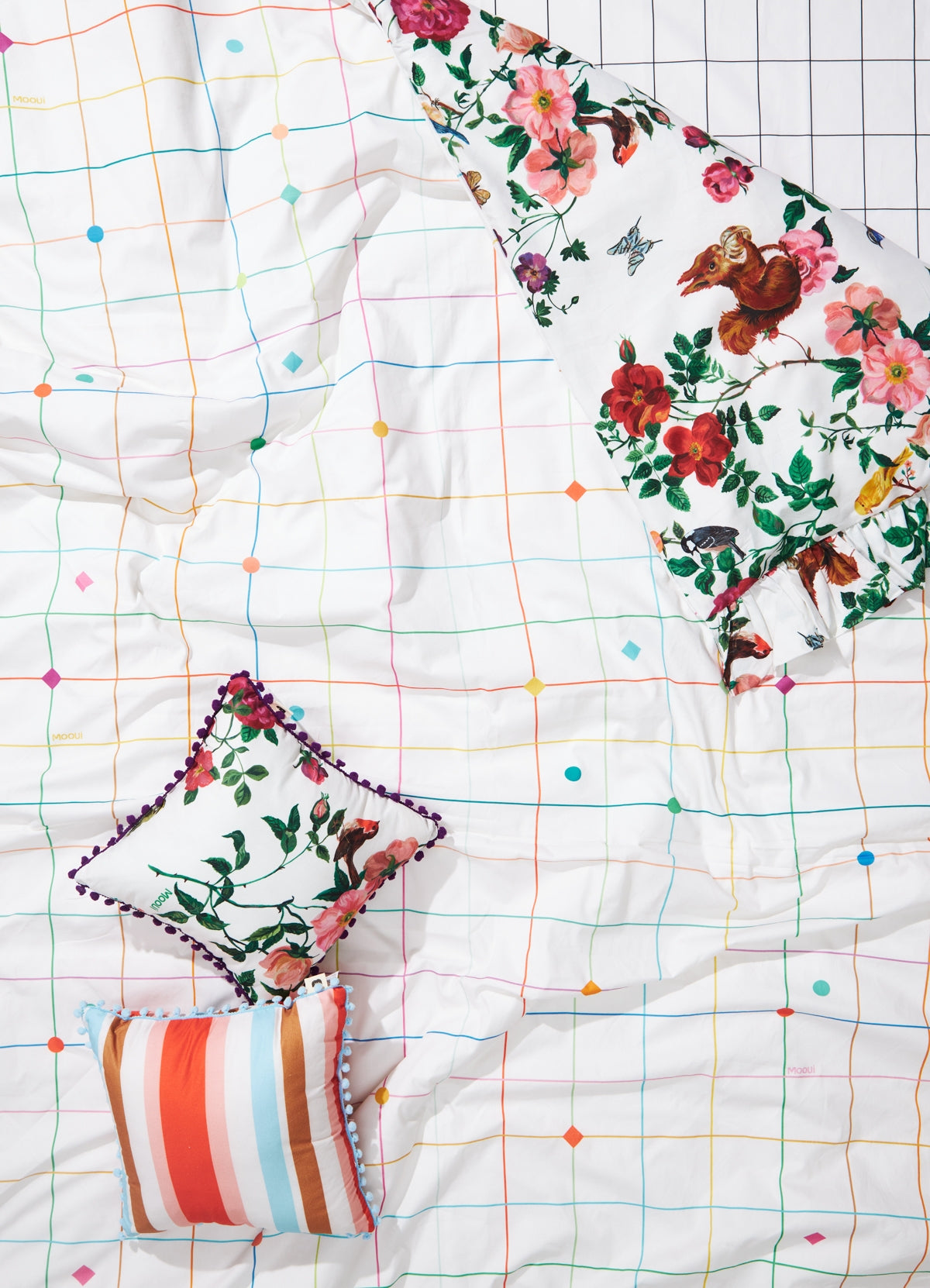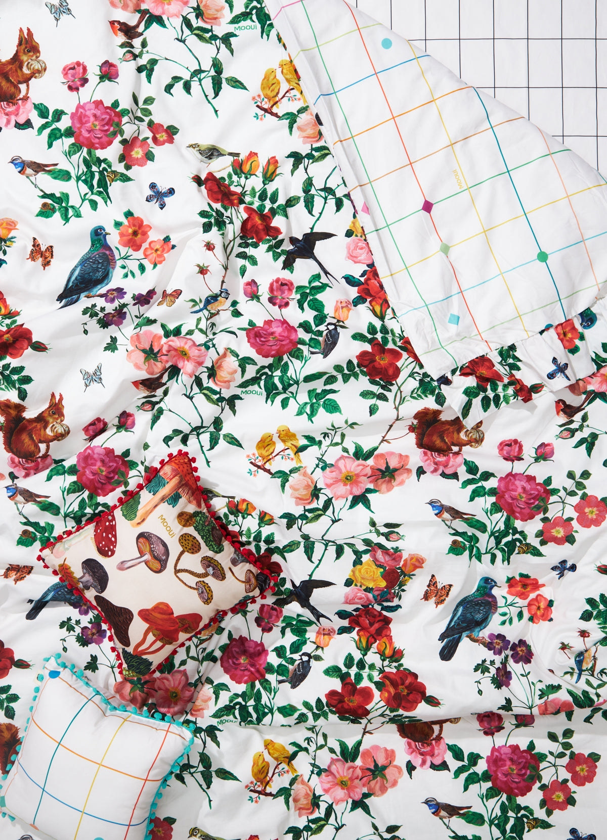 Essa estampa foi desenvolvida pela artista francesa Nathalie Lété. Renomada e irreverente, ela já ilustrou para marcas como Gucci, H&M e Anthropologie, e agora, chegou a vez de termos Nathalie no Brasil pela primeira vez!