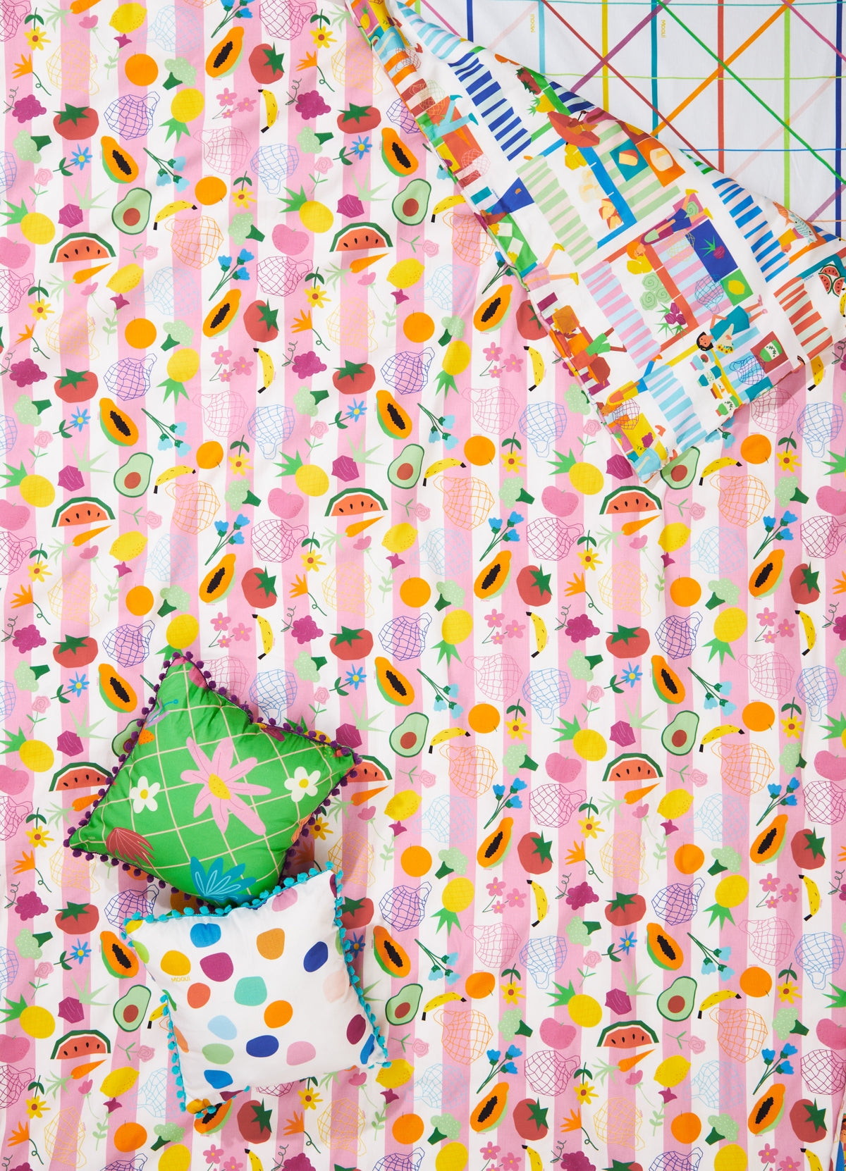 A Capa de Edredom Infantil Dia de Feira tem abertura na parte de baixo com fechamento em botões, permitindo facilmente retirada para lavagem. Por seu tamanho e peso serem menores do que o edredom completo, a capa pode ser lavada em máquinas de lavar convencionais na frequência que for necessária.