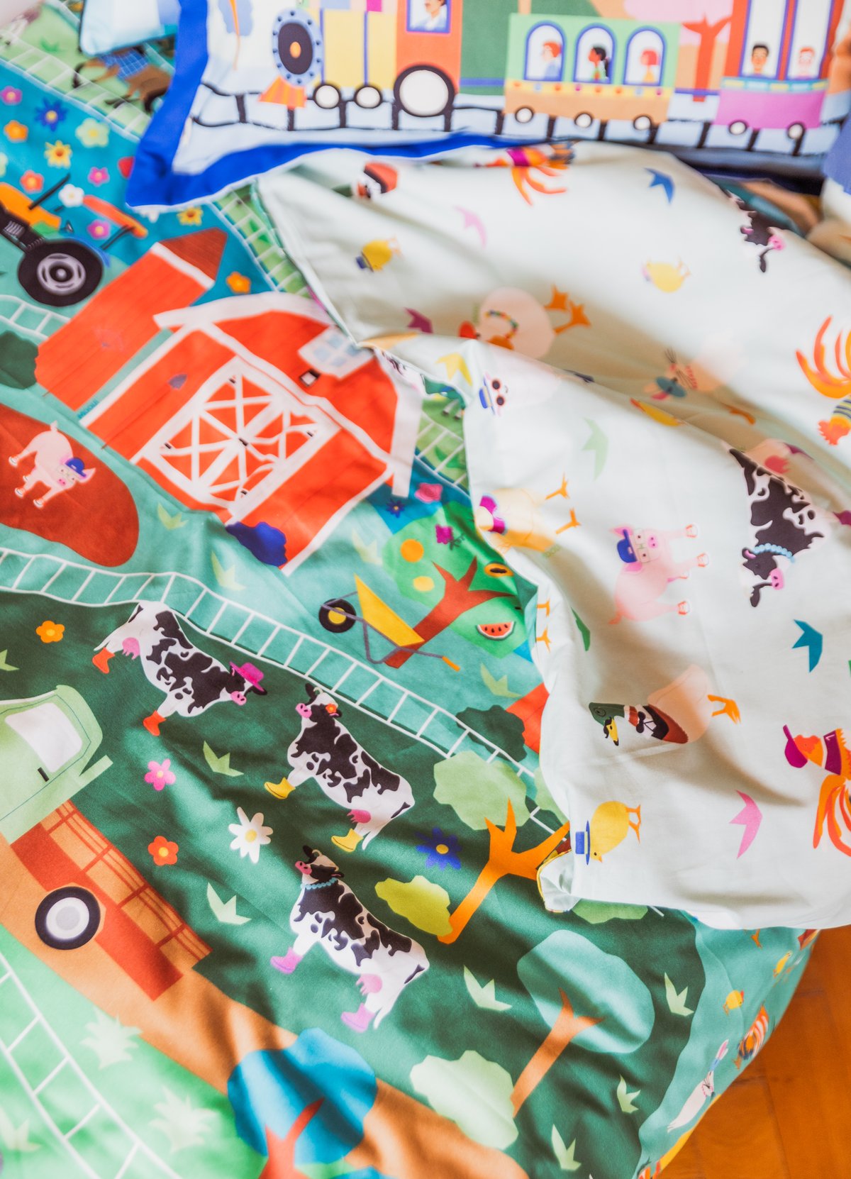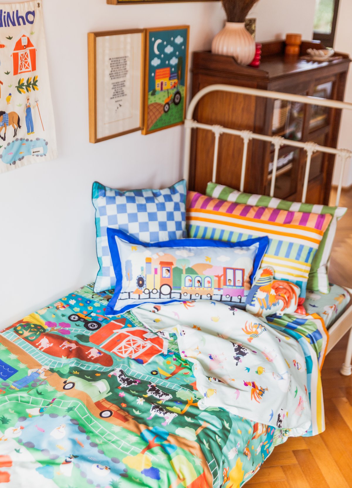 A Capa de Edredom Infantil Fazendinha da MOOUI traz praticidade e estilo para o quarto das crianças. Com abertura inferior e fechamento em botões, permite fácil colocação e remoção para lavagens regulares, sendo mais leve e prática de higienizar que o edredom completo.