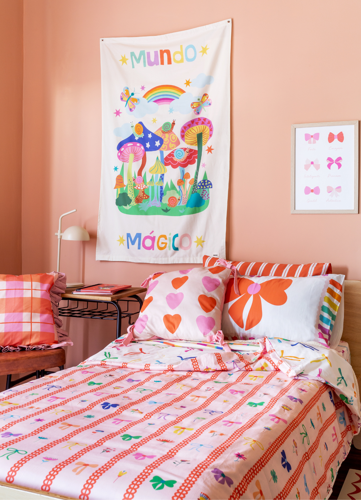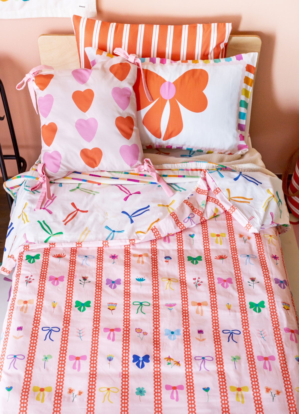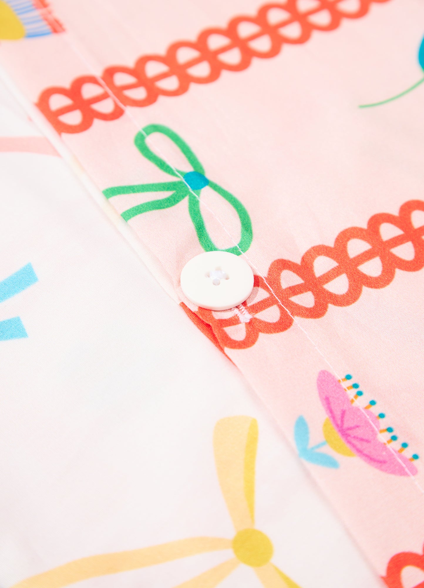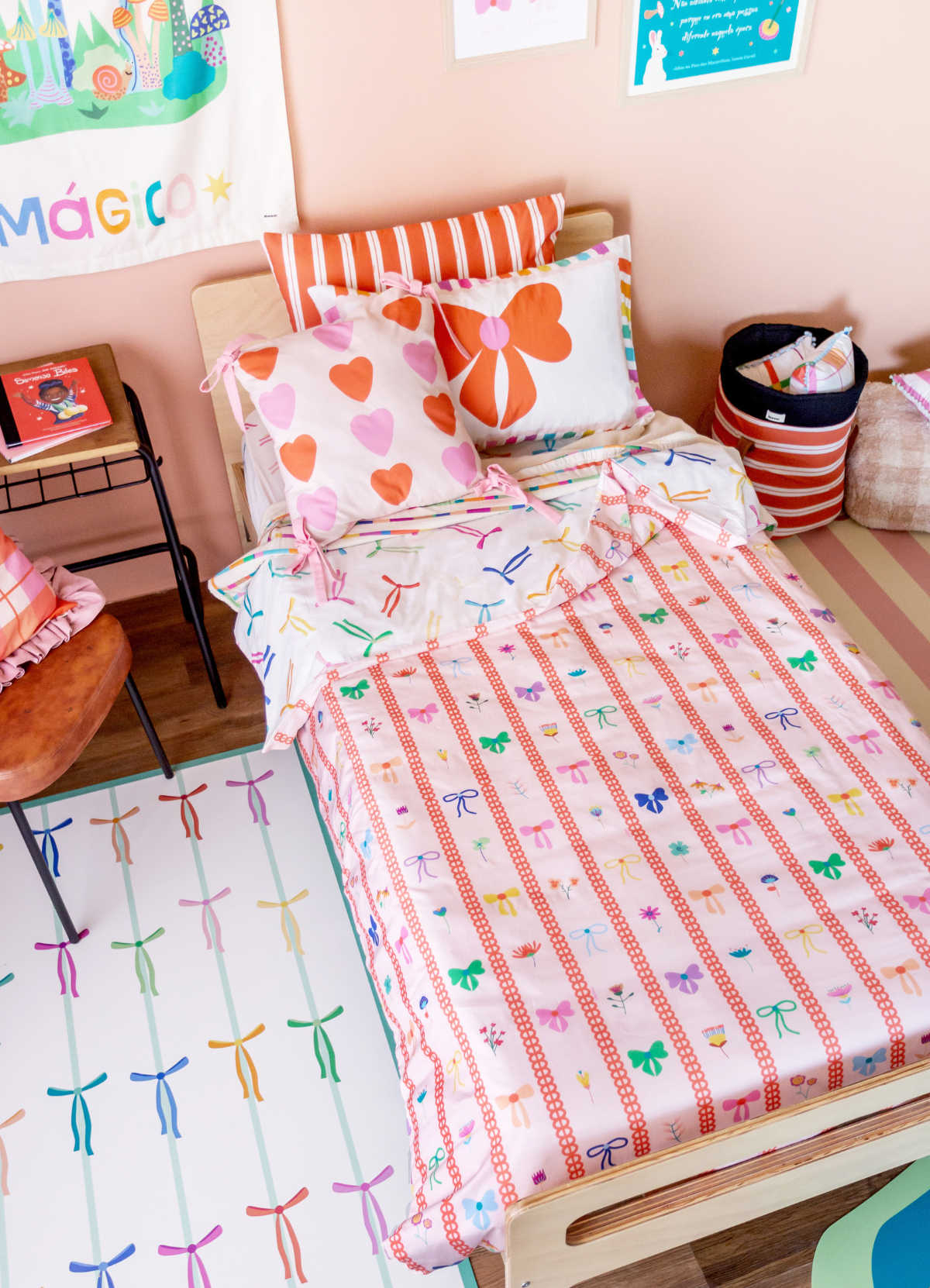 A Capa de Edredom Infantil Laços De Amizade da MOOUI traz praticidade e estilo para o quarto das crianças. Com abertura inferior e fechamento em botões, permite fácil colocação e remoção para lavagens regulares, sendo mais leve e prática de higienizar que o edredom completo.