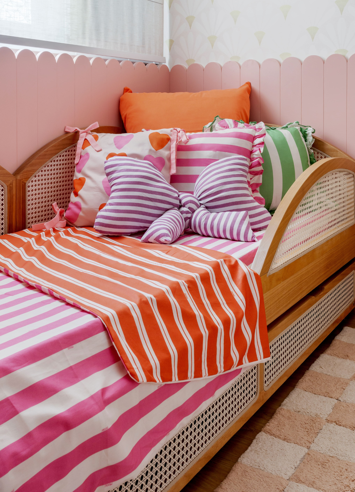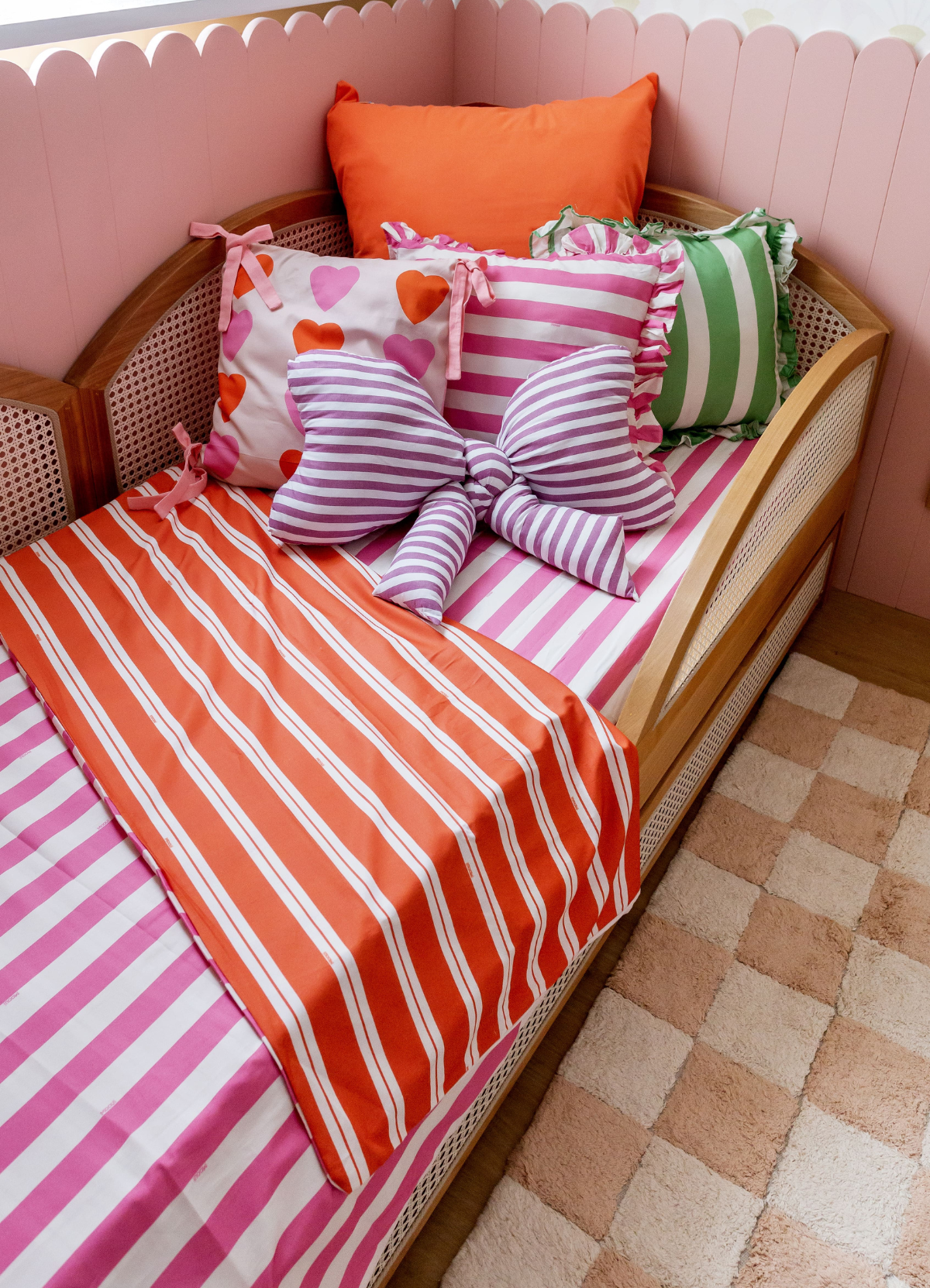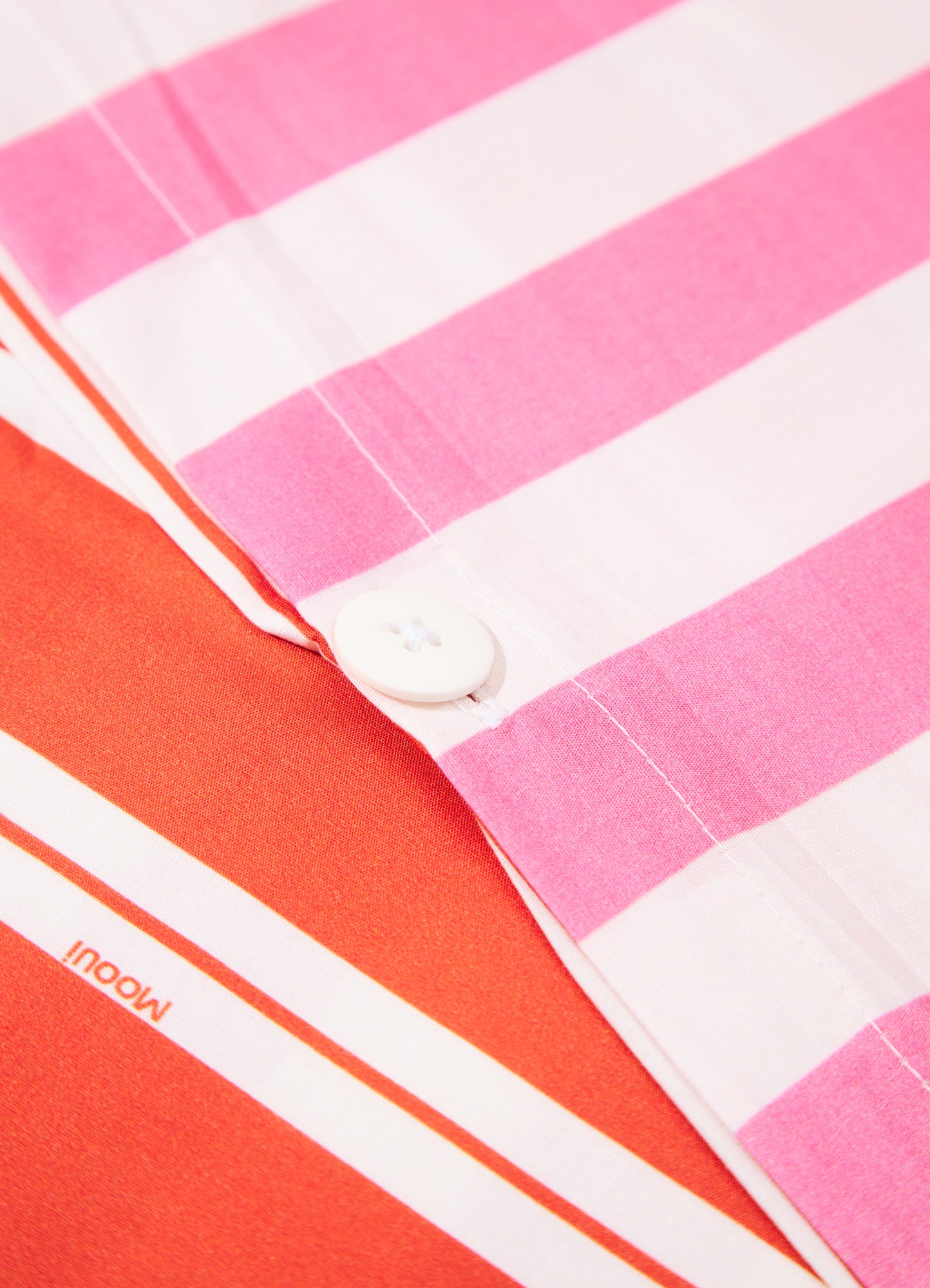 A Capa de Edredom Infantil Listrado Azaleia da MOOUI traz praticidade e estilo para o quarto das crianças. Com abertura inferior e fechamento em botões, permite fácil colocação e remoção para lavagens regulares, sendo mais leve e prática de higienizar que o edredom completo.