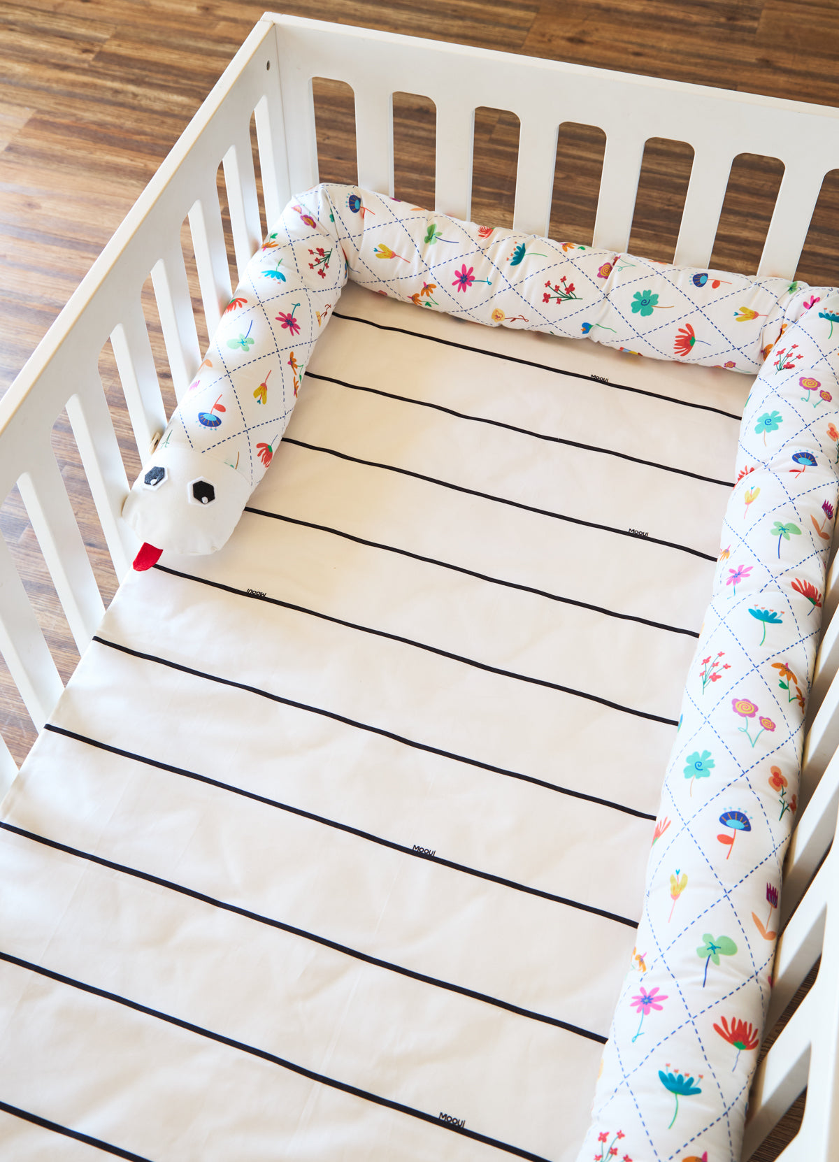A Capa para Protetor de Berço Minhocão Cheiro de Flor da MOOUI permite renovar o visual e garantir a higiene do protetor de berço. Confeccionada em 100% algodão acetinado 230 fios, possui zíper para fácil remoção e colocação.
