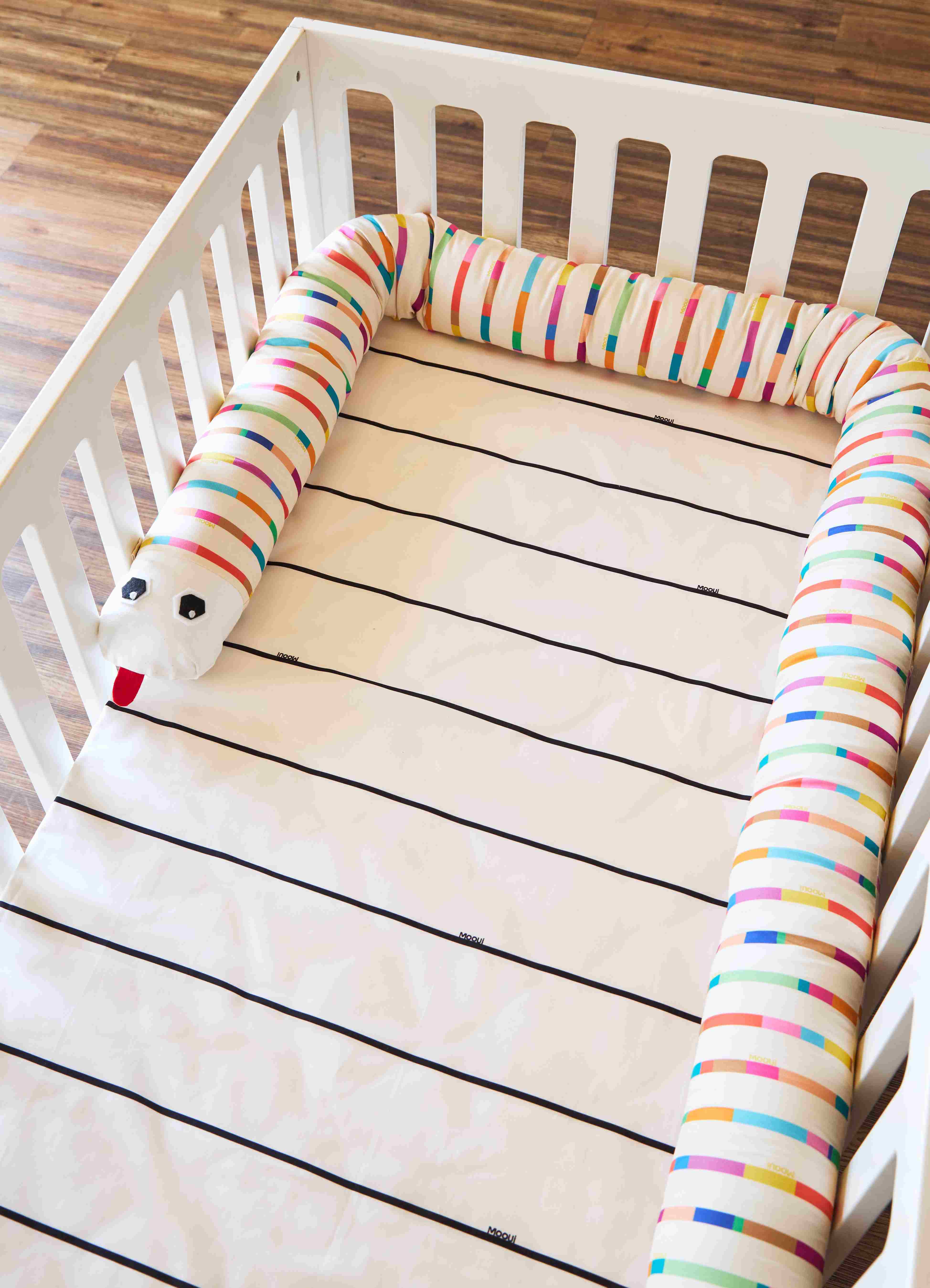 A Capa para Protetor de Berço Minhocão Lápis de Colorir da MOOUI permite renovar o visual e garantir a higiene do protetor de berço. Confeccionada em 100% algodão acetinado 230 fios, possui zíper para fácil remoção e colocação.