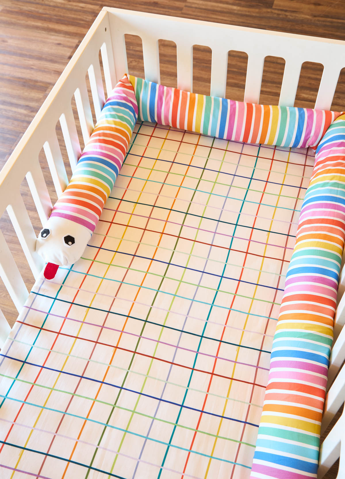A Capa para Protetor de Berço Minhocão Listrado Rainbow da MOOUI permite renovar o visual e garantir a higiene do protetor de berço. Confeccionada em 100% algodão acetinado 230 fios, possui zíper para fácil remoção e colocação.