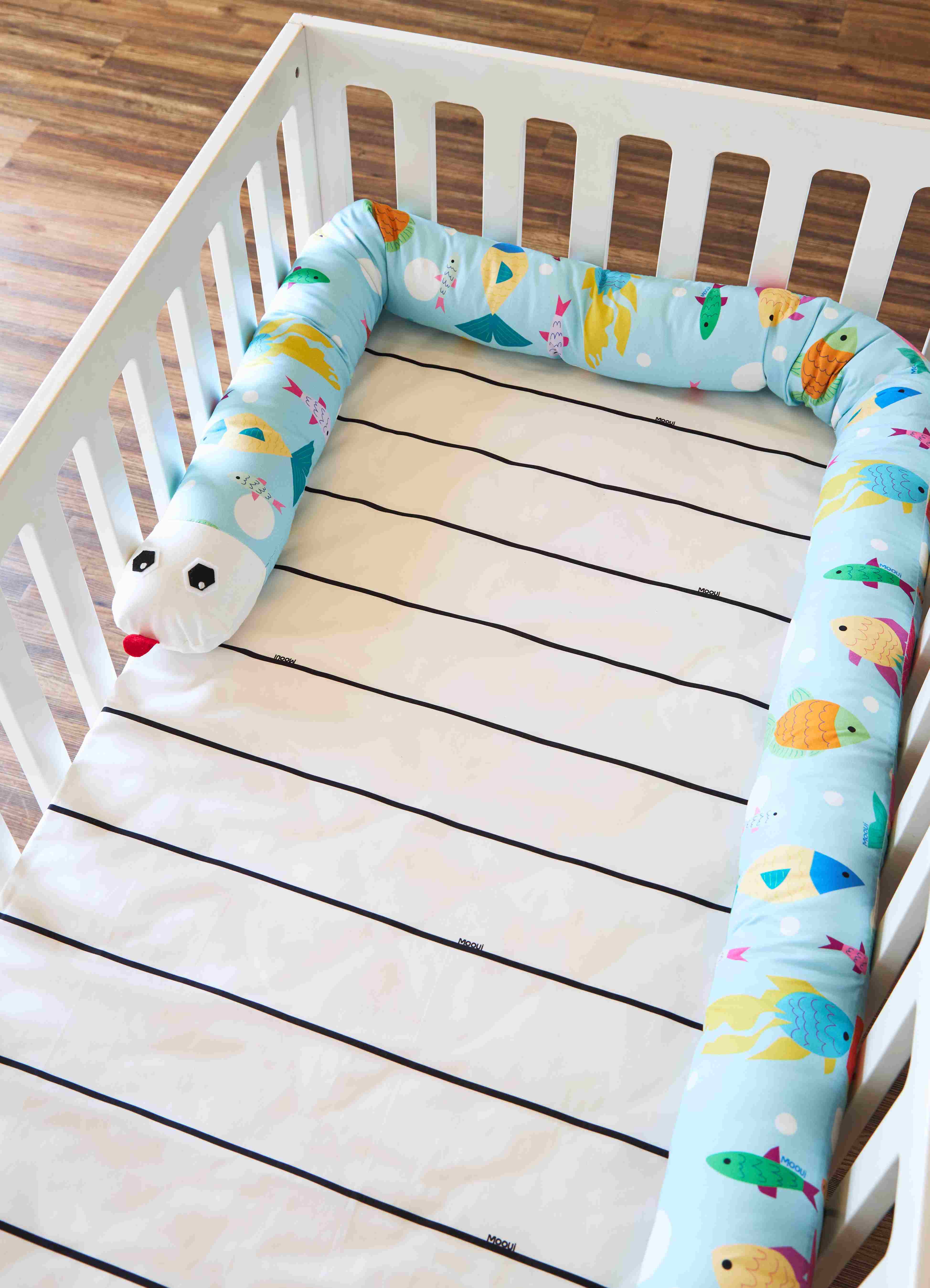 A Capa para Protetor de Berço Minhocão Peixinhos do Oceano da MOOUI permite renovar o visual e garantir a higiene do protetor de berço. Confeccionada em 100% algodão acetinado 230 fios, possui zíper para fácil remoção e colocação.