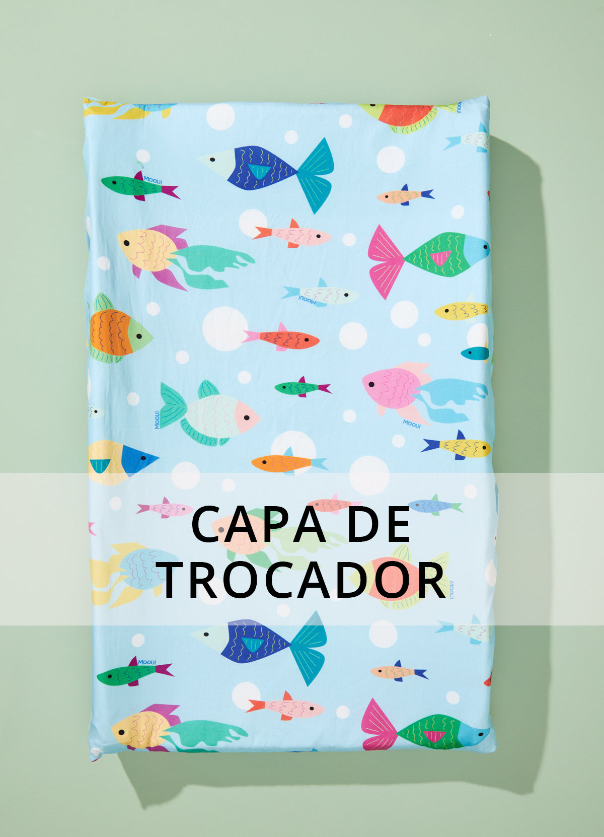 A Capa para Trocador Americano Peixinhos Do Oceano da MOOUI traz praticidade e renovação para o dia a dia da troca de fraldas. Confeccionada em 100% algodão acetinado 230 fios, é removível para fácil higienização.