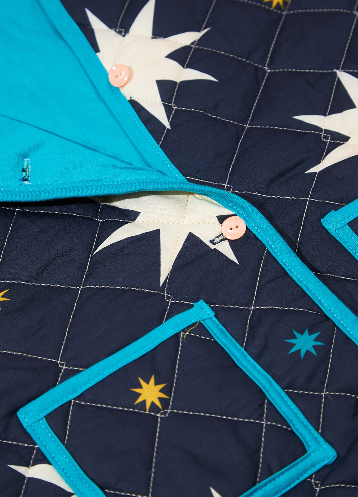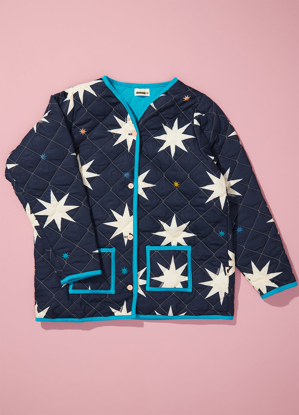 O Casaco Matelassado Adulto Noite de Luar tem o charme da estampa exclusiva MOOUI, aliado ao conforto e a possibilidade de deixar você quentinho. Essa combinação certeira resultou em um casaco confortável e estiloso, com modelagem adequada para o dia a dia, permitindo liberdade nos movimentos para que você possa trabalhar, passear e se divertir com proteção. Feito em 100% algodão com enchimento de poliéster, oferece o aquecimento ideal para os dias mais frescos, mantendo o estilo e a qualidade que você espera da MOOUI.