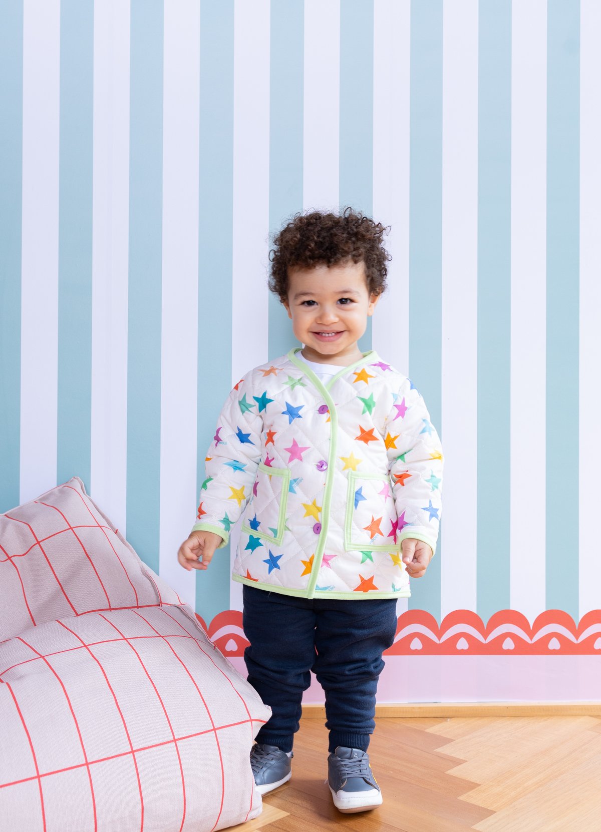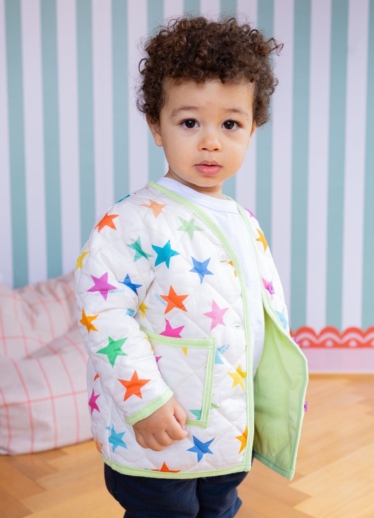 O Casaco Matelassado Infantil Estrelitas tem o charme da estampa exclusiva MOOUI, aliado ao conforto e a possibilidade de deixar seu filho quentinho. Essa combinação certeira resultou em um casaco confortável e estiloso, com modelagem adequada para ser usada nas brincadeiras, permitindo liberdade nos movimentos para que ele possa brincar, explorar e se divertir com proteção. Feito em 100% algodão com enchimento de poliéster, oferece o aquecimento ideal para os pequenos nos dias mais frescos.