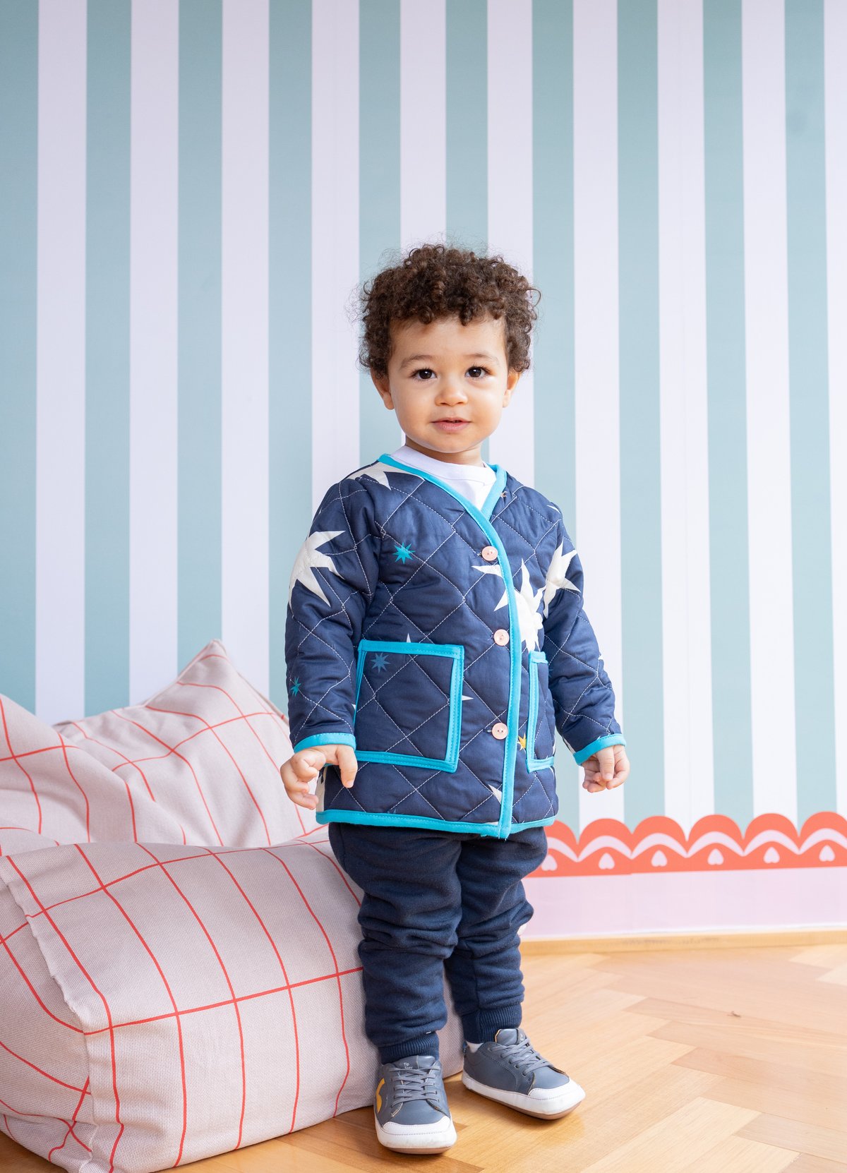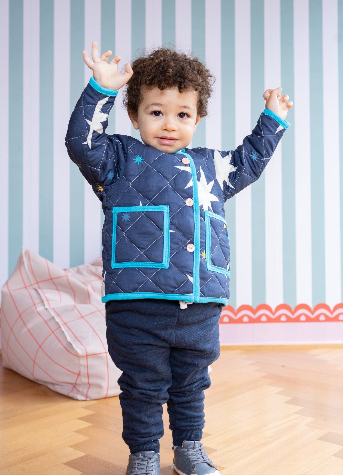 O Casaco Matelassado Infantil Noite de Luar tem o charme da estampa exclusiva MOOUI, aliado ao conforto e a possibilidade de deixar seu filho quentinho. Essa combinação certeira resultou em um casaco confortável e estiloso, com modelagem adequada para ser usada nas brincadeiras, permitindo liberdade nos movimentos para que ele possa brincar, explorar e se divertir com proteção. Feito em 100% algodão com enchimento de poliéster, oferece o aquecimento ideal para os pequenos nos dias mais frescos.